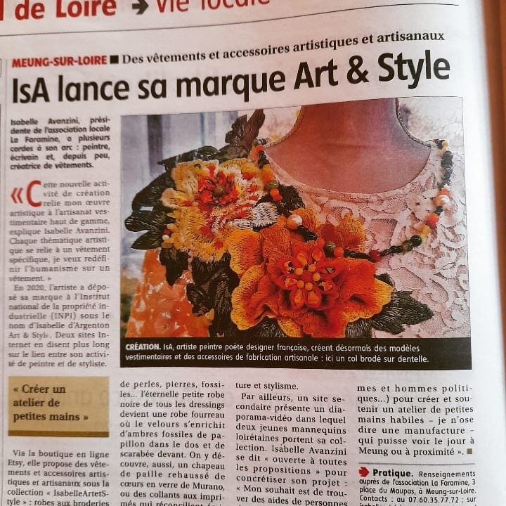 - Toute l’année sur RDV : Exposition – essayage des vêtements et ventes à la Galerie/Boutique de la Faramine, 3 Place du Maupas à Meung-sur-Loire.
