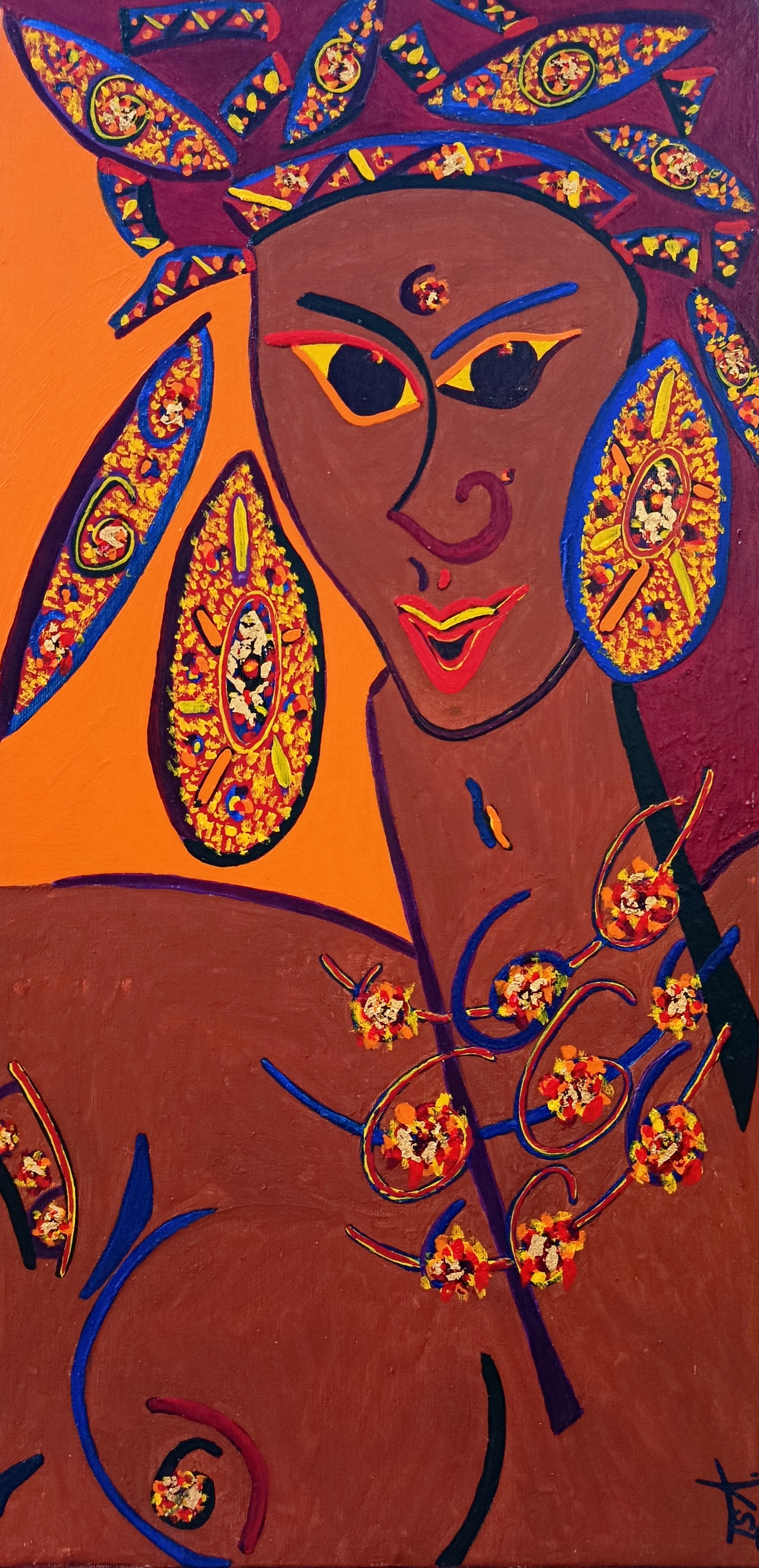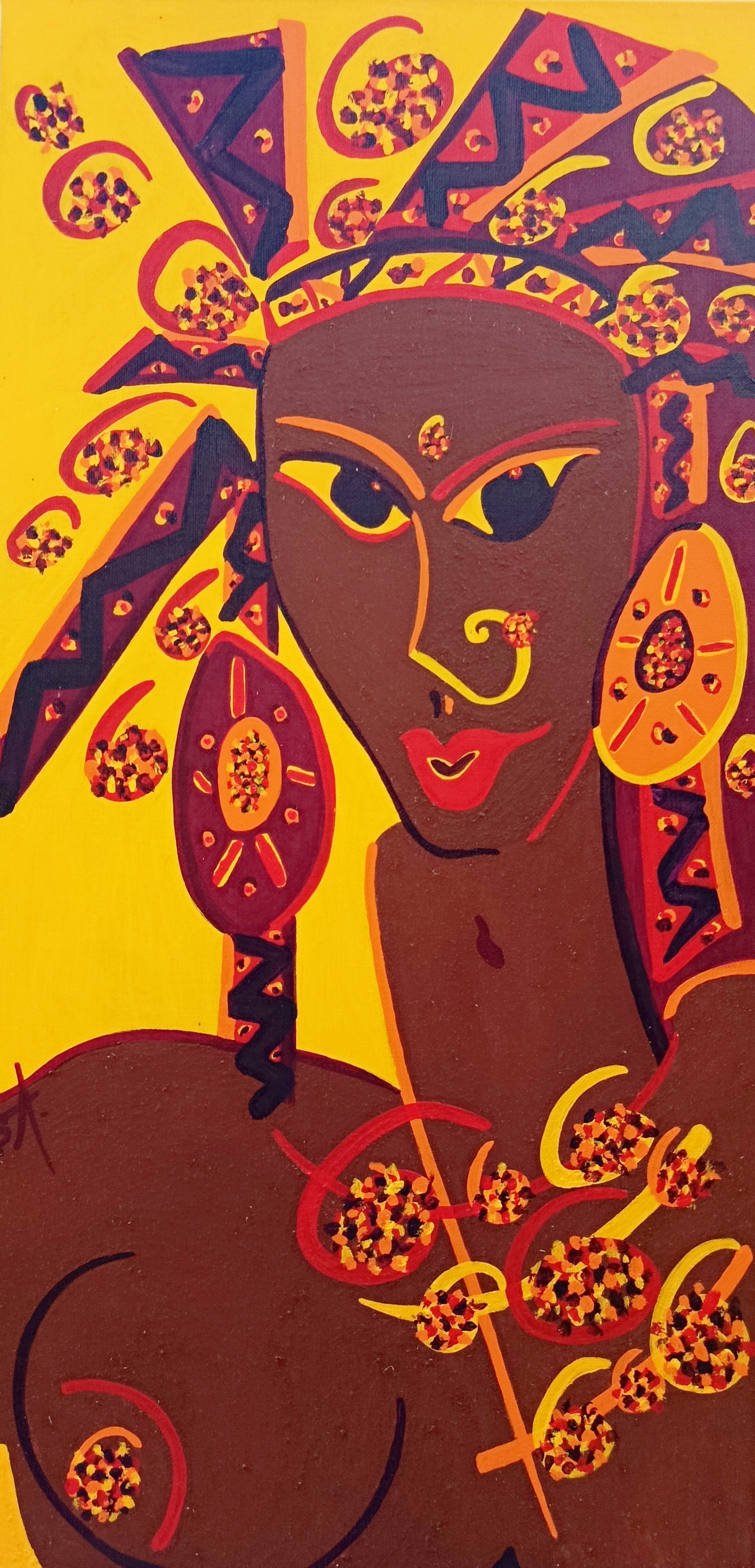 Exposition Galerie Thuillier Paris 3eme arr. 13, rue de Thorigny. Tél. 06.12.80.88.36. Du 27 Mars au 9 Avril 2026. « L’africaine » 30x60cm. Acrylique, or, sable de Loire. Au choix ! Vernissage le 31 mars de 18h à 21h.