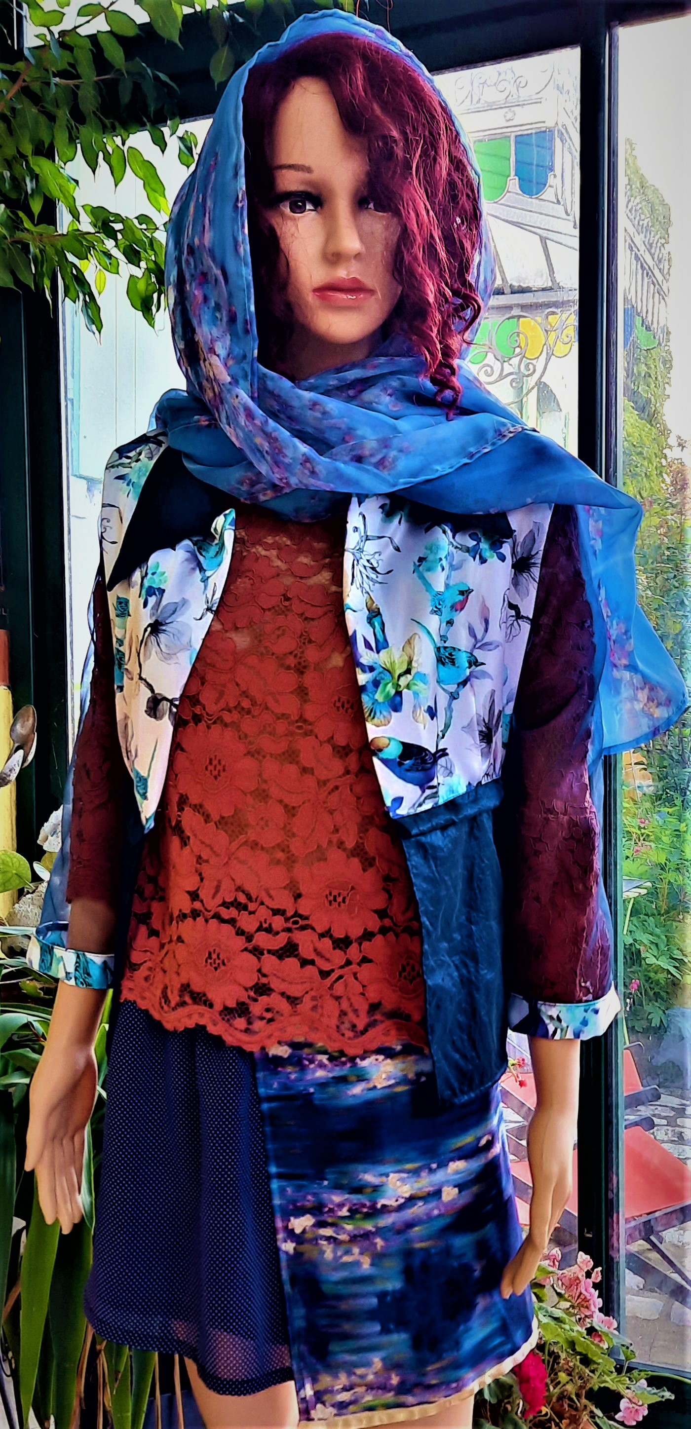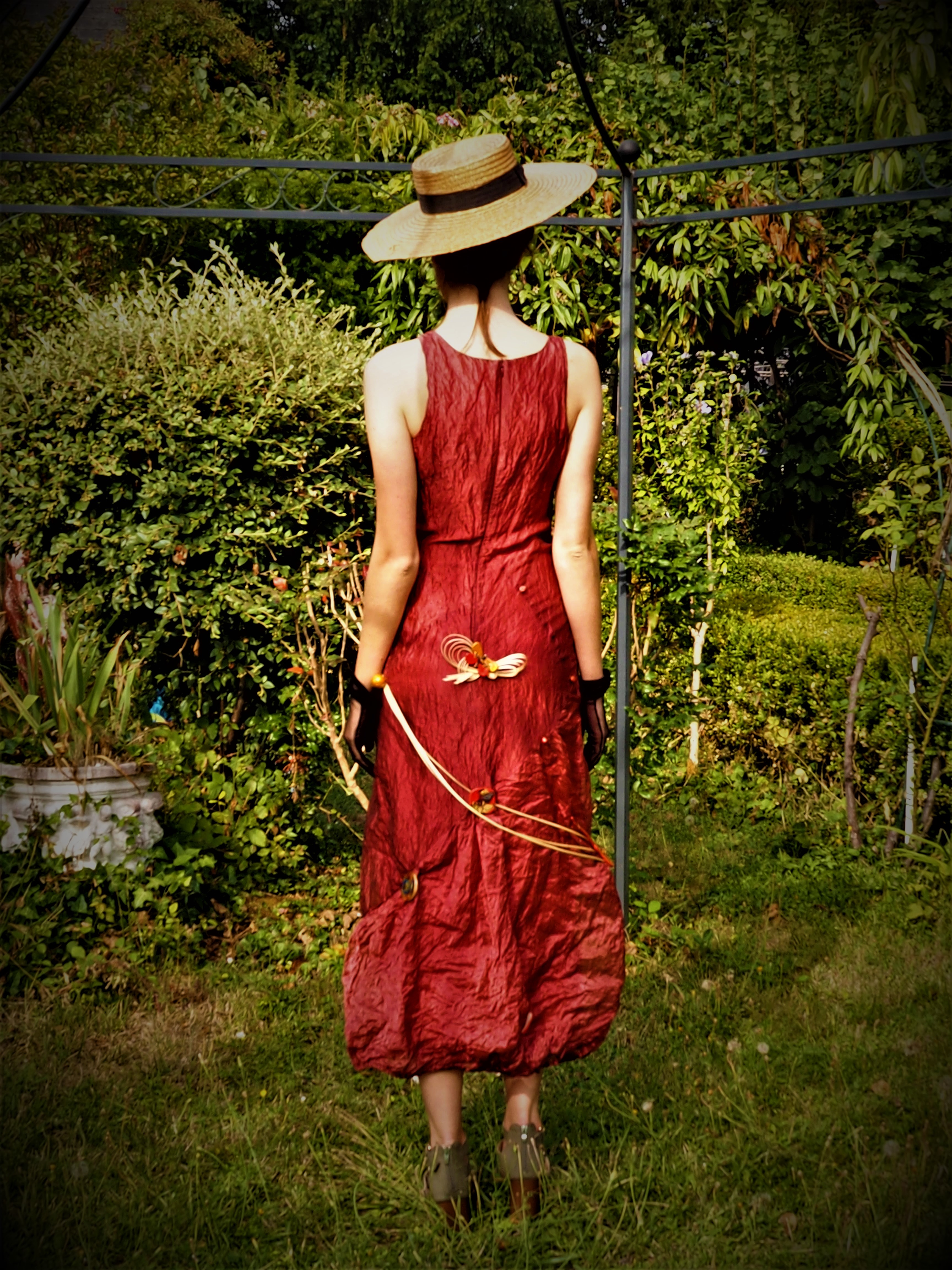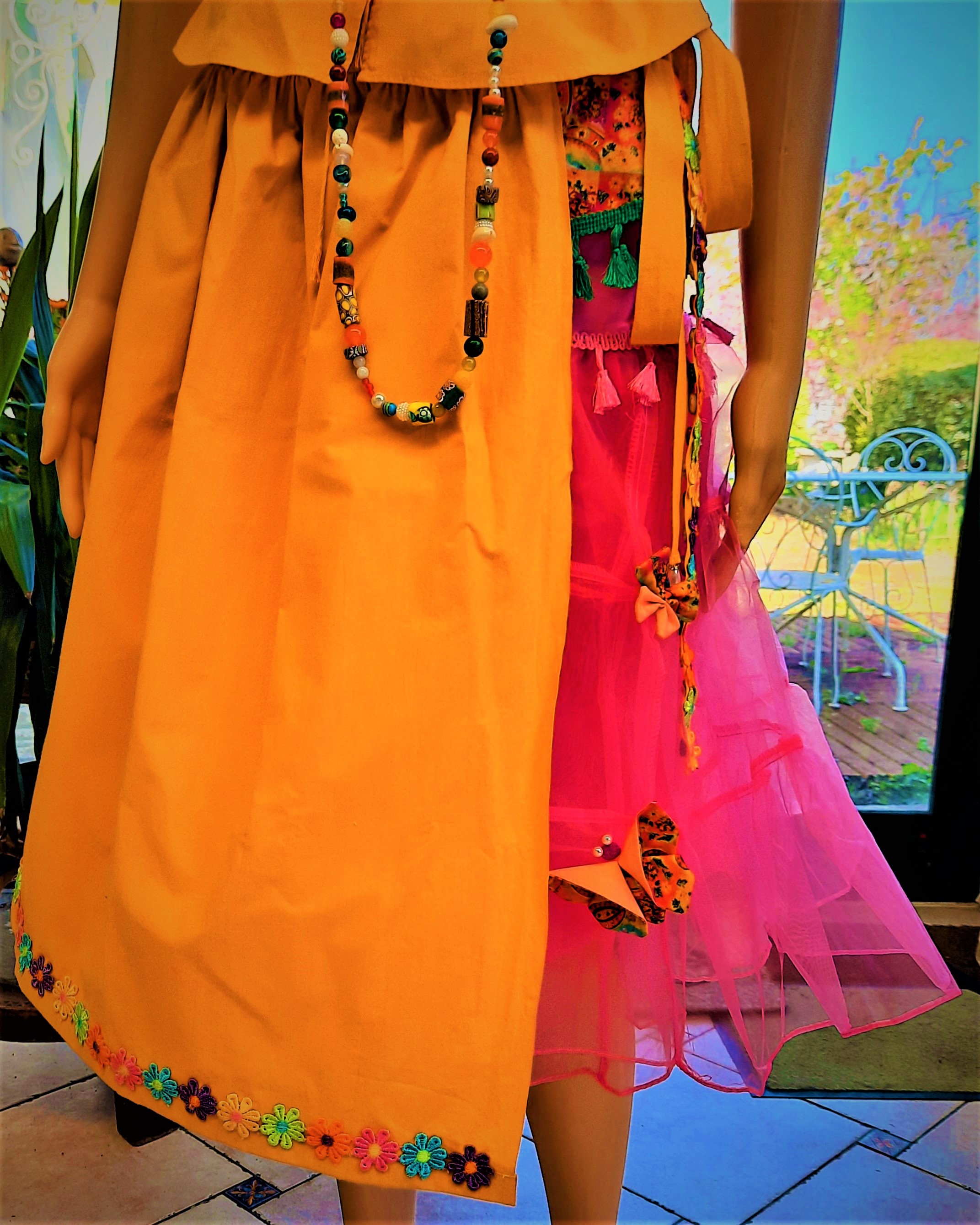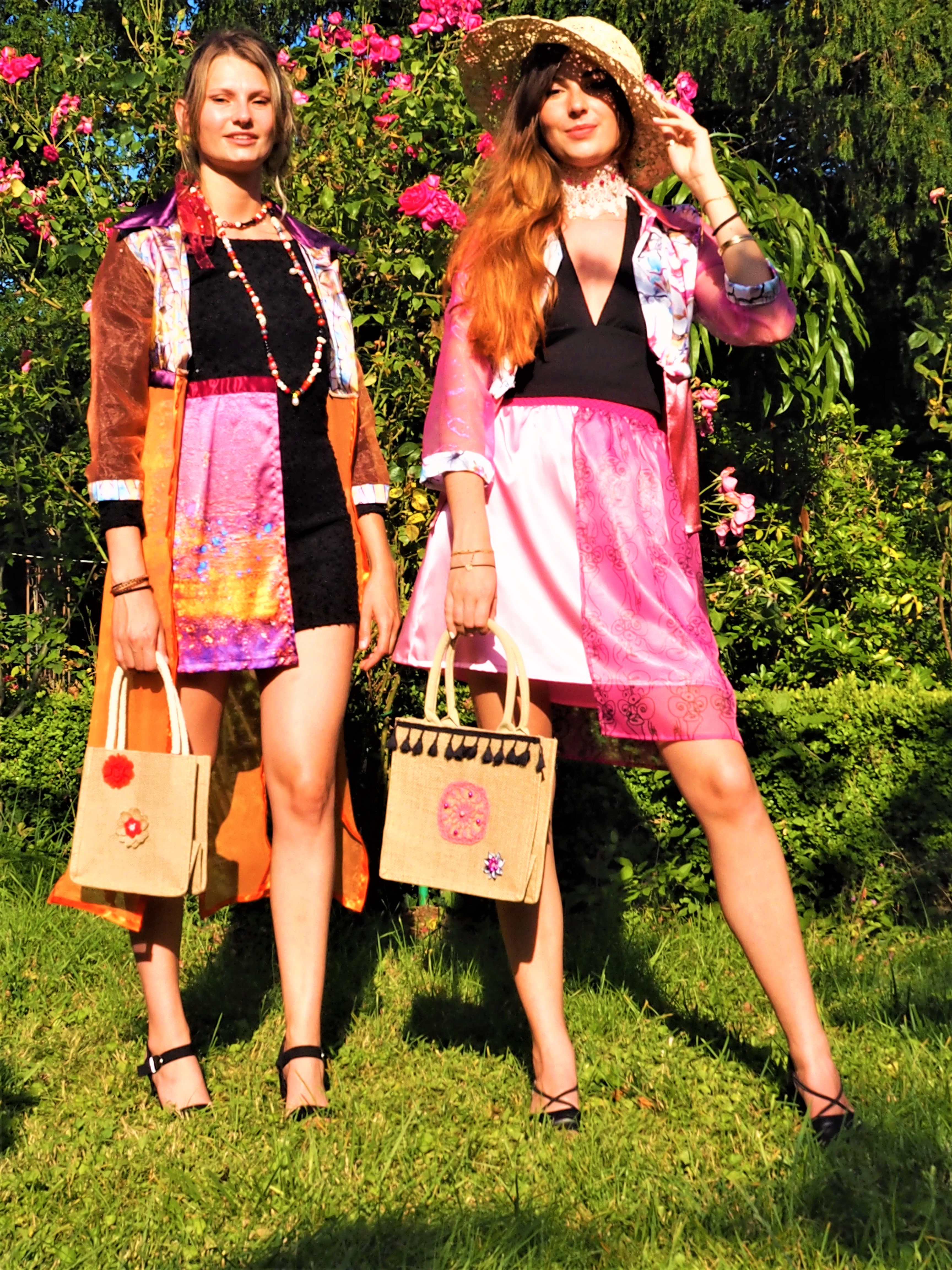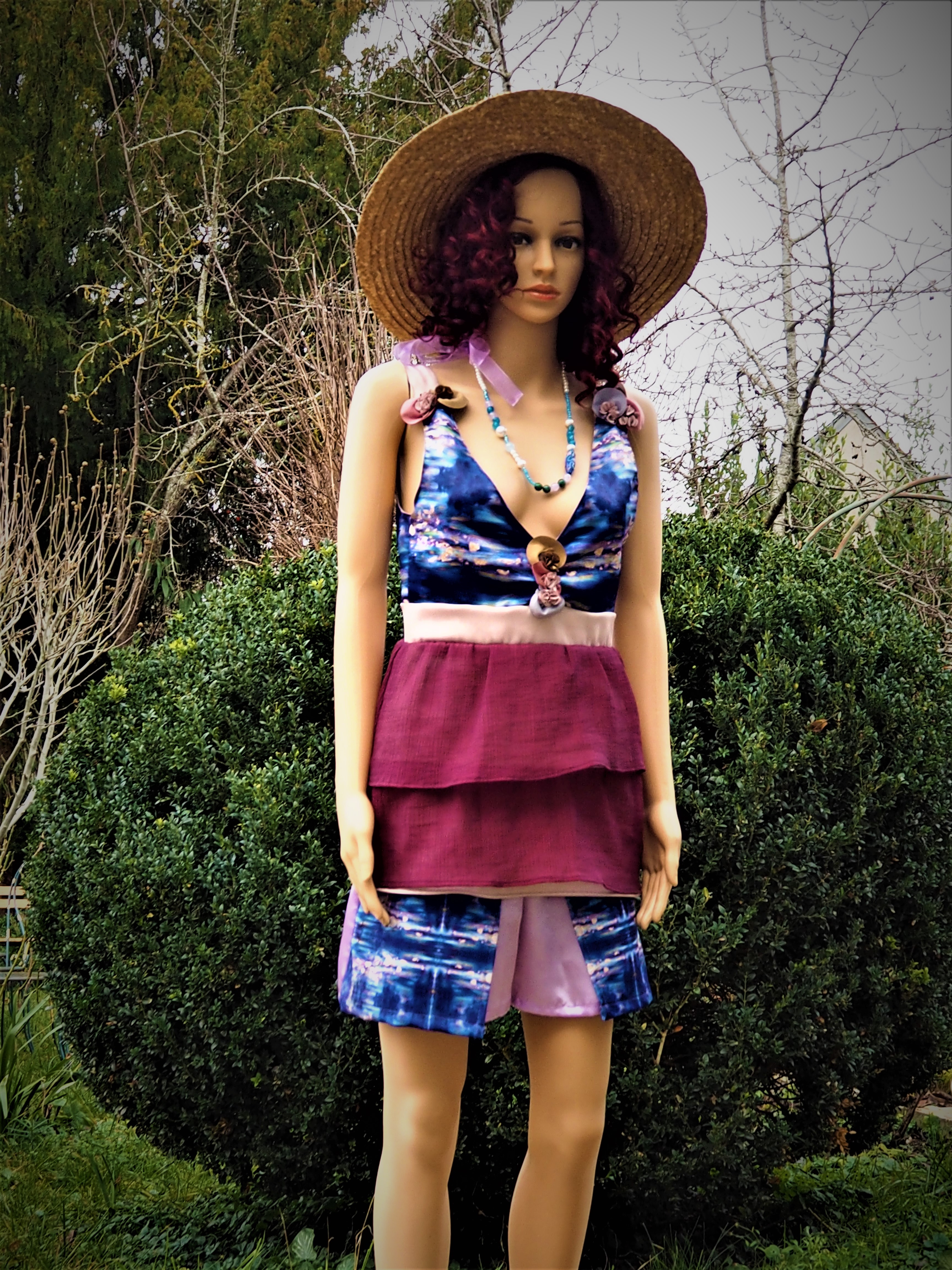 Ci-dessous, les vêtements portés par les mannequins sont en taille 36/38/40/42. Vous pouvez venir les essayer à l’atelier et les emporter si le cœur vous en dit ! Location possible pour des occasions festives ; me contacter par tél. ou par le site pour avoir de plus amples informations. Merci.