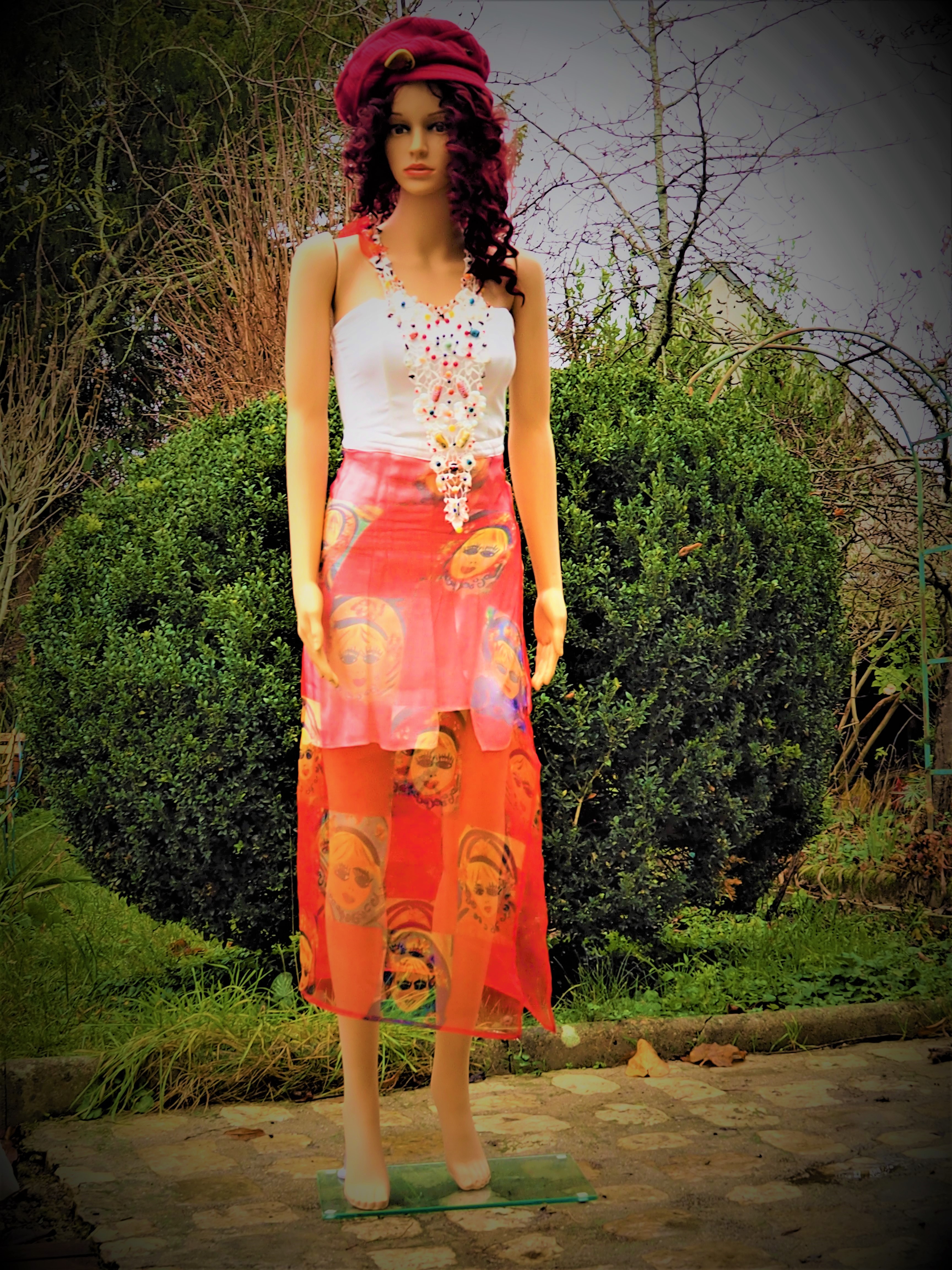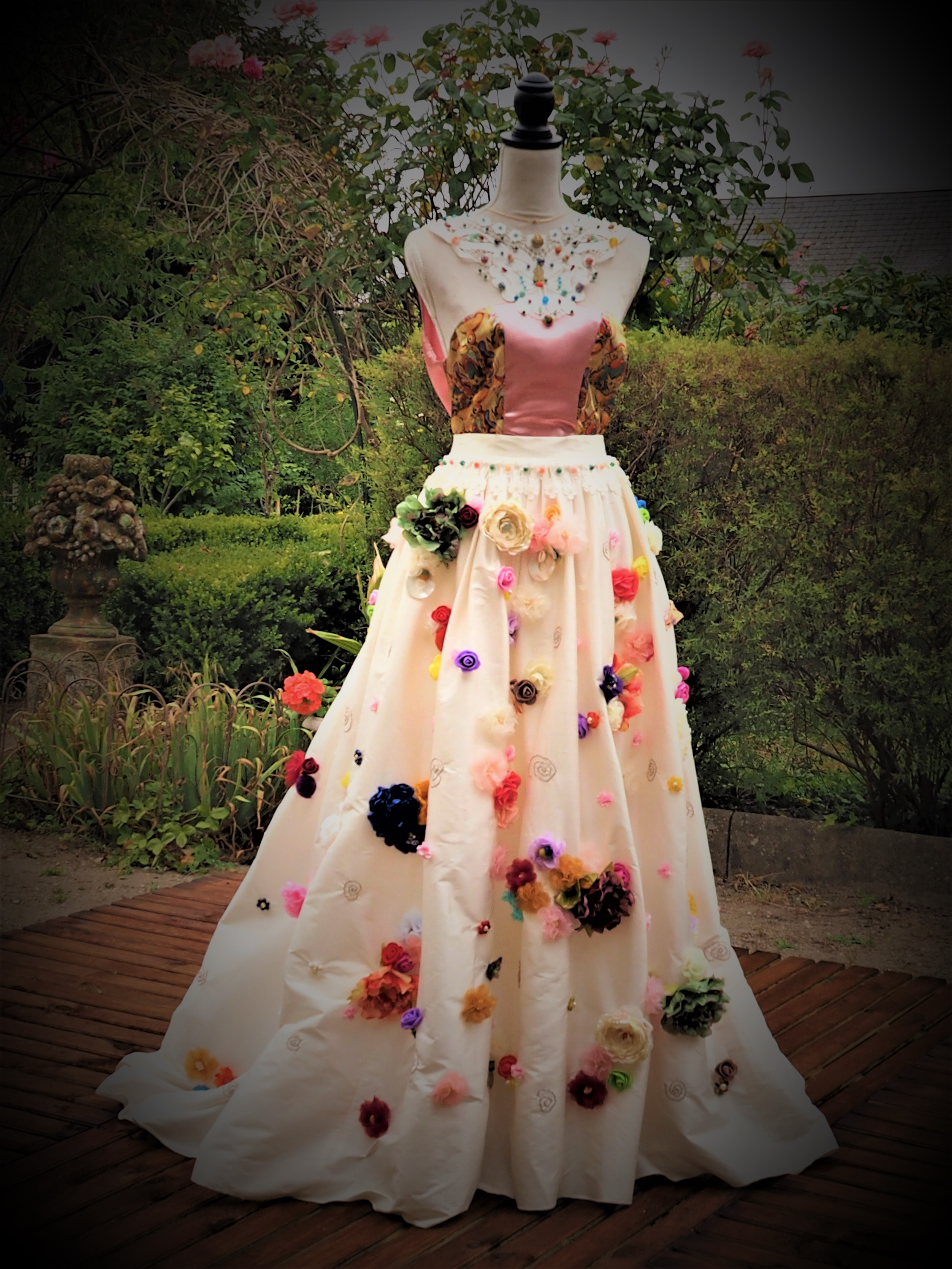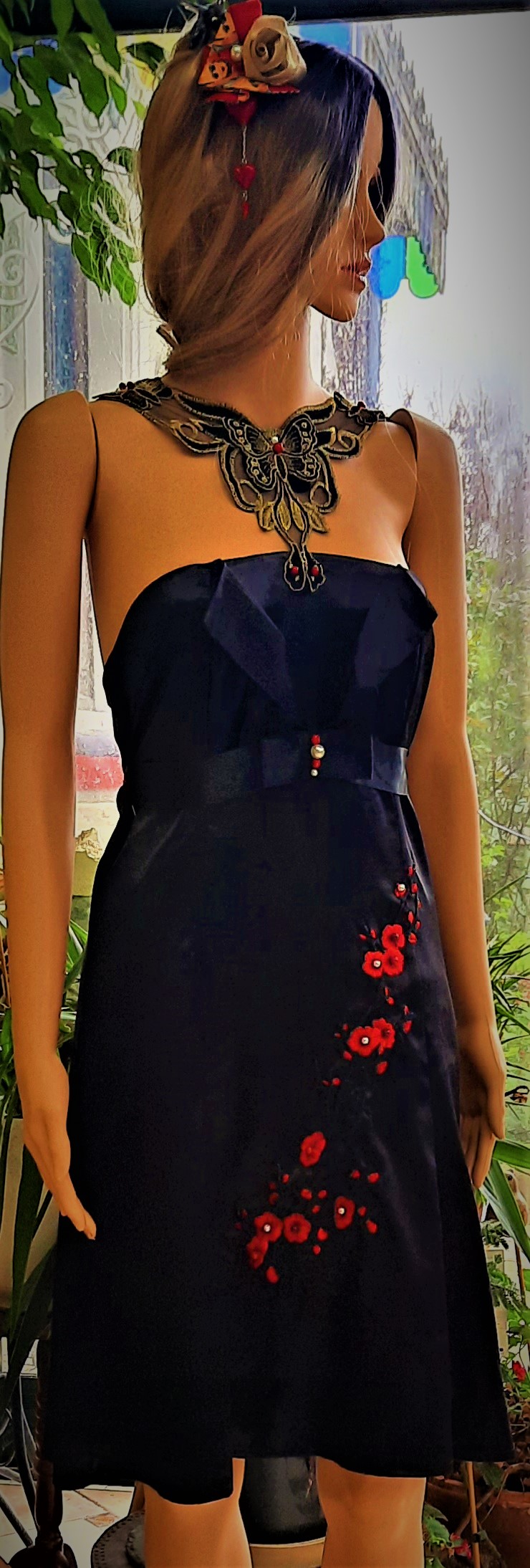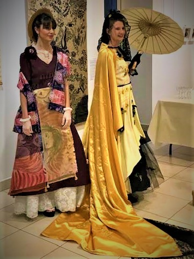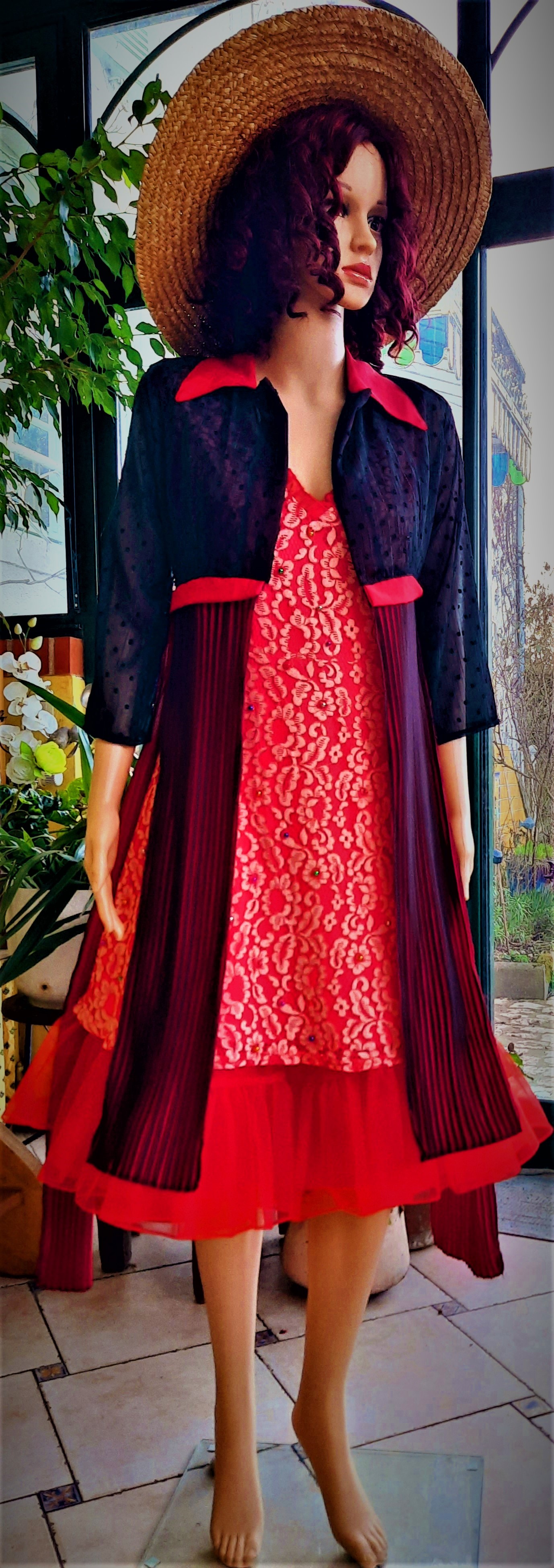 Ci-dessous, les vêtements portés par les mannequins sont en taille 36/38/40/42. Vous pouvez venir les essayer à l’atelier et les emporter si le cœur vous en dit ! Location possible pour des occasions festives ; me contacter par tél. ou par le site pour avoir de plus amples informations. Merci.