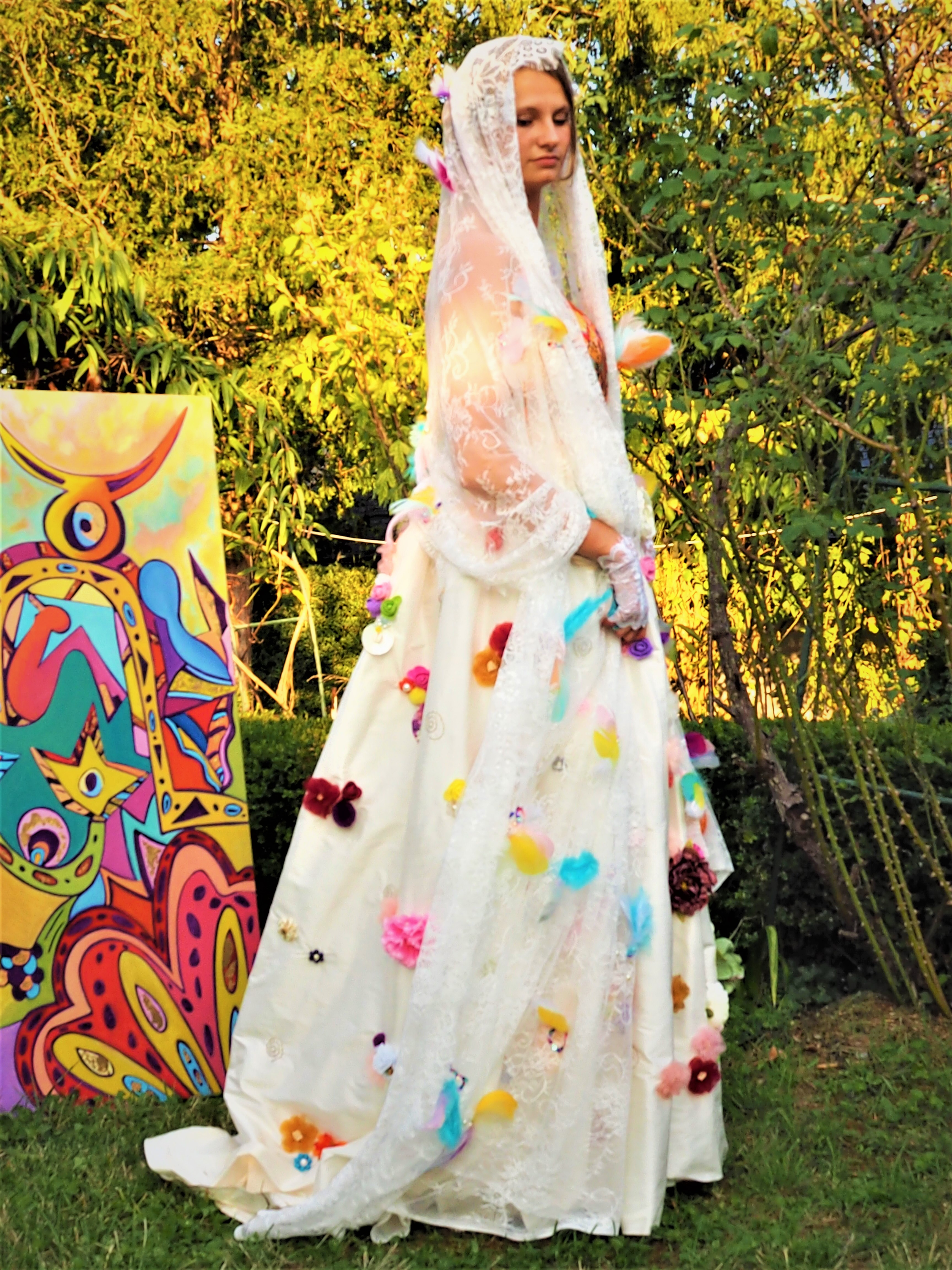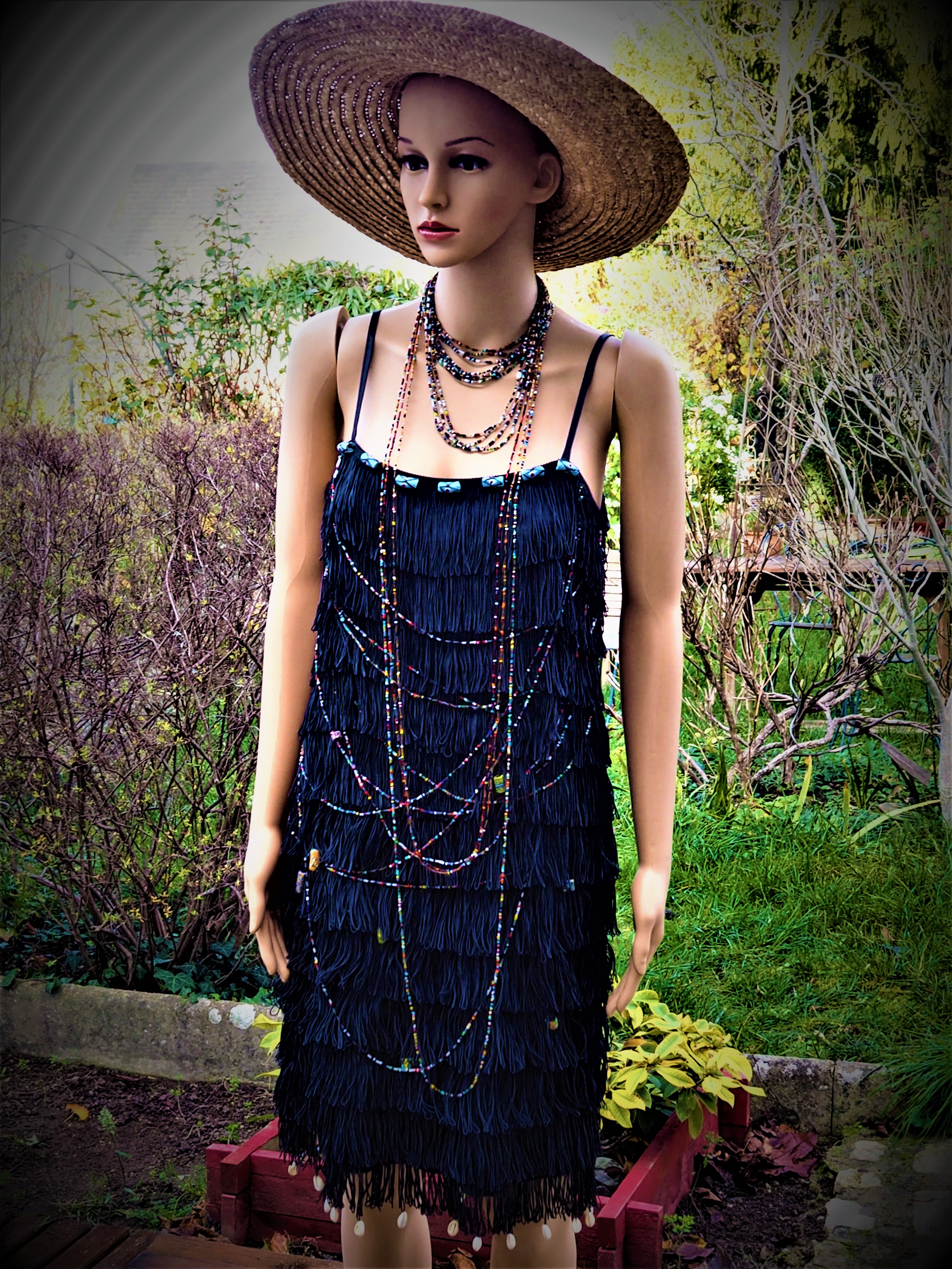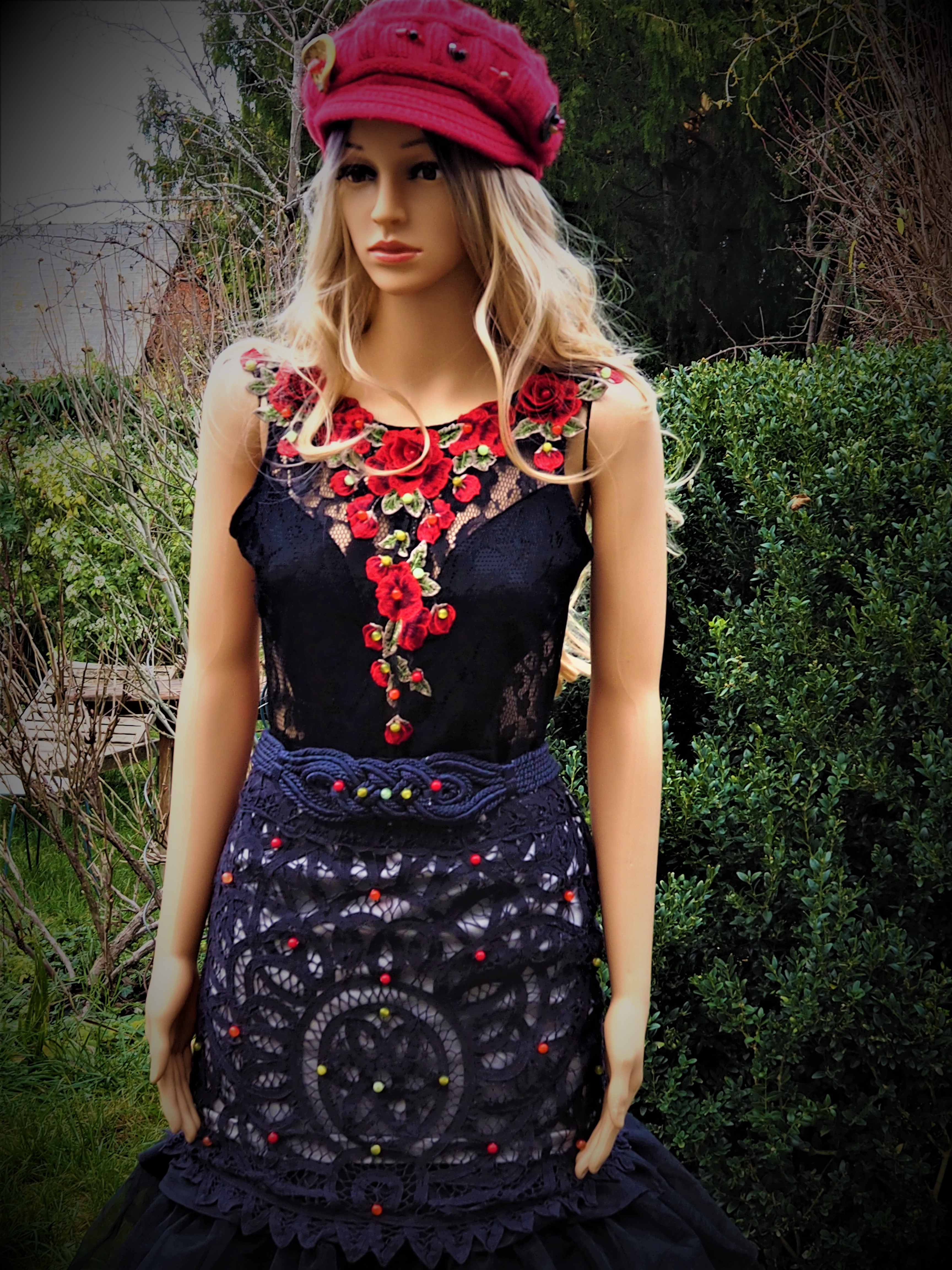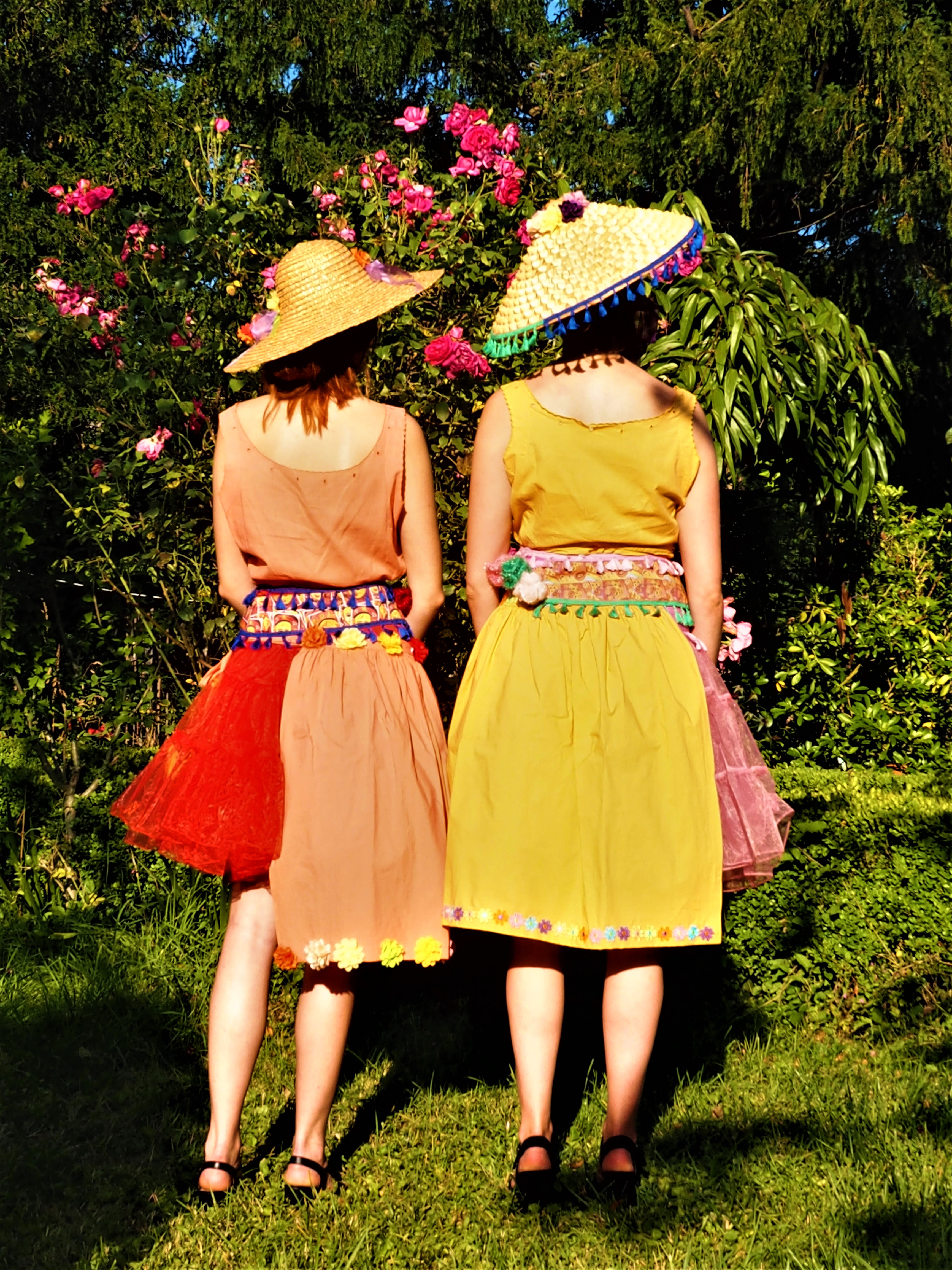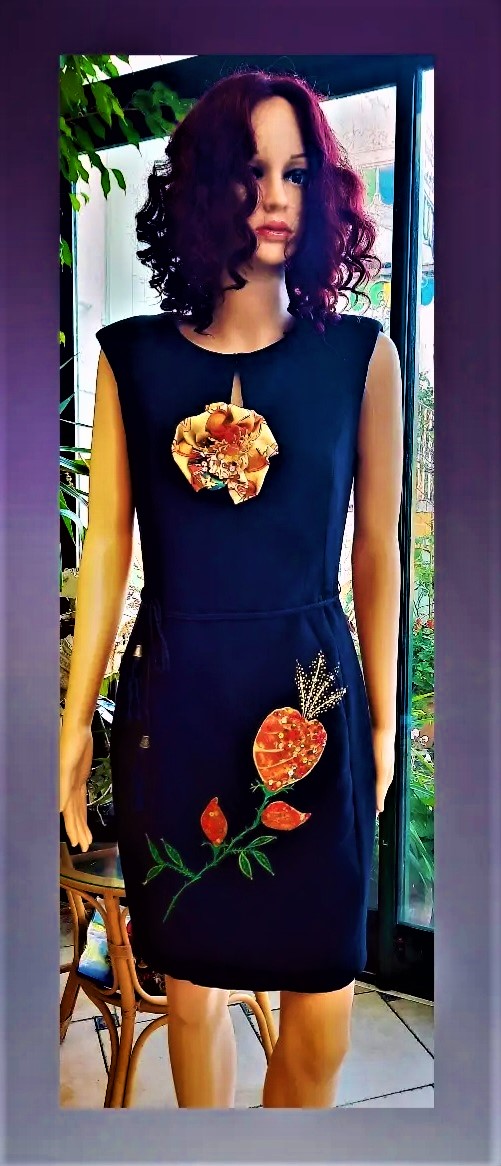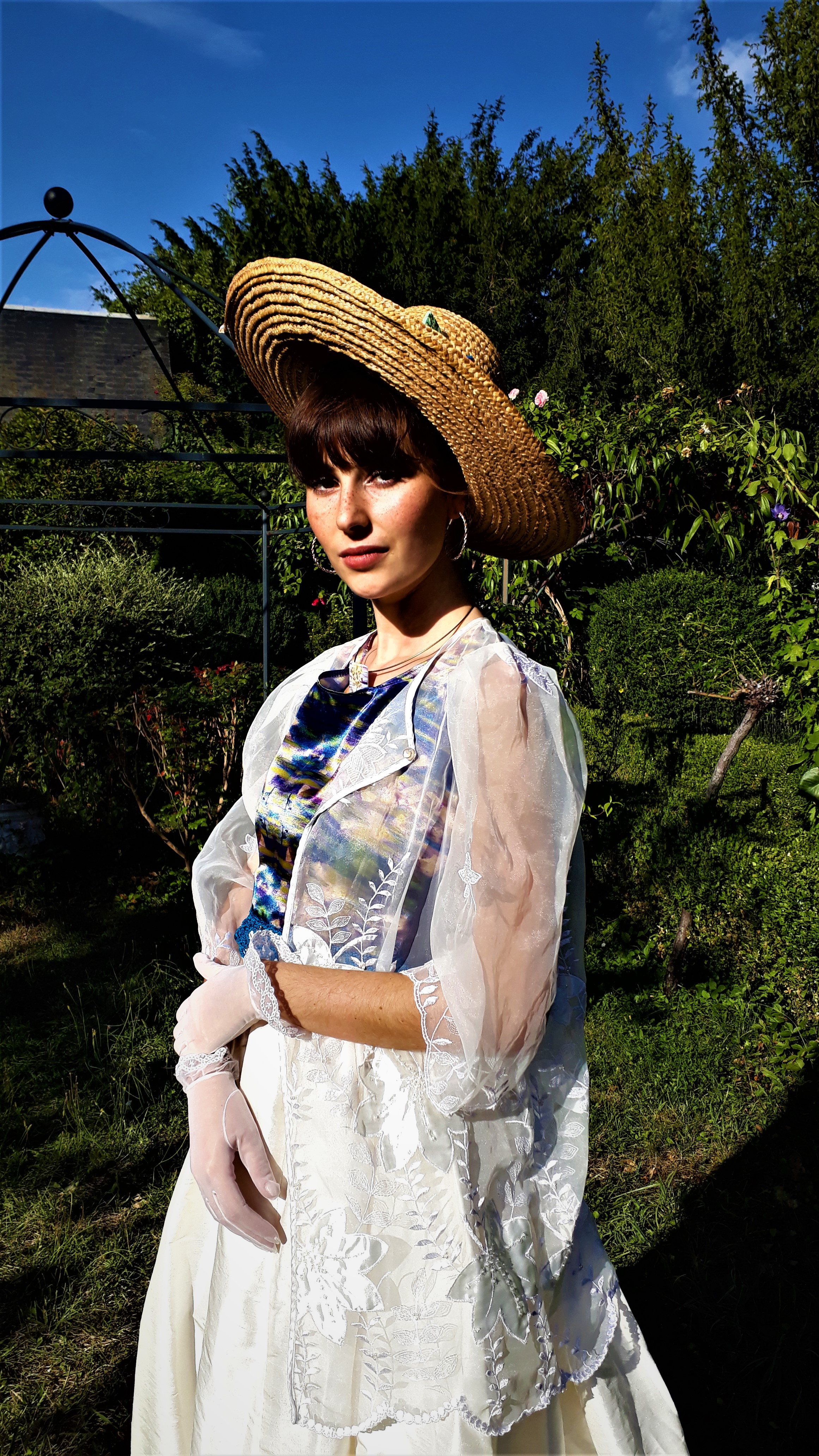 Ci-dessous, les vêtements portés par les mannequins sont en taille 36/38/40/42. Vous pouvez venir les essayer à l’atelier et les emporter si le cœur vous en dit ! Location possible pour des occasions festives ; me contacter par tél. ou par le site pour avoir de plus amples informations. Merci.