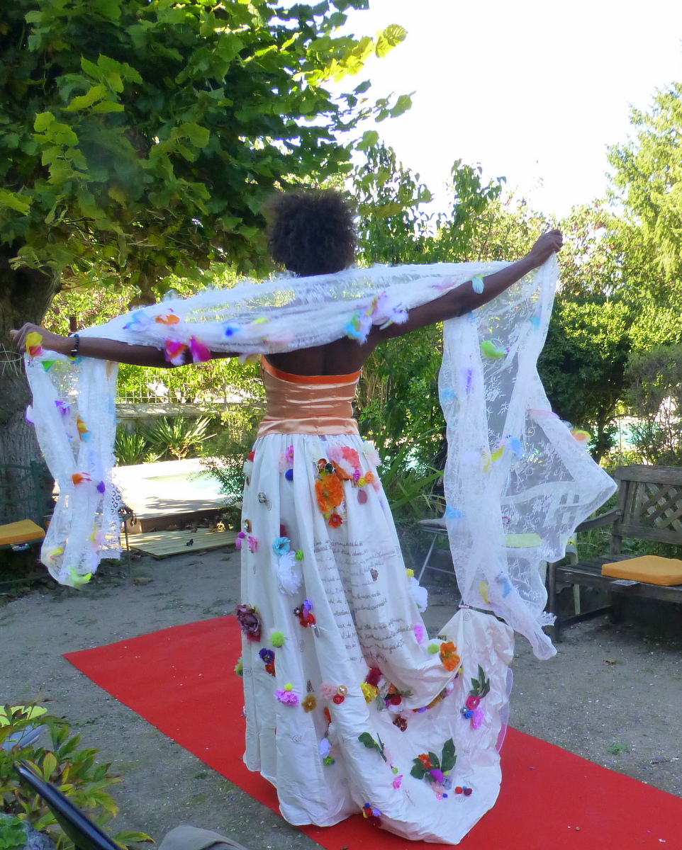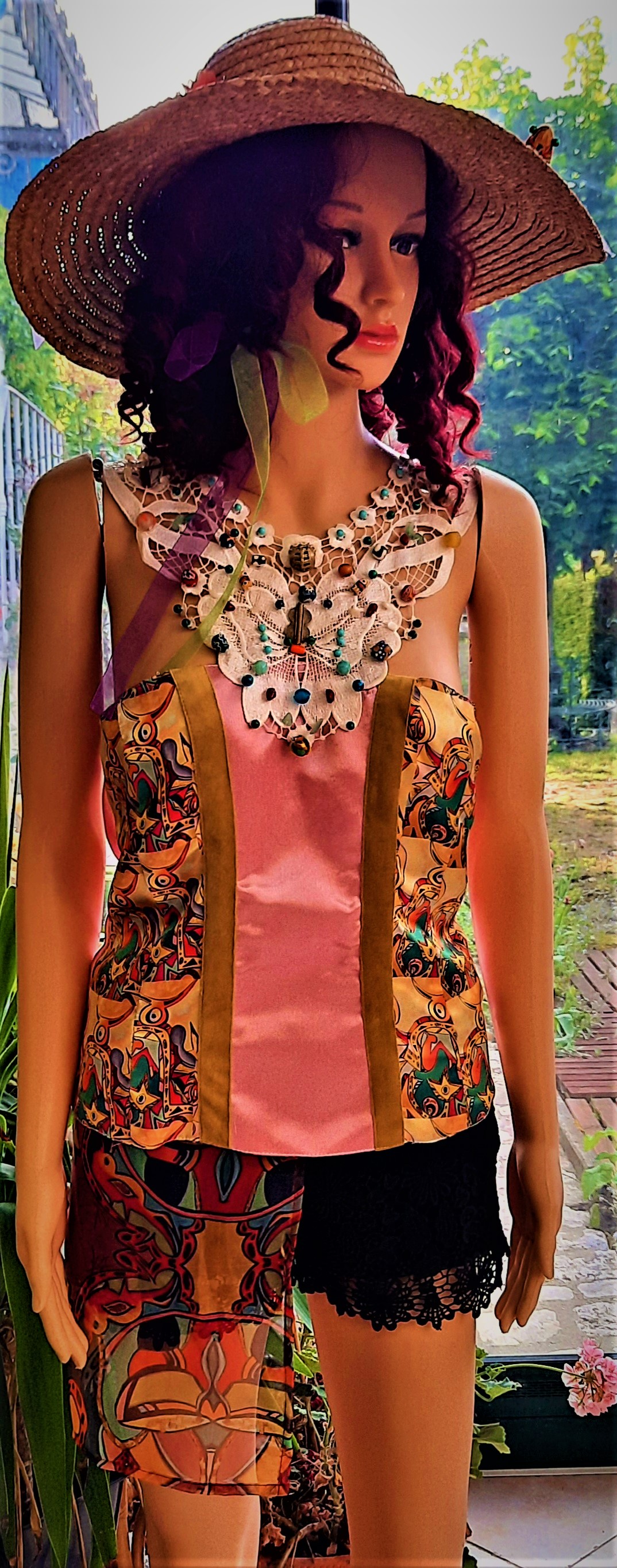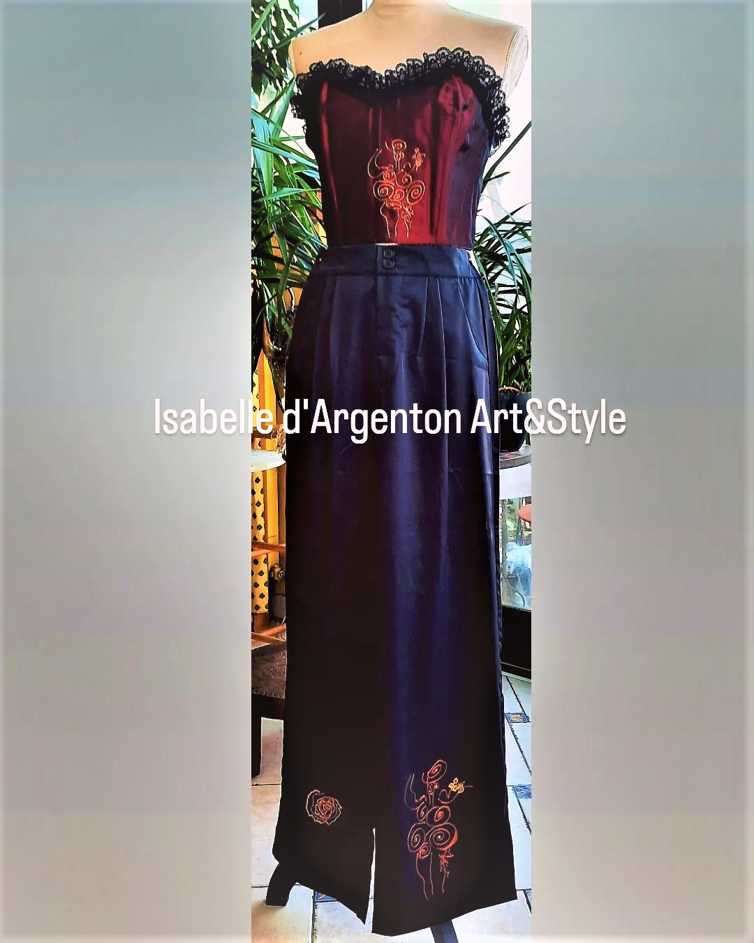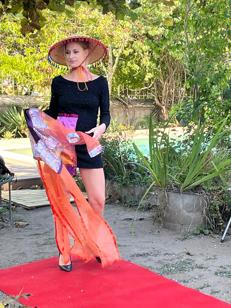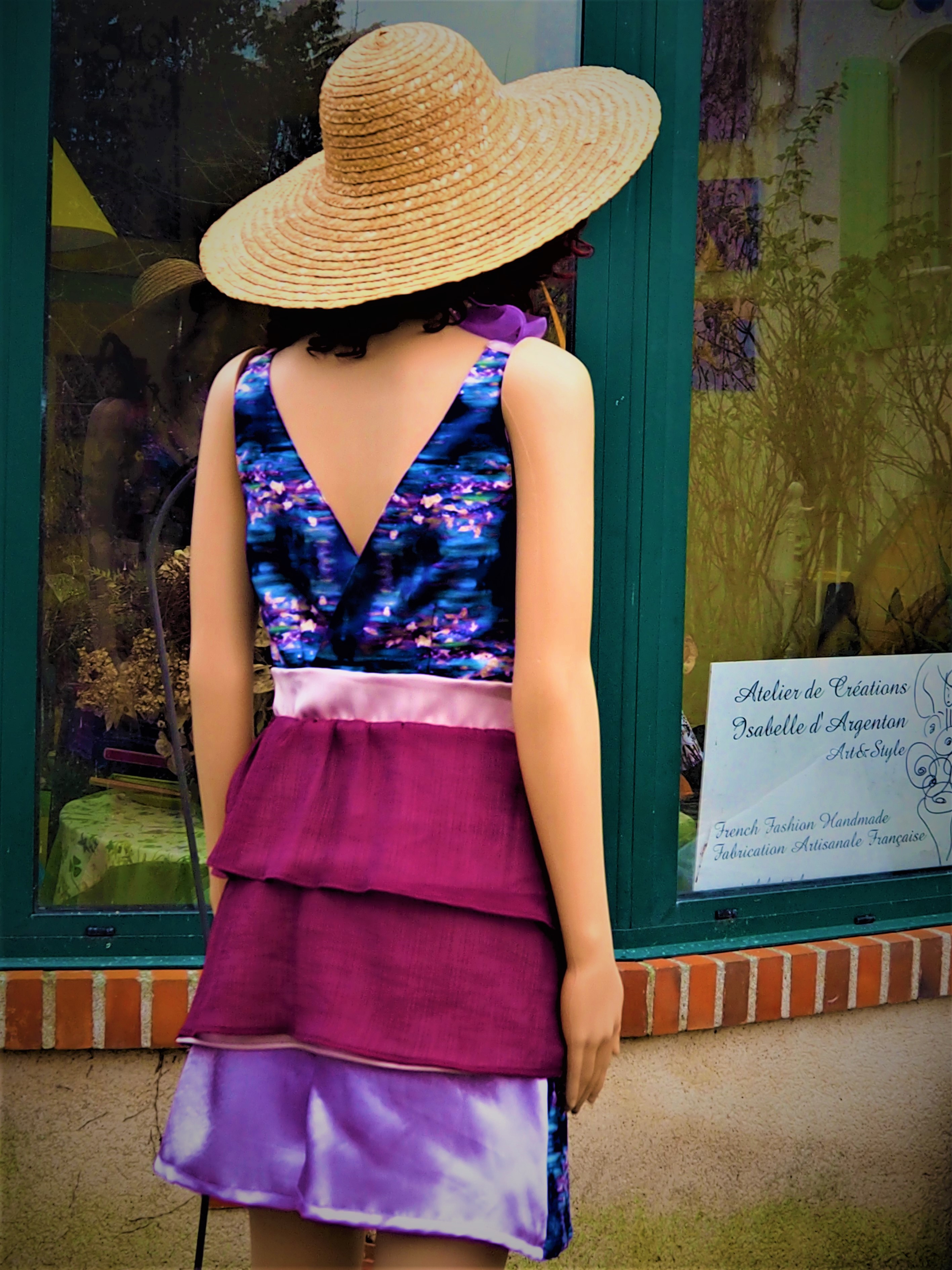 Ci-dessous, les vêtements portés par les mannequins sont en taille 36/38/40/42. Vous pouvez venir les essayer à l’atelier et les emporter si le cœur vous en dit ! Location possible pour des occasions festives ; me contacter par tél. ou par le site pour avoir de plus amples informations. Merci.