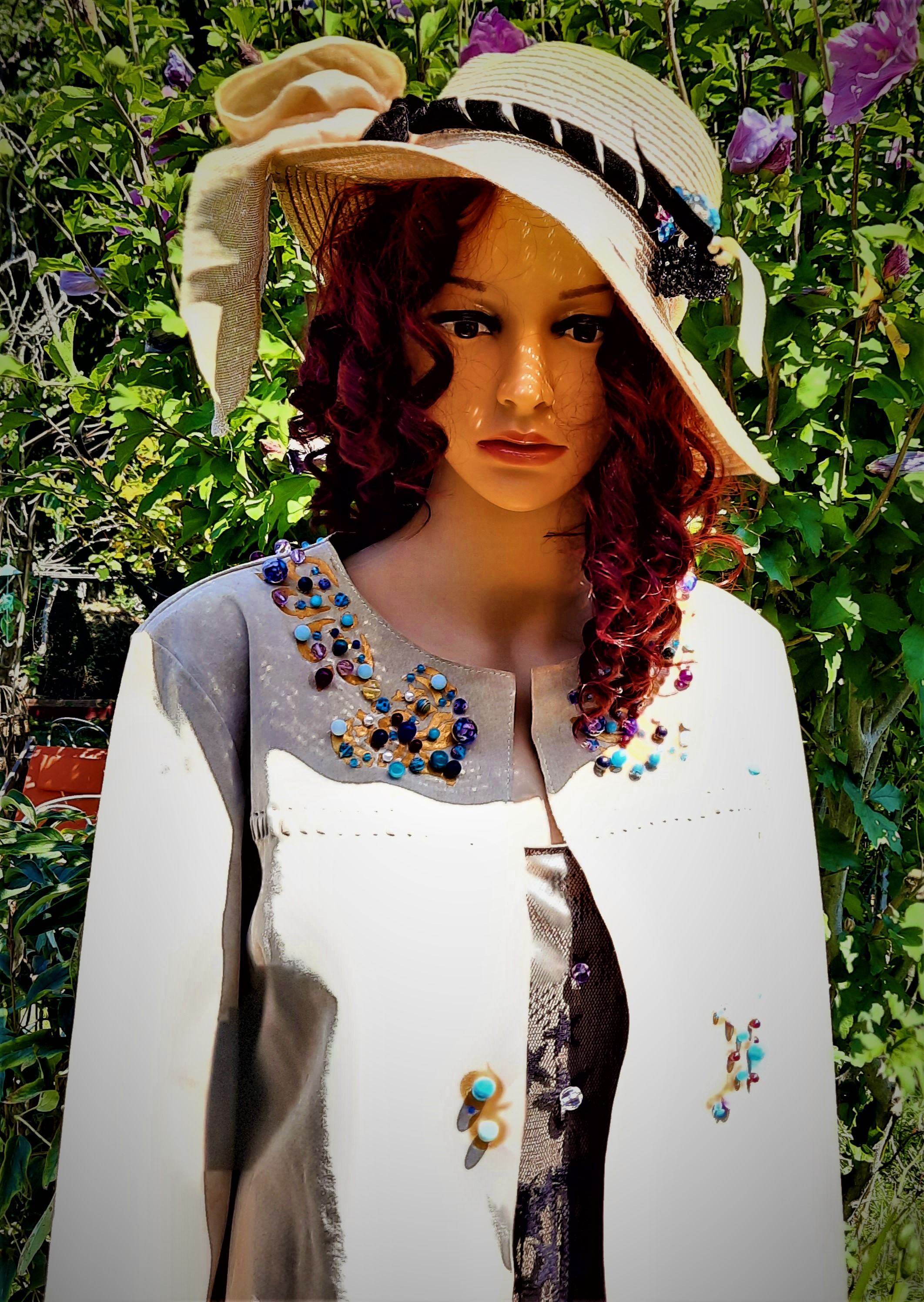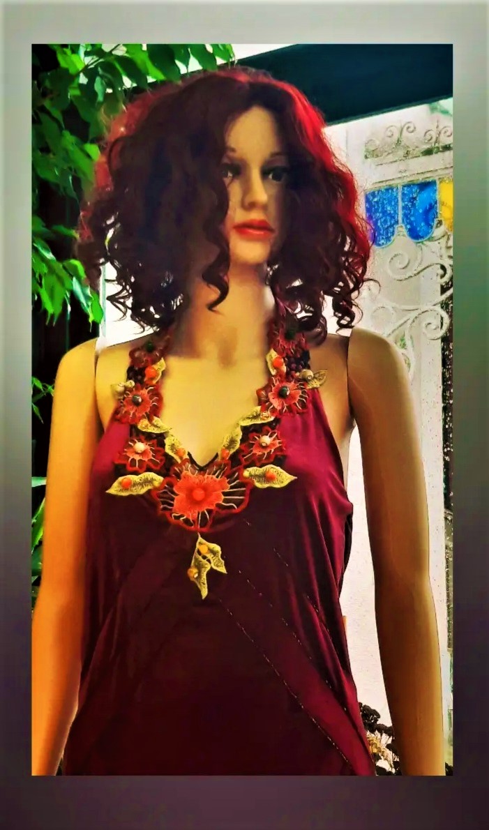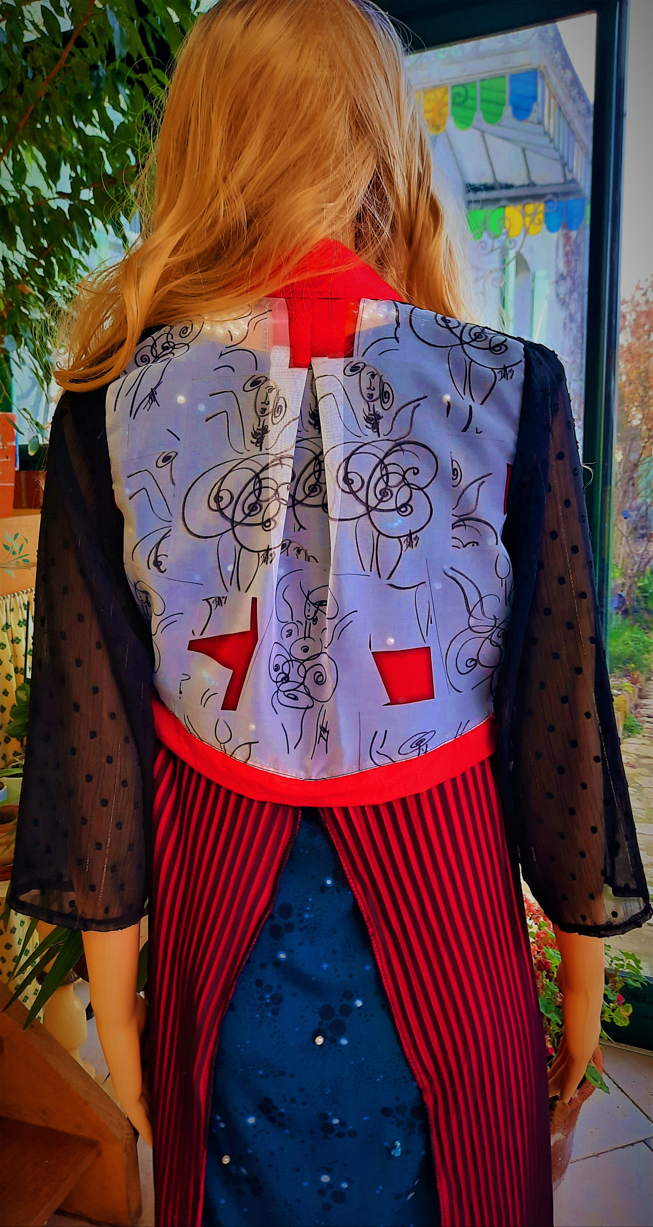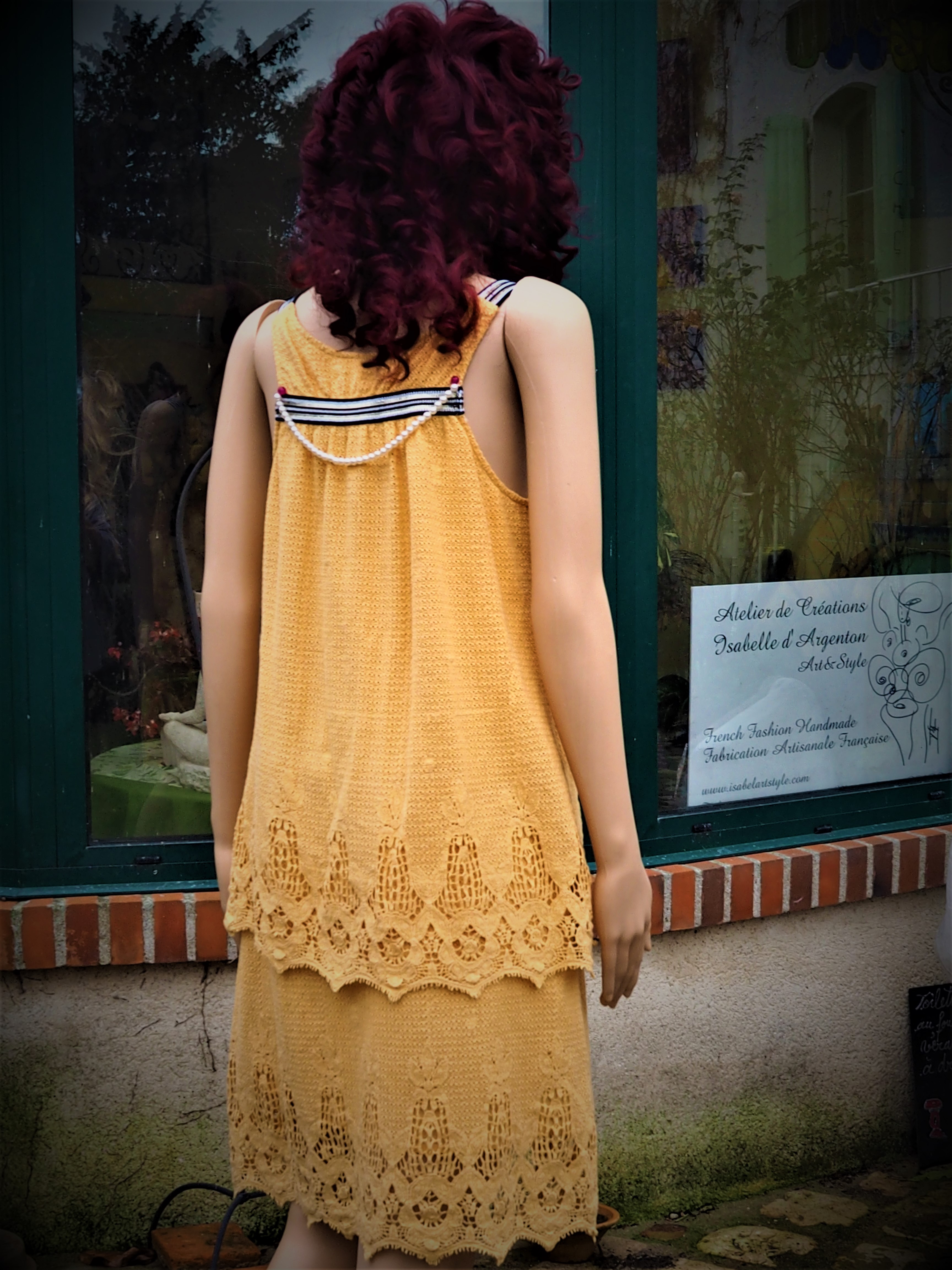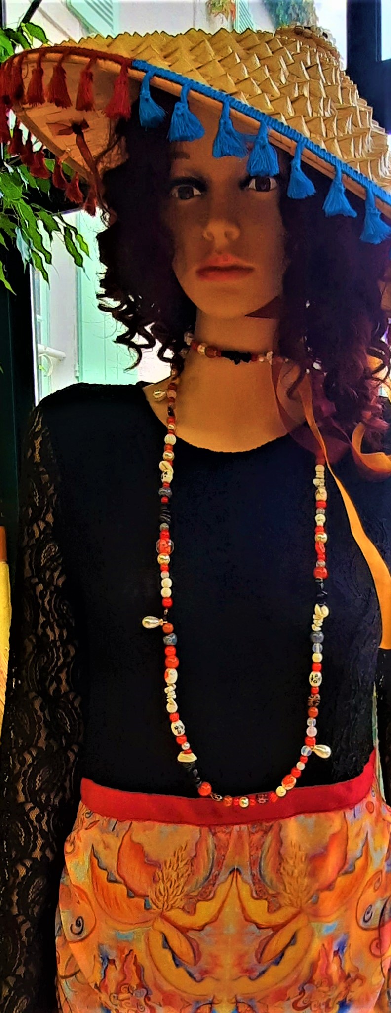Ci-dessous, les vêtements portés par les mannequins sont en taille 36/38/40/42. Vous pouvez venir les essayer à l’atelier et les emporter si le cœur vous en dit ! Location possible pour des occasions festives ; me contacter par tél. ou par le site pour avoir de plus amples informations. Merci.