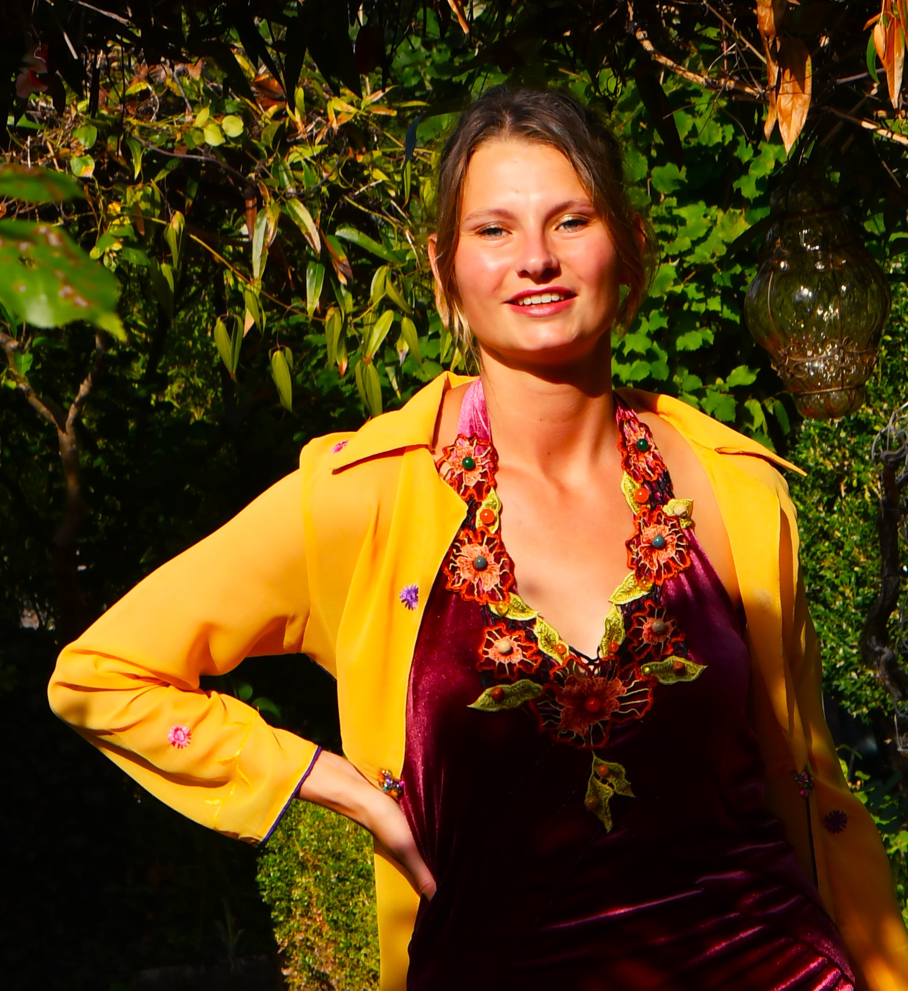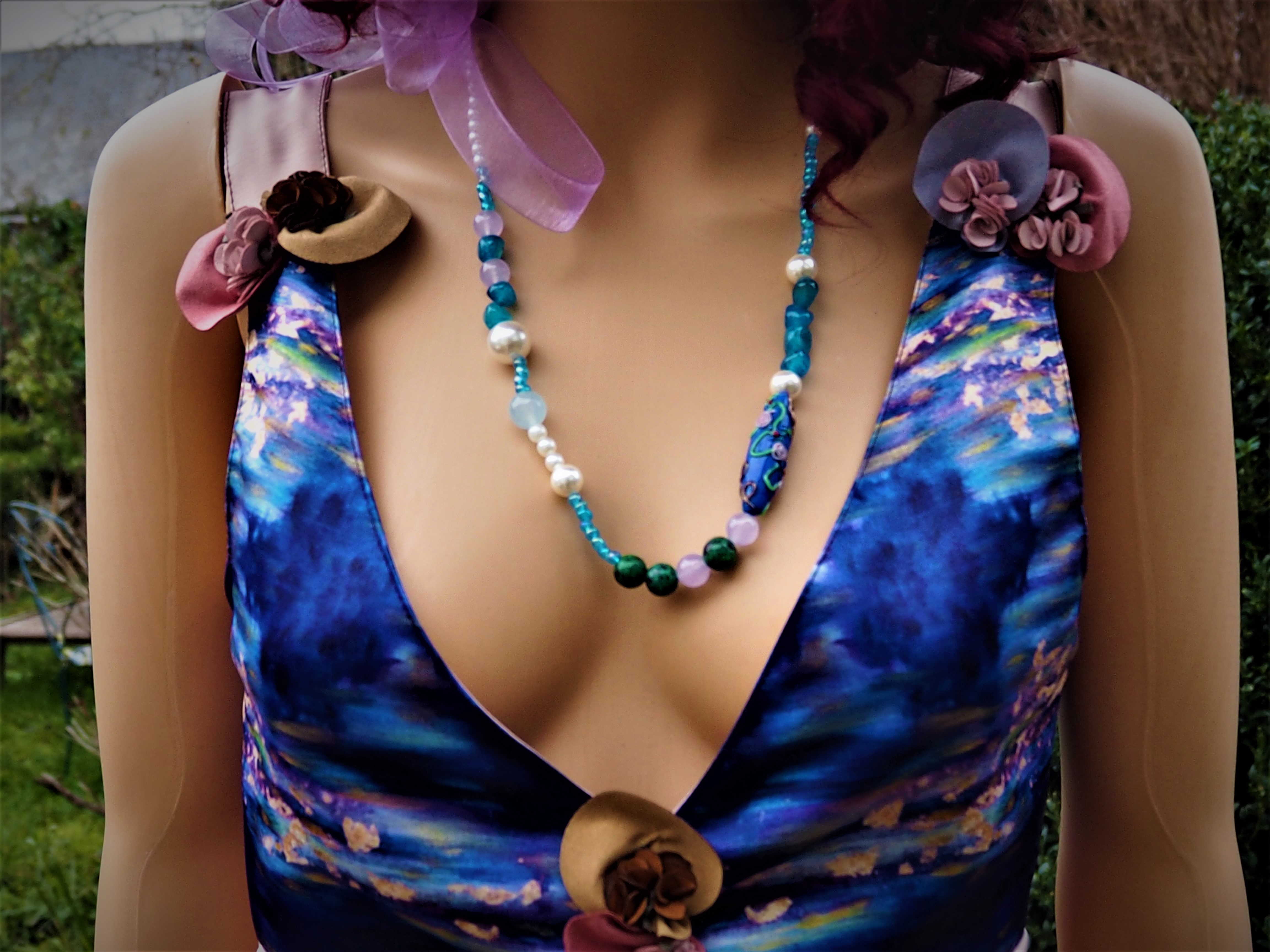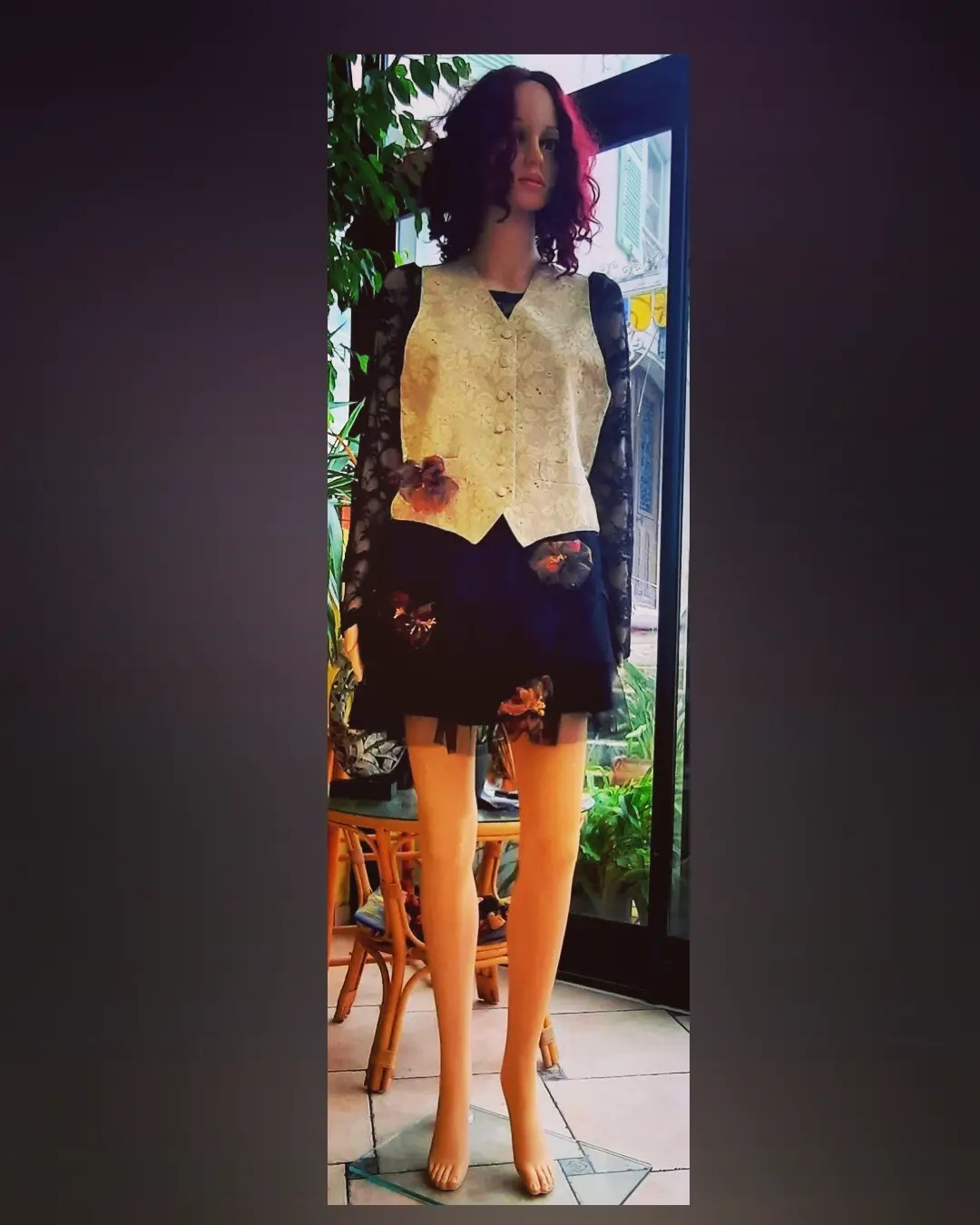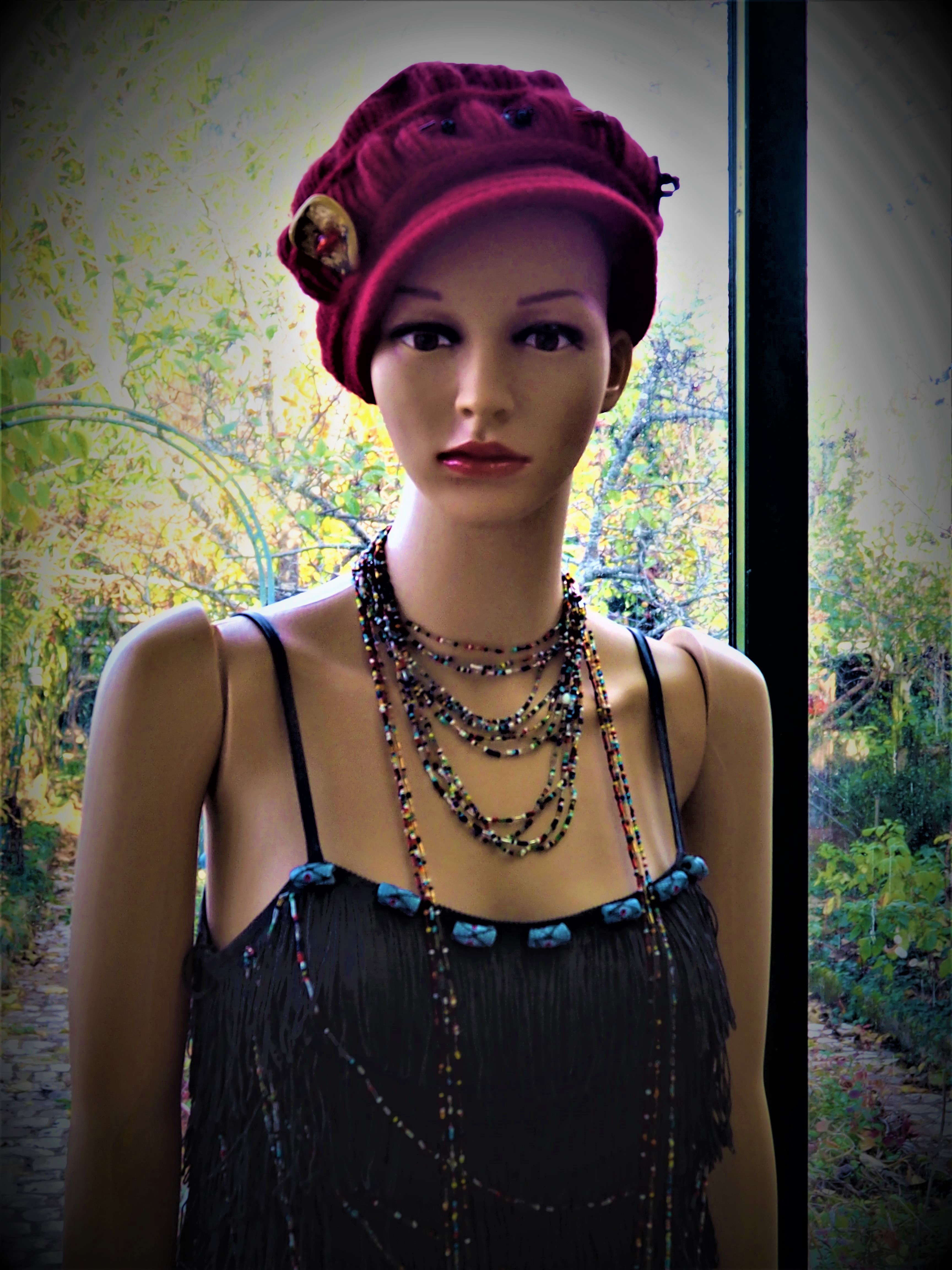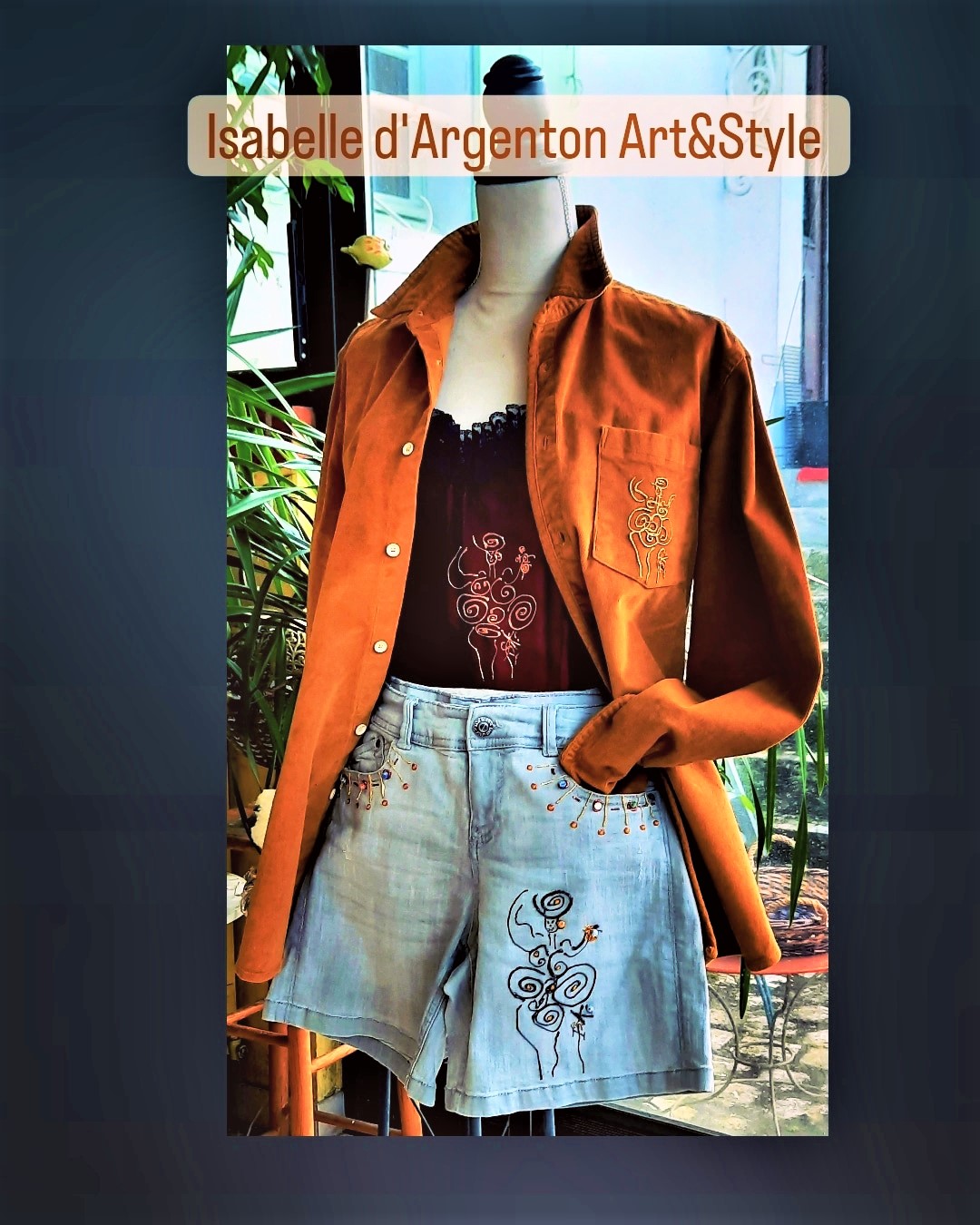 Ci-dessous, les vêtements portés par les mannequins sont en taille 36/38/40/42. Vous pouvez venir les essayer à l’atelier et les emporter si le cœur vous en dit ! Location possible pour des occasions festives ; me contacter par tél. ou par le site pour avoir de plus amples informations. Merci.