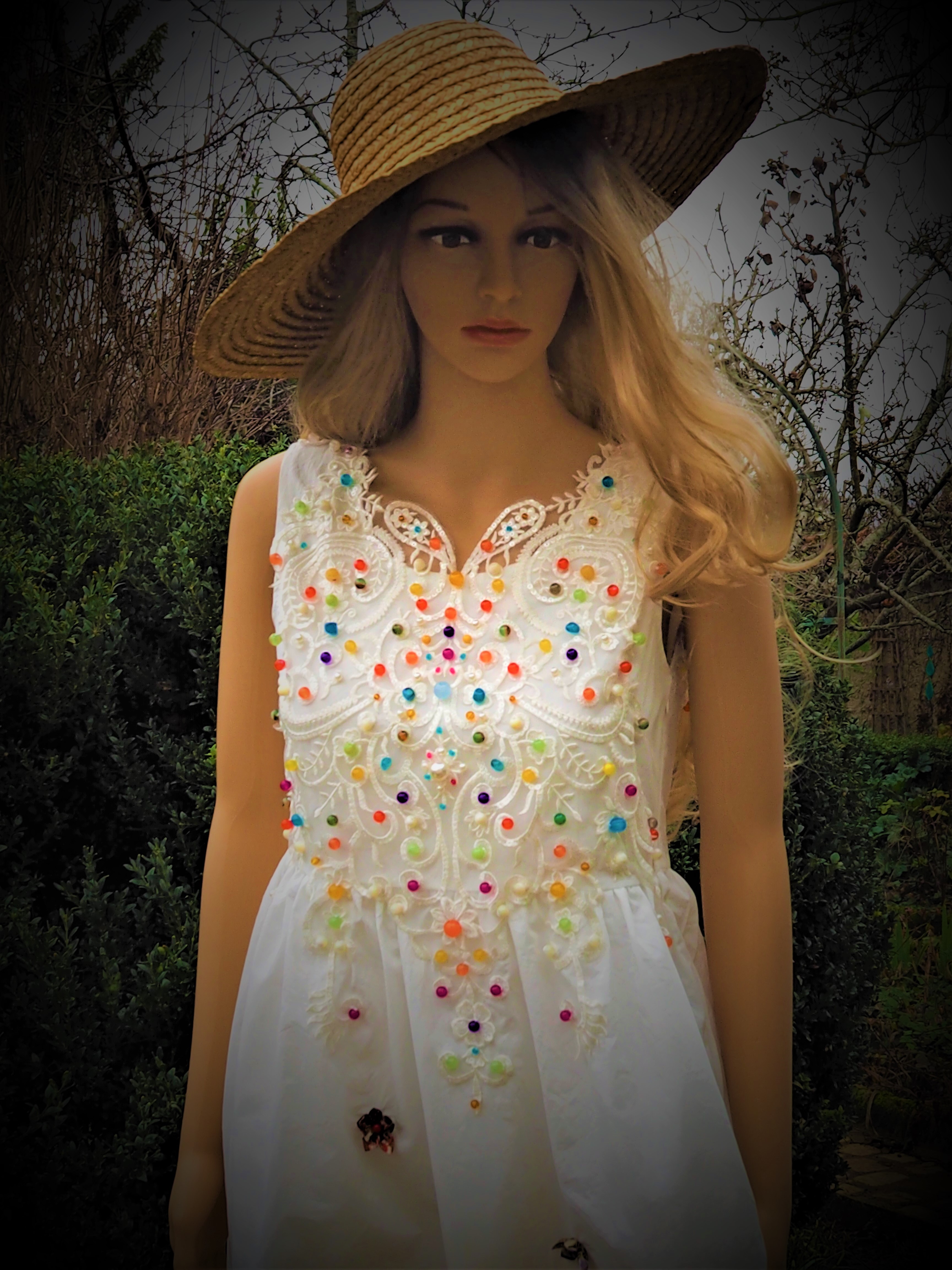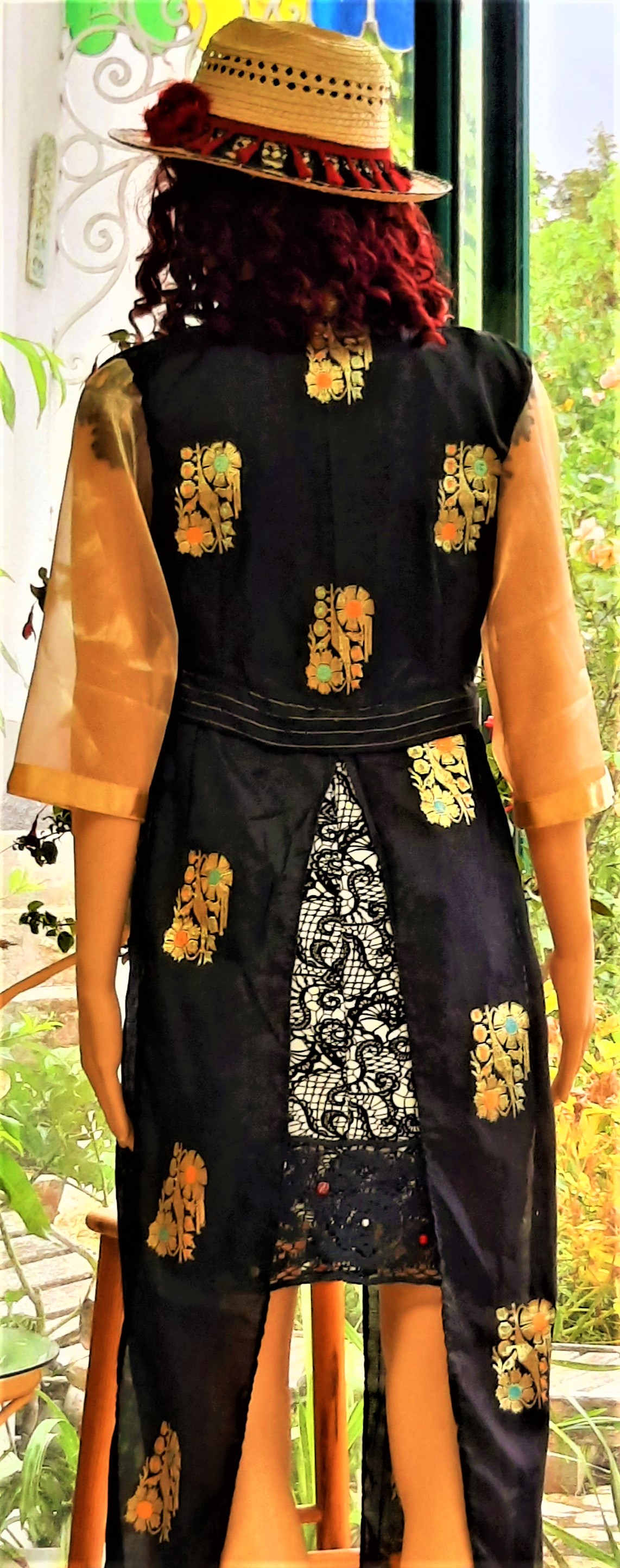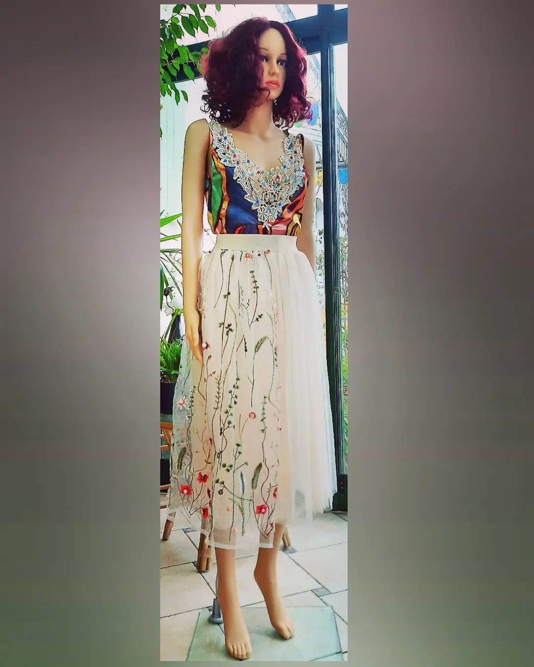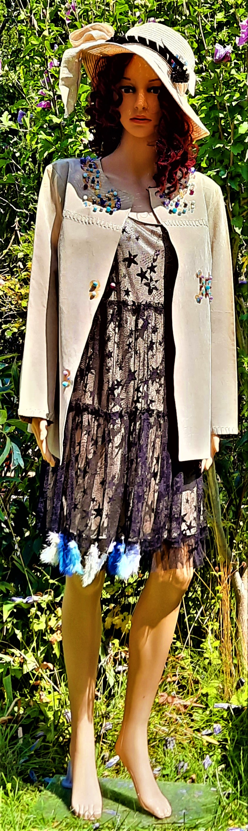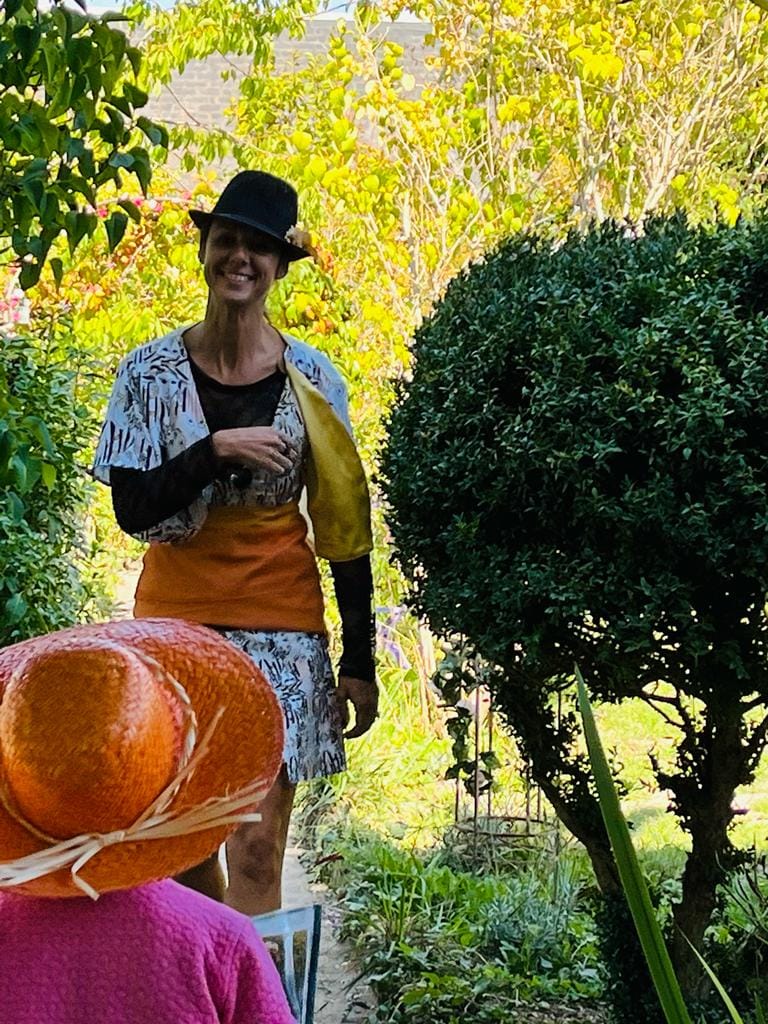 Ci-dessous, les vêtements portés par les mannequins sont en taille 36/38/40/42. Vous pouvez venir les essayer à l’atelier et les emporter si le cœur vous en dit ! Location possible pour des occasions festives ; me contacter par tél. ou par le site pour avoir de plus amples informations. Merci.