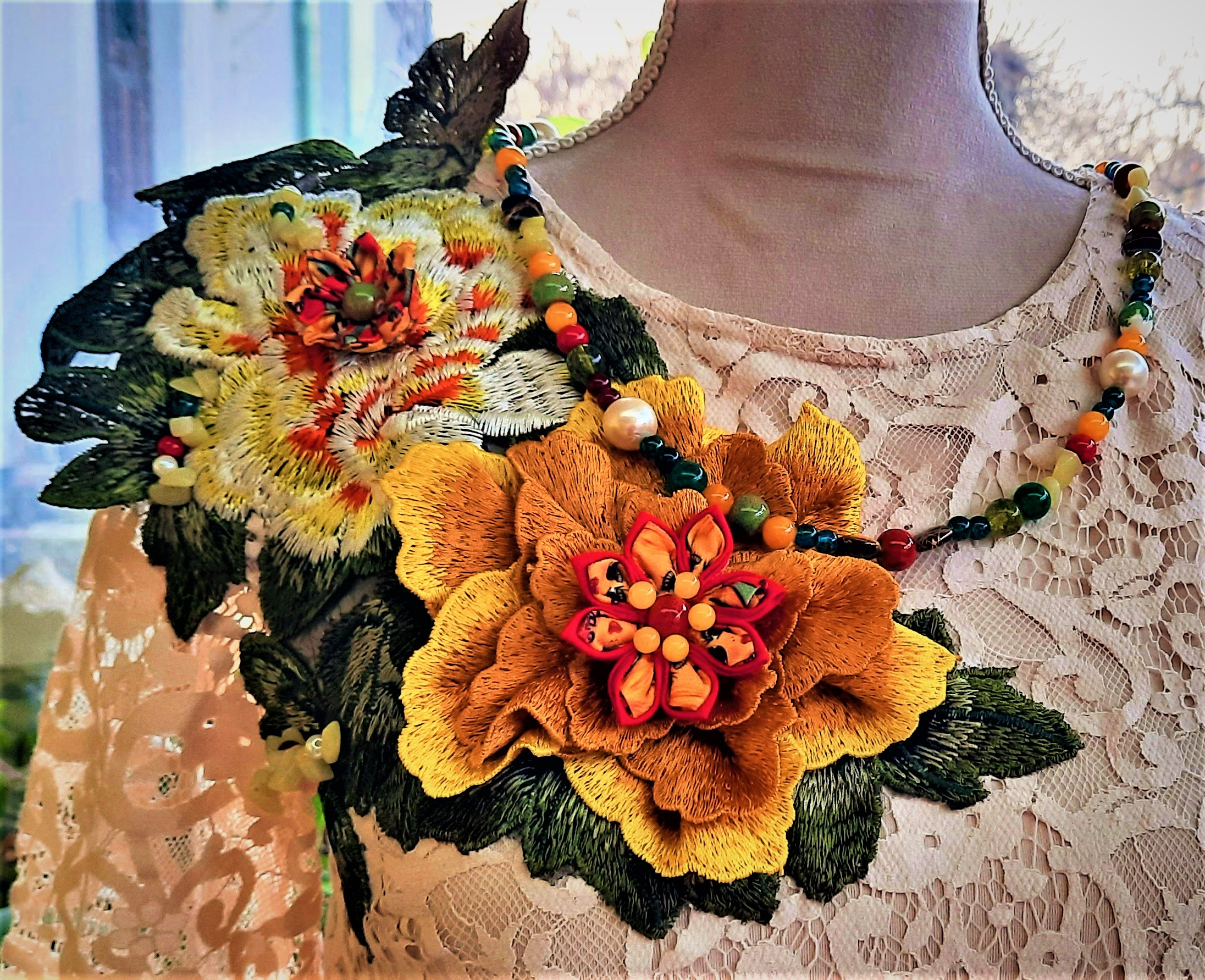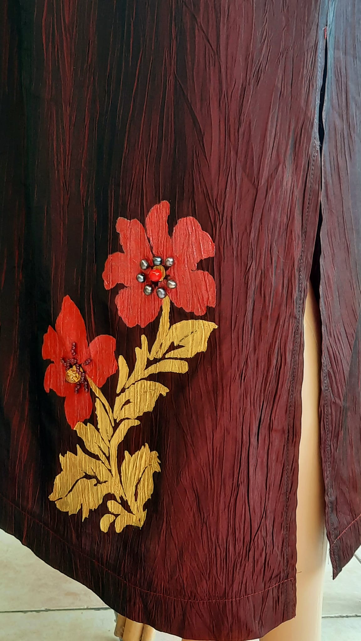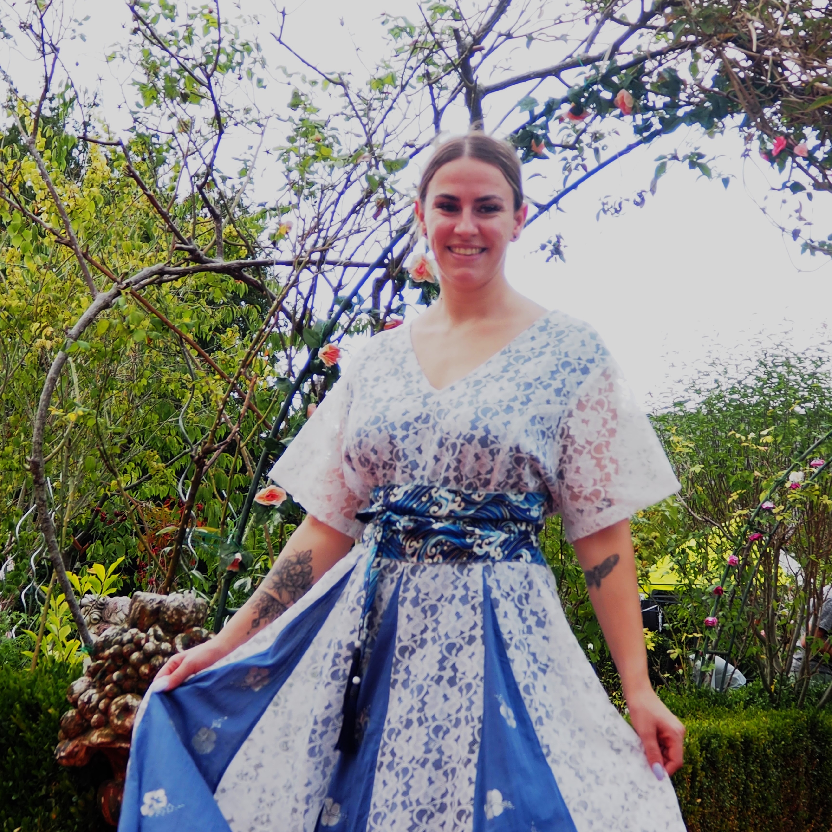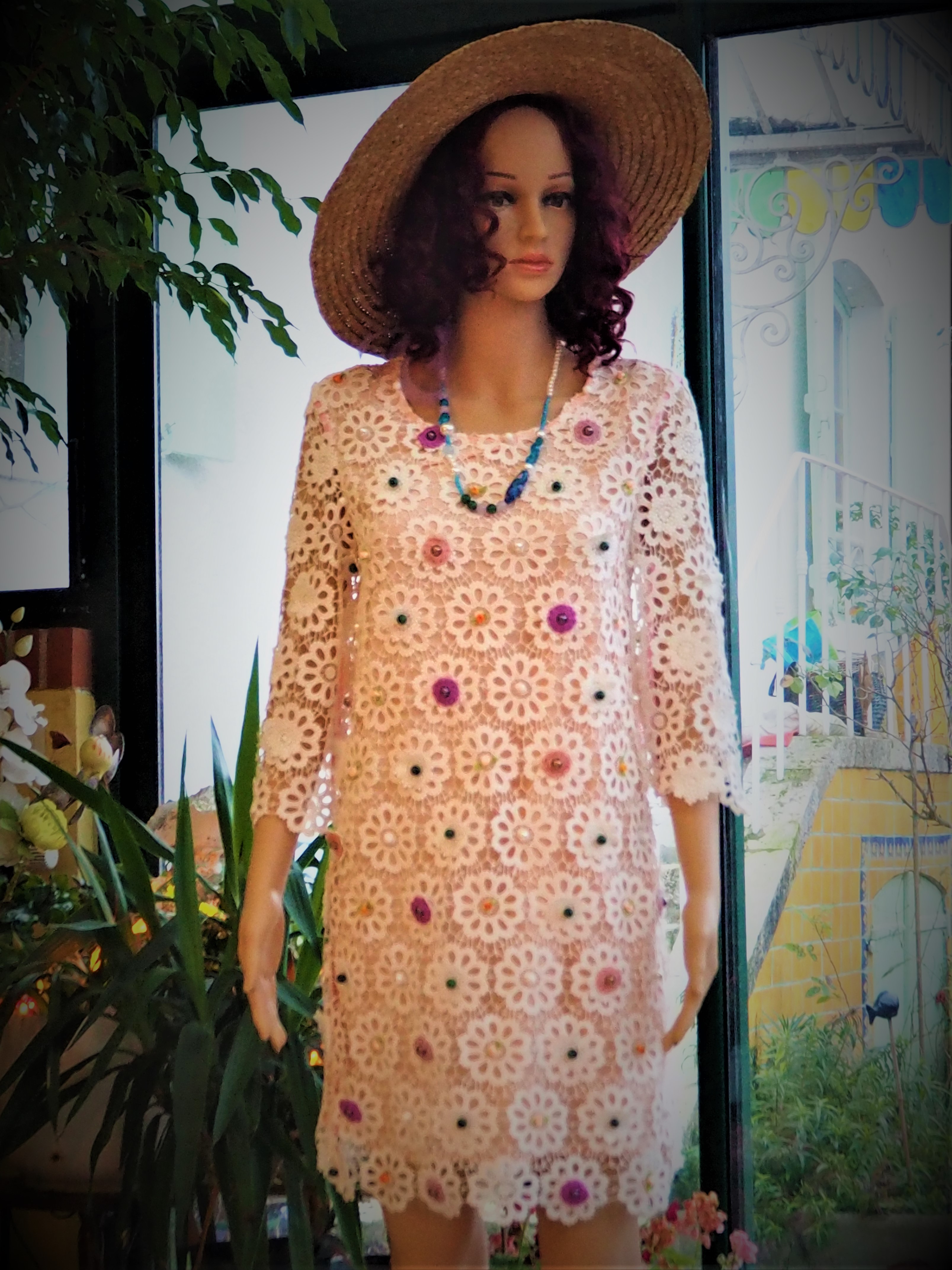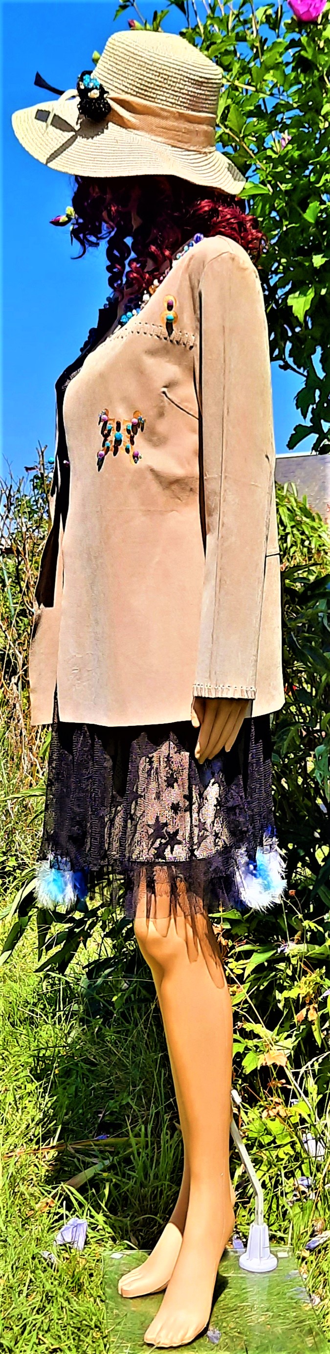 Ci-dessous, les vêtements portés par les mannequins sont en taille 36/38/40/42. Vous pouvez venir les essayer à l’atelier et les emporter si le cœur vous en dit ! Location possible pour des occasions festives ; me contacter par tél. ou par le site pour avoir de plus amples informations. Merci.