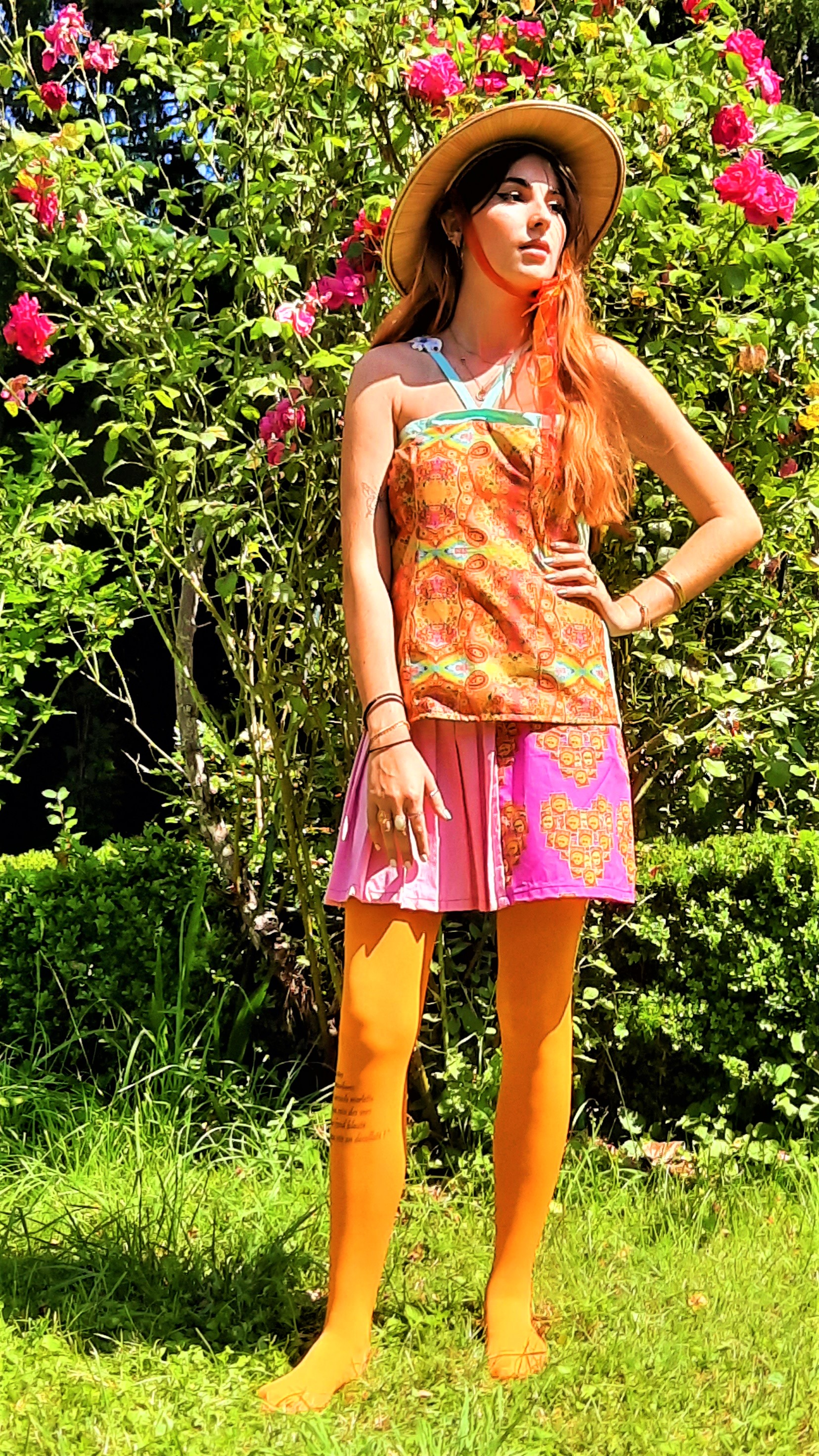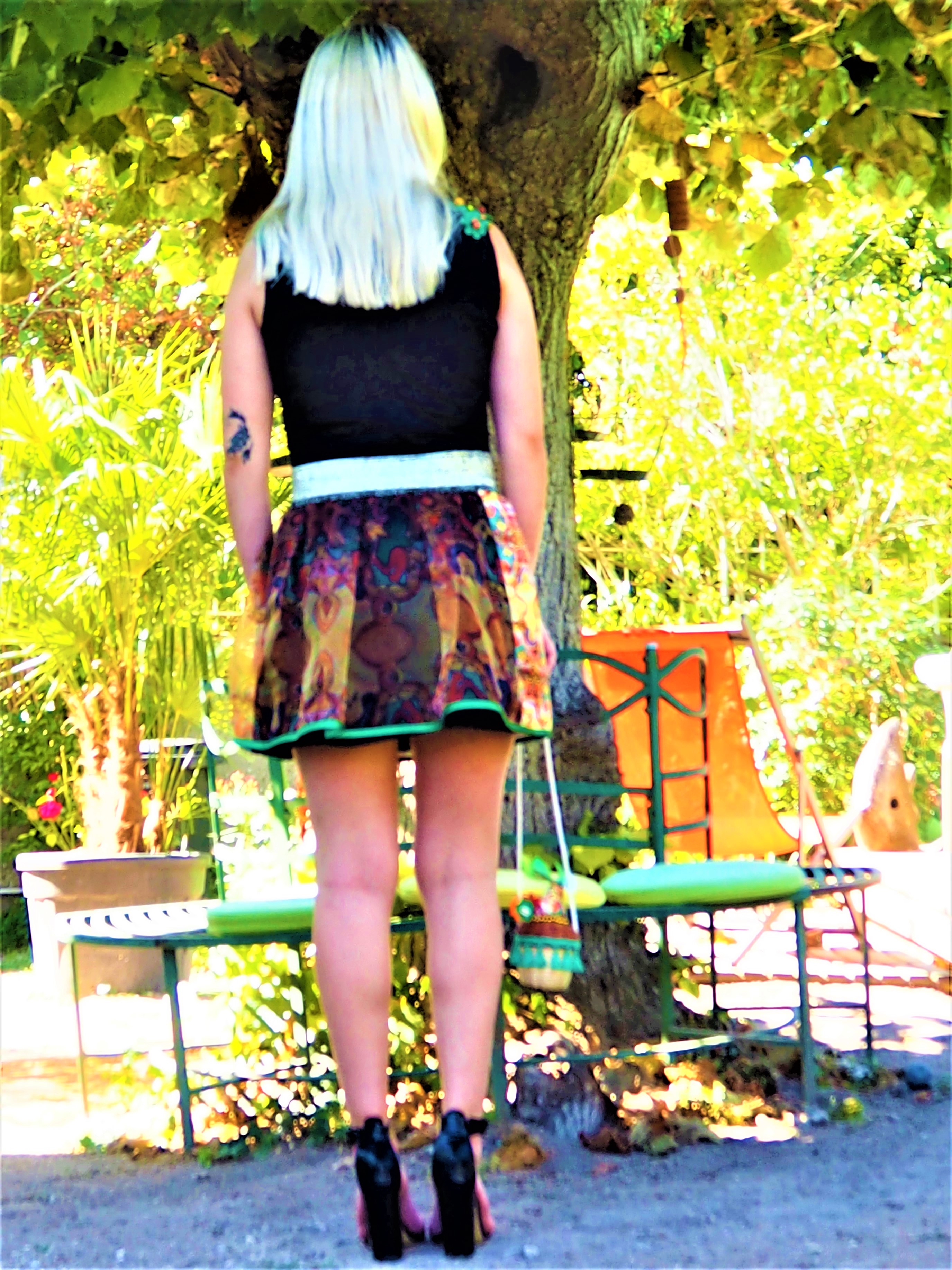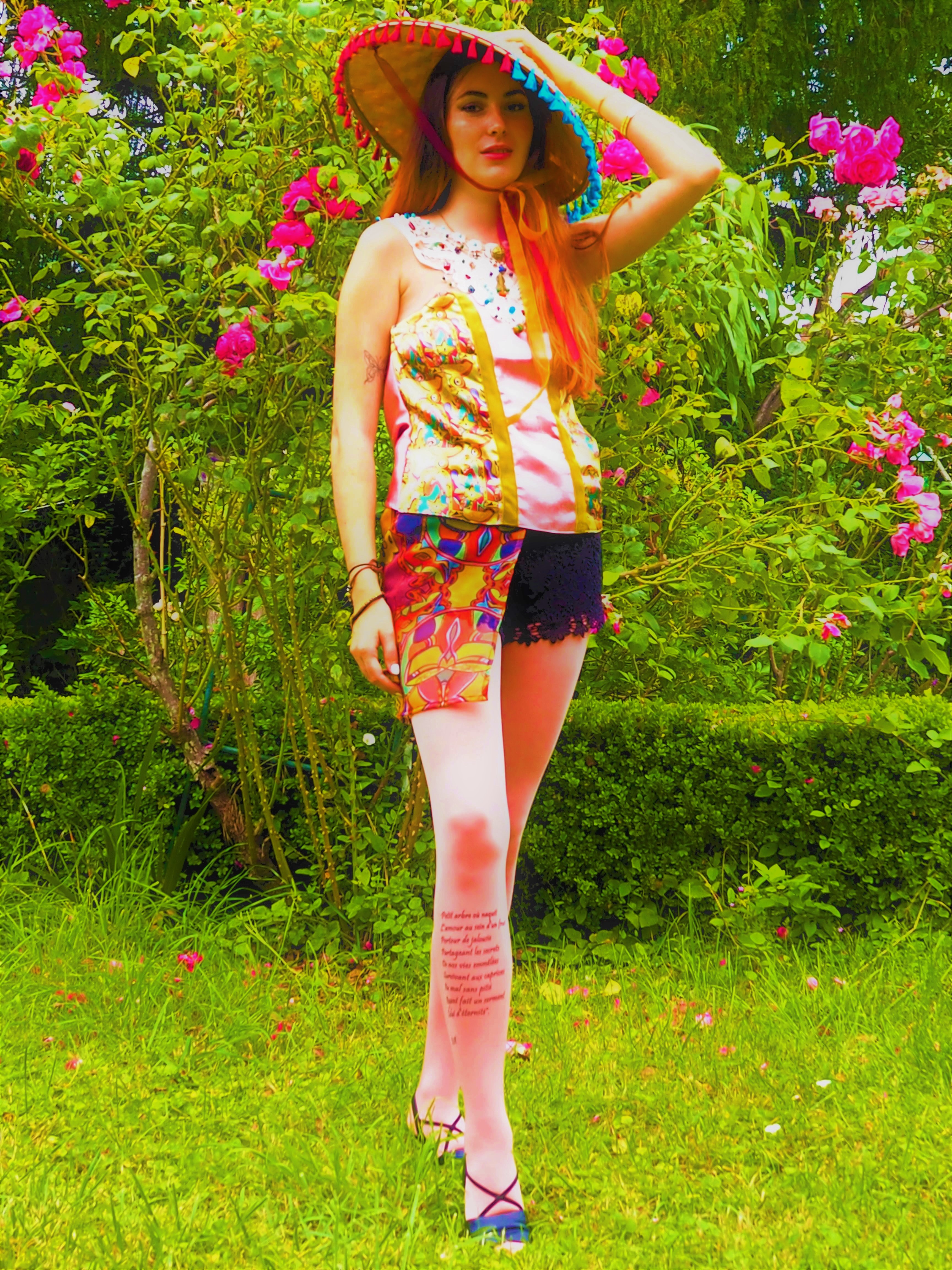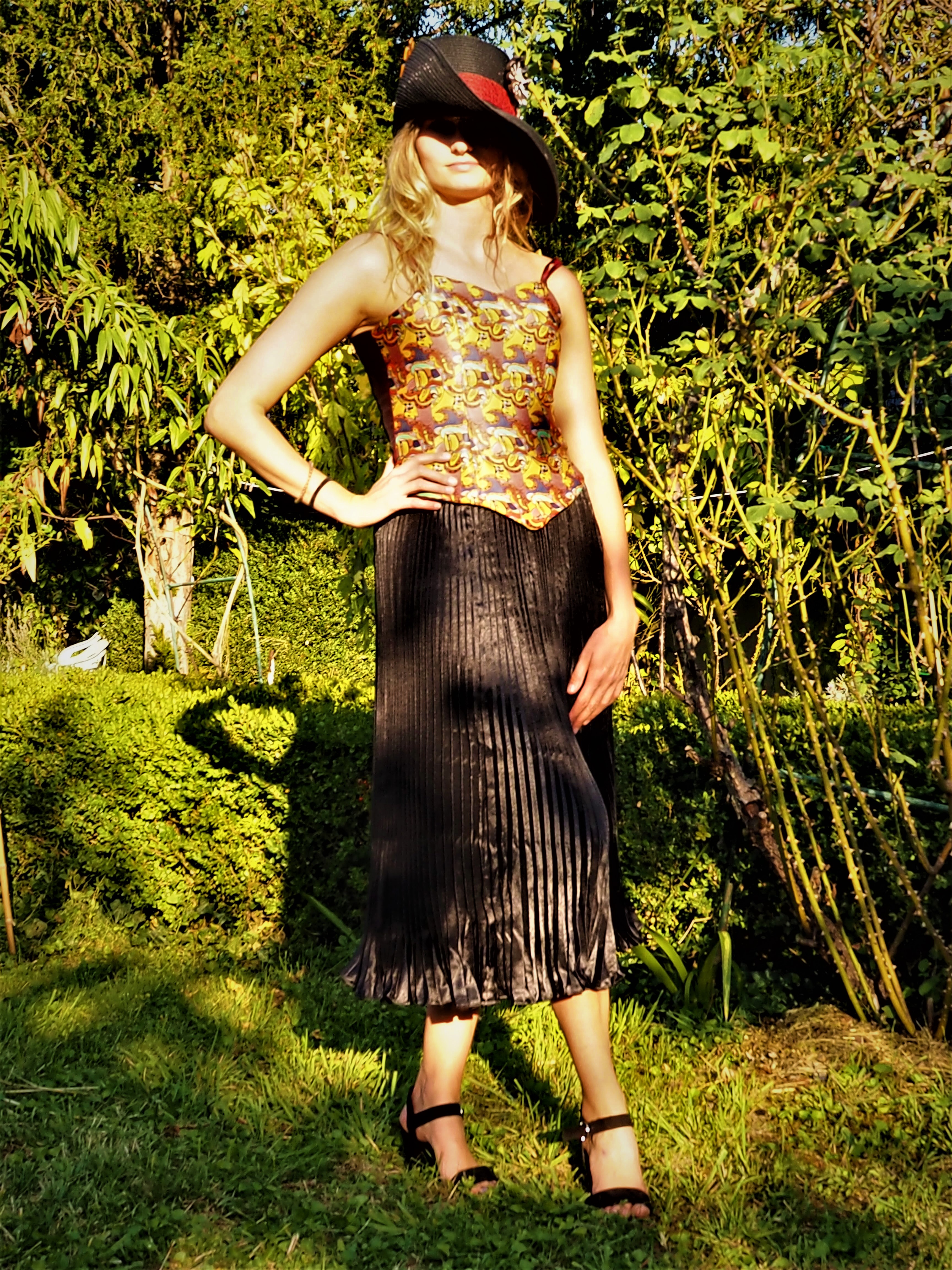 Baroque est un style plus élégant et reste à la portée de toutes les femmes. Imprimés originaux et uniques sur tissus de soie, de satin, de voile, de coton satiné. L’élégance d’un bustier, d’une jupe simple ou d’une robe mettra votre silhouette en valeur pour des occasions multiples le jour ou la nuit. Lavage à la main 30° maximum, à froid ou à sec. Des accessoires peuvent accompagner la tenue. Chapeaux, tatouages, gants, collants, bijoux. (Photos : mannequins Léa M. Victoria L.R., Aurélie W., Océane M. et Maryline V. cliente et Carine-Anne N.G).