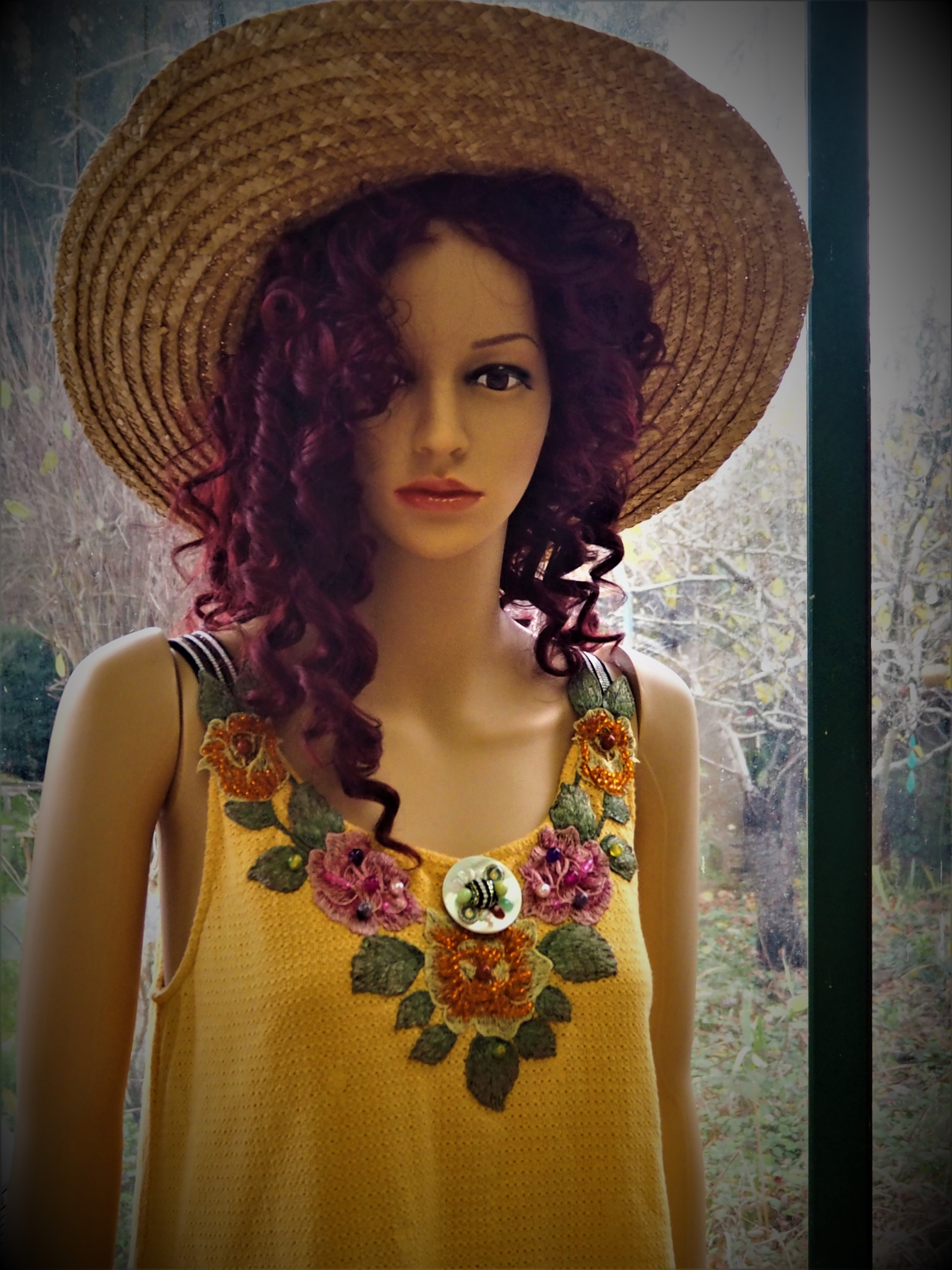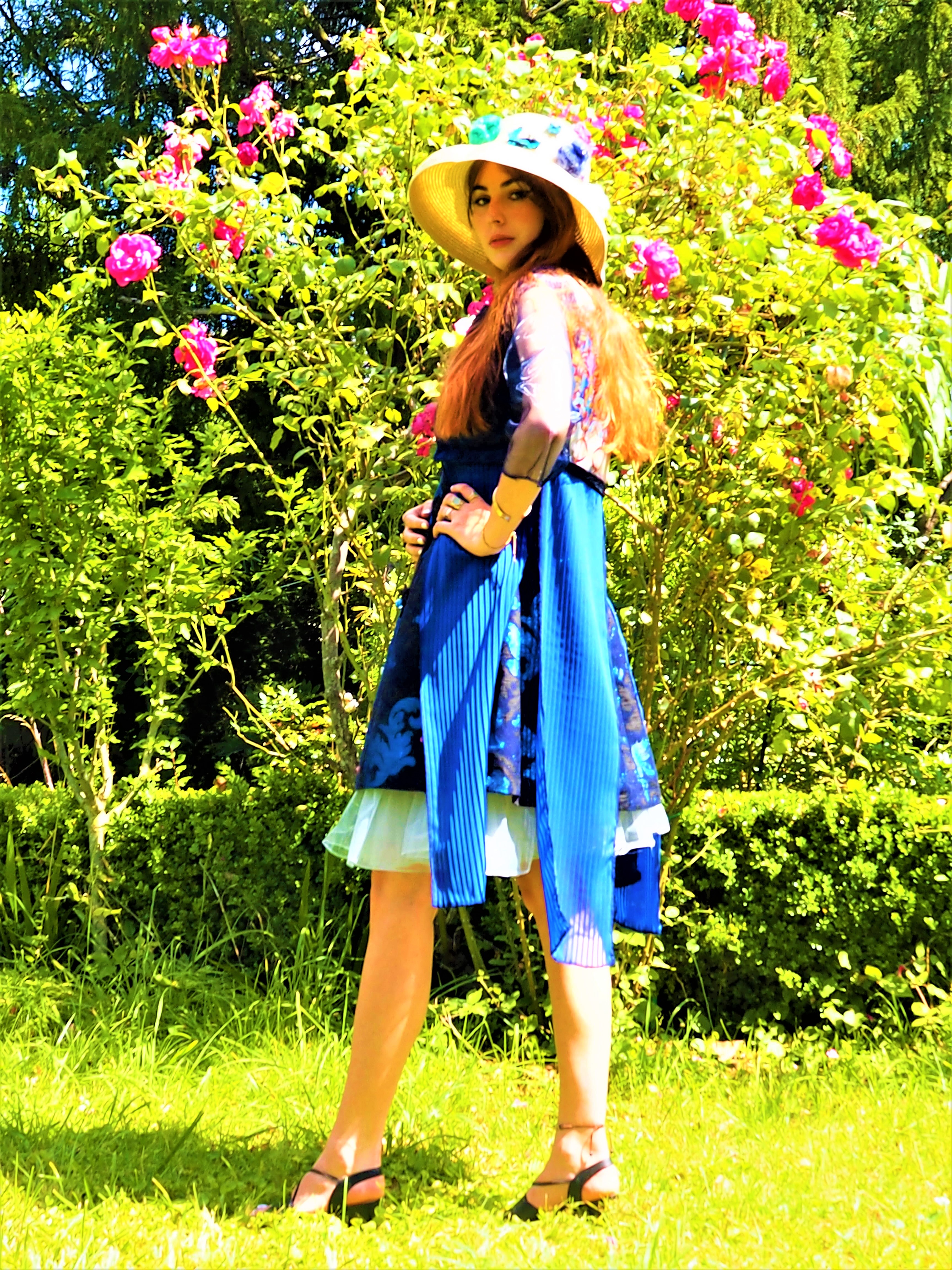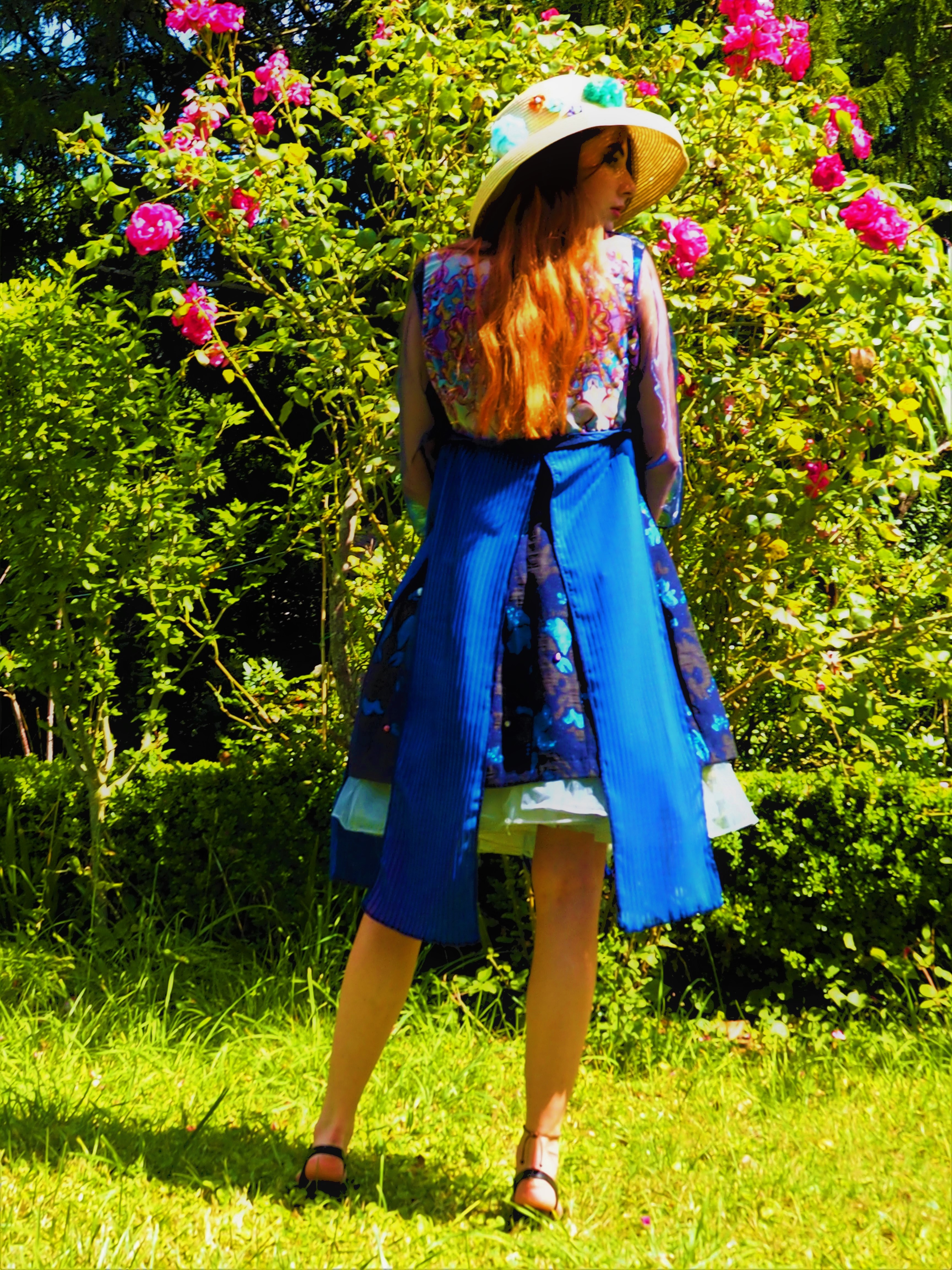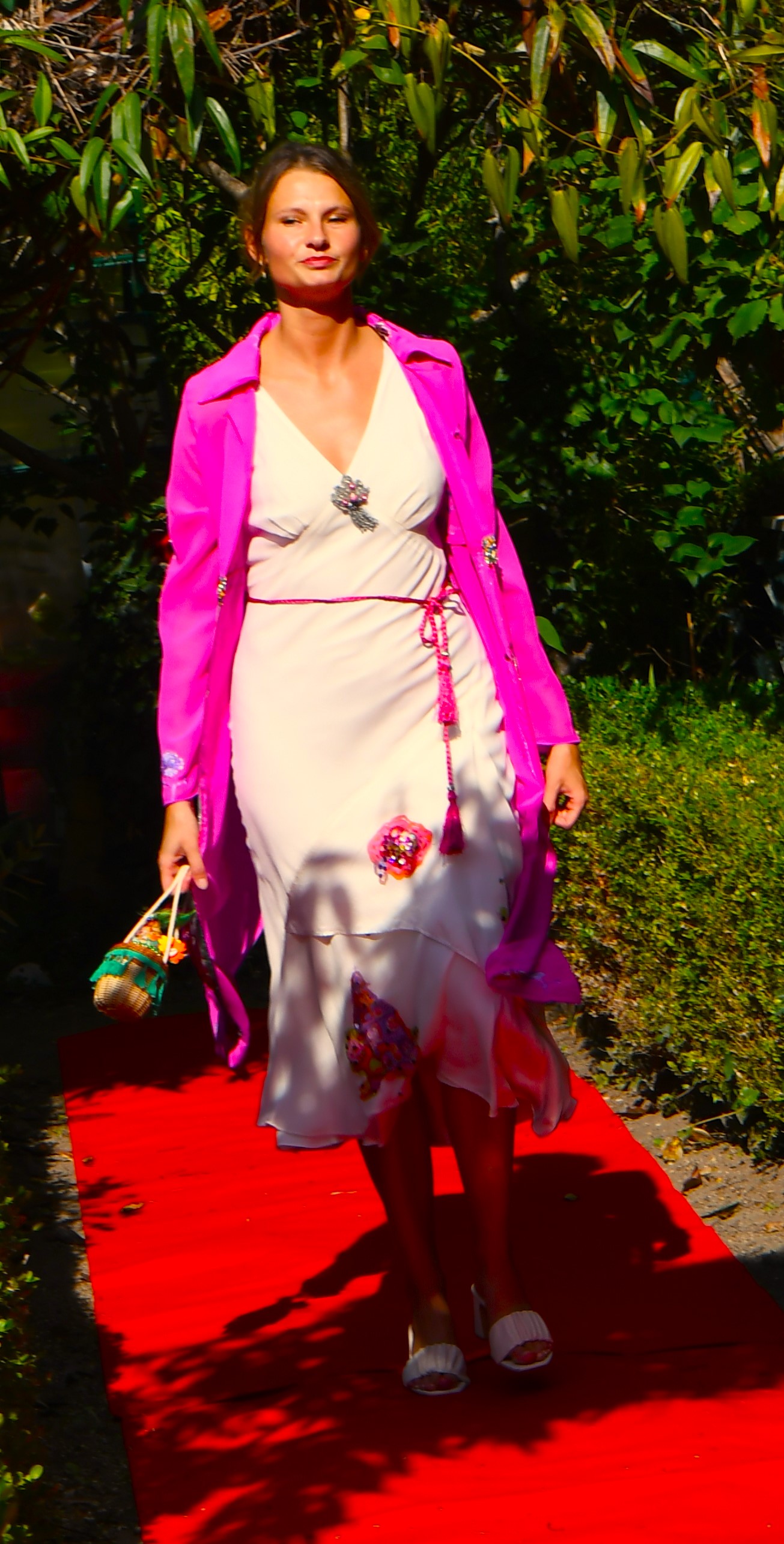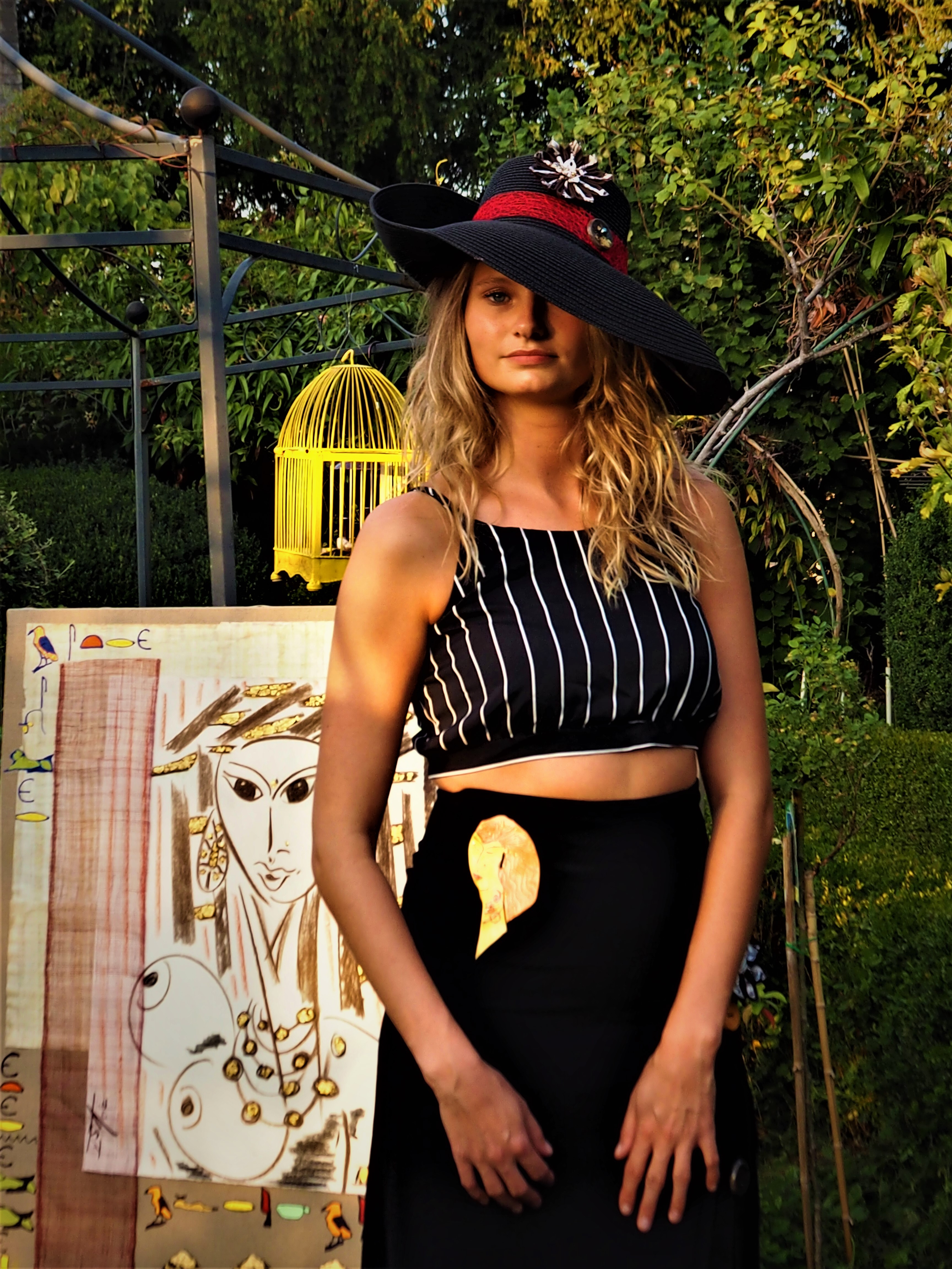 Comment ne pas aimer les jardins ! Les fleurs, les végétaux et leurs variétés. Je suis une artiste et je compose également des paysages dans la peinture mais je vis dans un jardin que j’ai composé avec amour et patience. La relation au vestimentaire est un lien important puisque les tissus naturels sont faits de fibres voire même de poils d’animaux. J’ai donc entrepris de faire des modèles avec cet esprit de jardinière pour composer des jardins poétiques différents sur le corps féminin. Vous porterez un peu de nature sur vous grâce aux créations stylisés d’Art&Style. Vous trouverez également de petits ensembles 2 ou 3 en 1 pour transformer votre silhouette à différents moments de la journée. Bijoux : pendentifs et bague « oiseau ». Lavage à la main à froid, 30° maxi. ou pressing à sec. Etendre à plat ou sur un cintre à épaules larges. (Mannequins : Léa M., Victoria L., Océane M. et Carine-Anne N.G).
