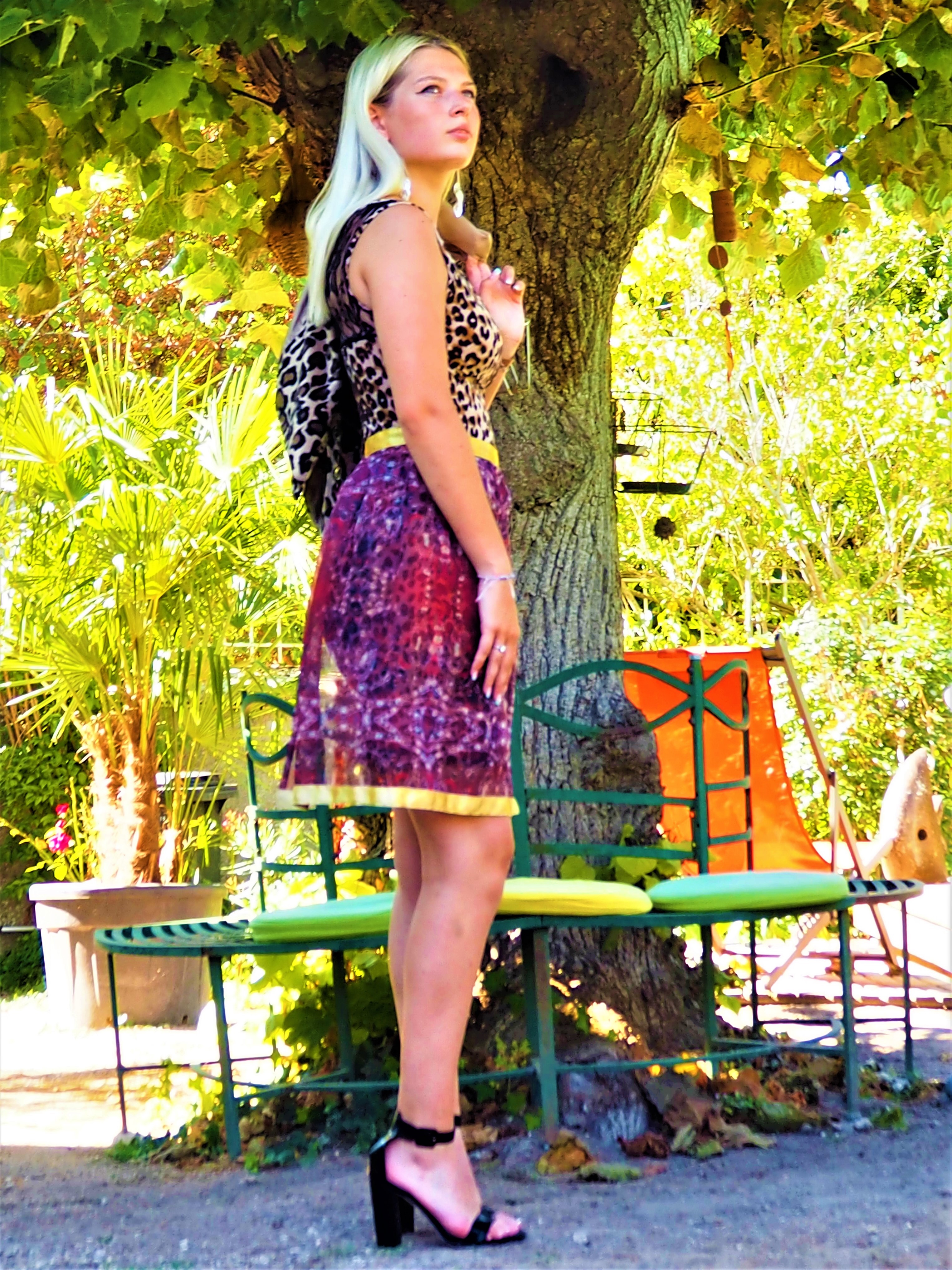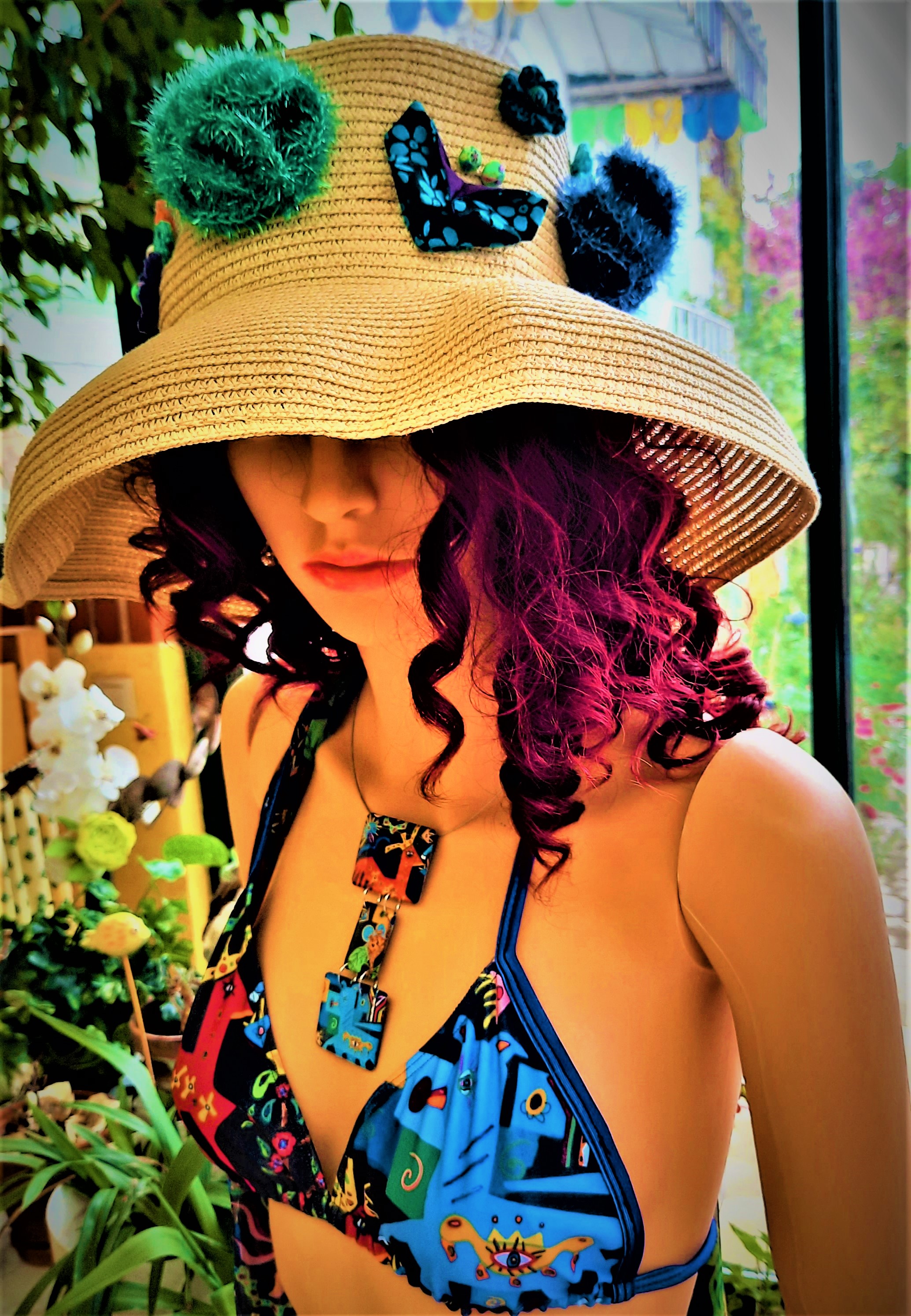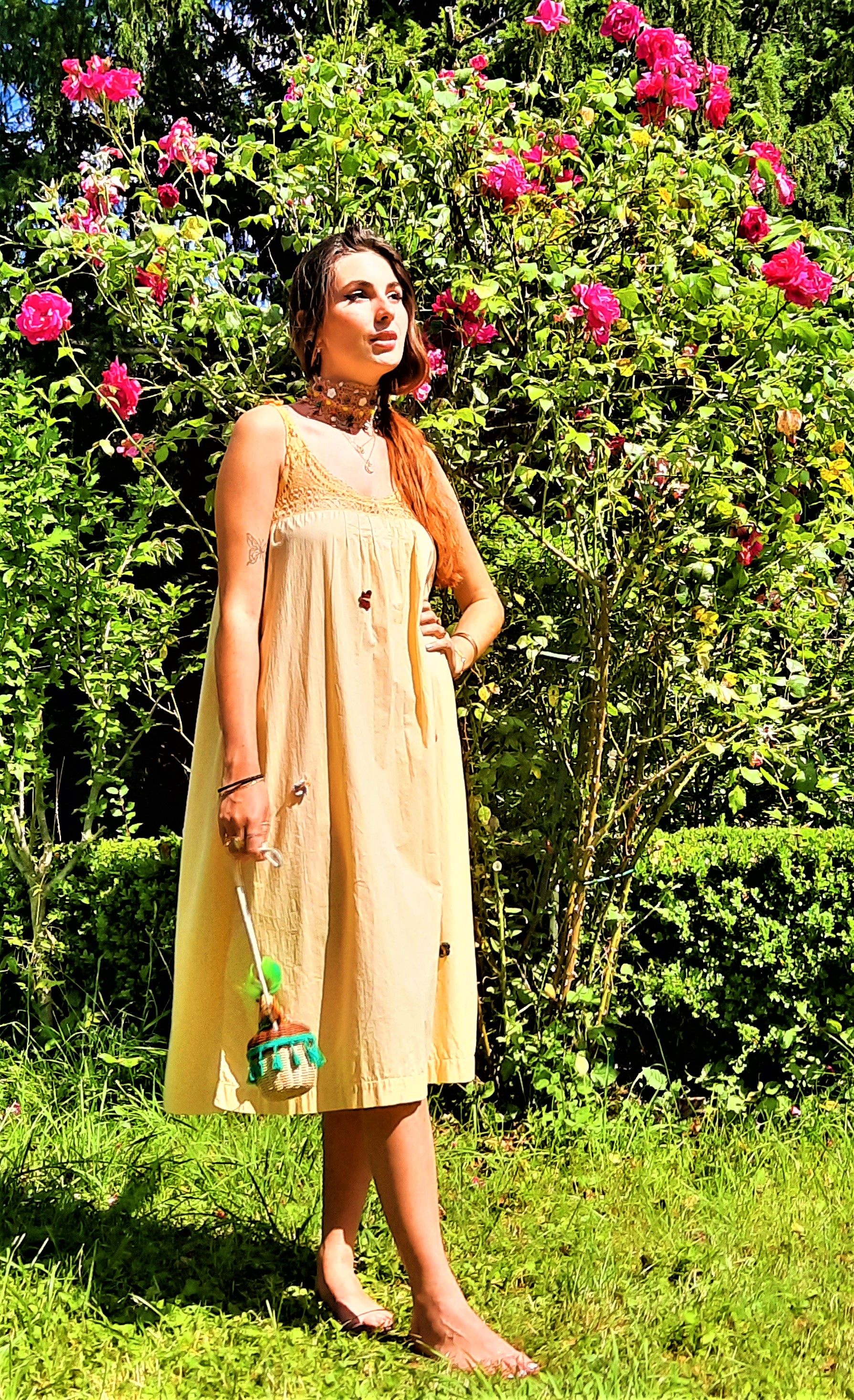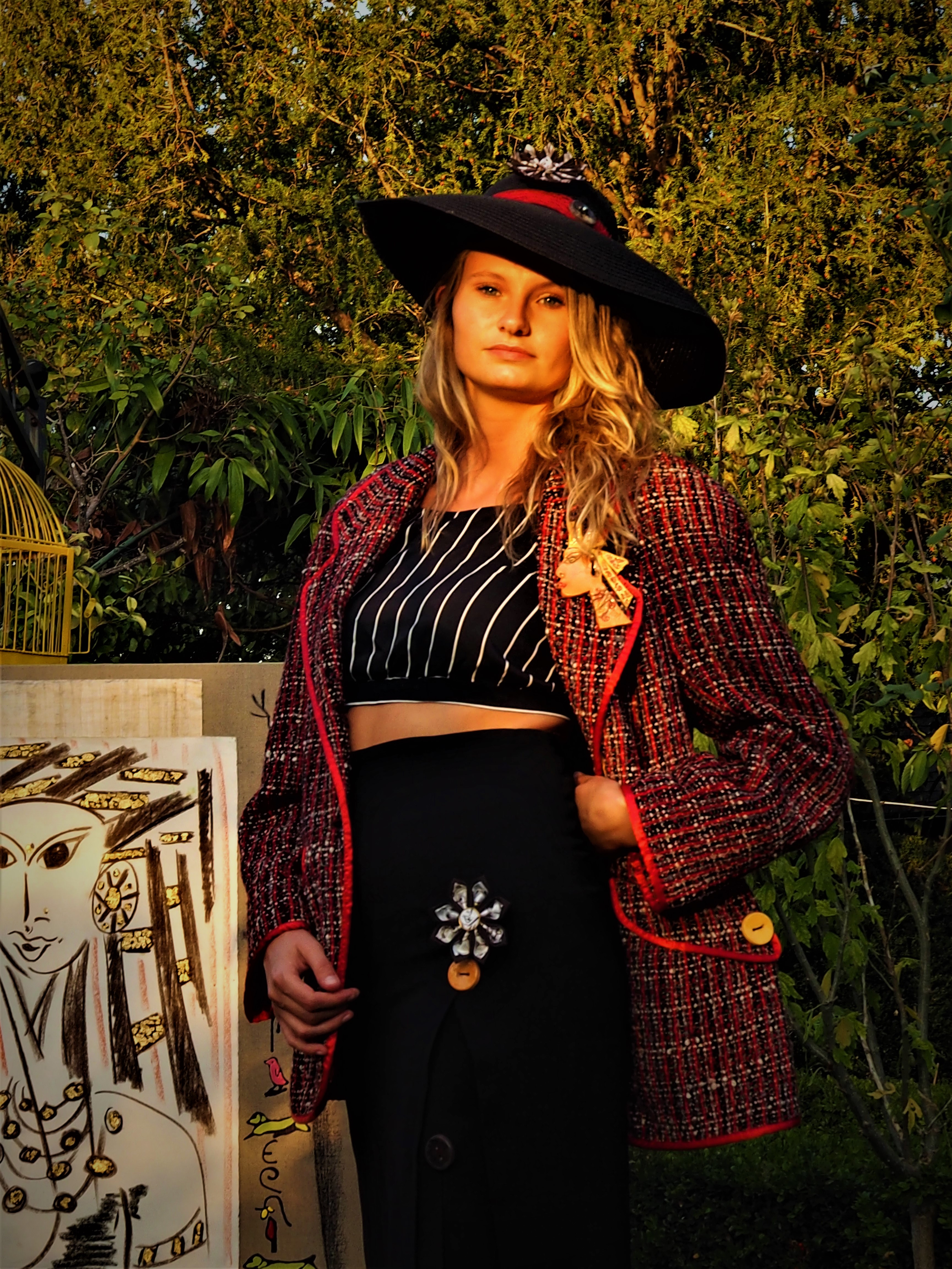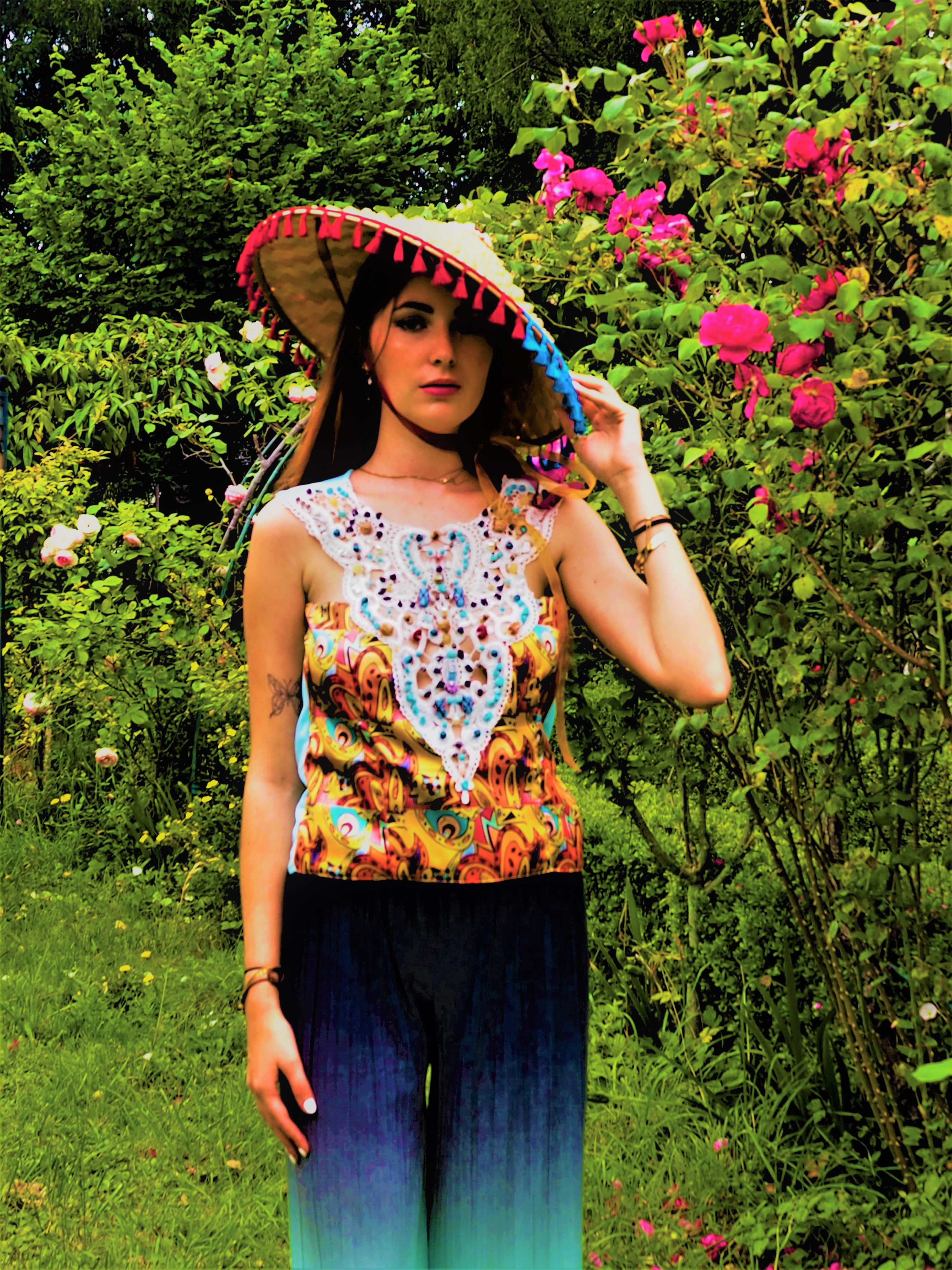 Comment ne pas aimer les jardins ! Les fleurs, les végétaux et leurs variétés. Je suis une artiste et je compose également des paysages dans la peinture mais je vis dans un jardin que j’ai composé avec amour et patience. La relation au vestimentaire est un lien important puisque les tissus naturels sont faits de fibres voire même de poils d’animaux. J’ai donc entrepris de faire des modèles avec cet esprit de jardinière pour composer des jardins poétiques différents sur le corps féminin. Vous porterez un peu de nature sur vous grâce aux créations stylisés d’Art&Style. Vous trouverez également de petits ensembles 2 ou 3 en 1 pour transformer votre silhouette à différents moments de la journée. Bijoux : pendentifs et bague « oiseau ». Lavage à la main à froid, 30° maxi. ou pressing à sec. Etendre à plat ou sur un cintre à épaules larges. (Mannequins : Léa M., Victoria L., Océane M. et Carine-Anne N.G).