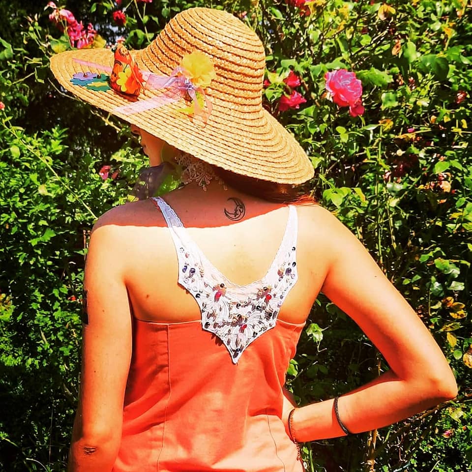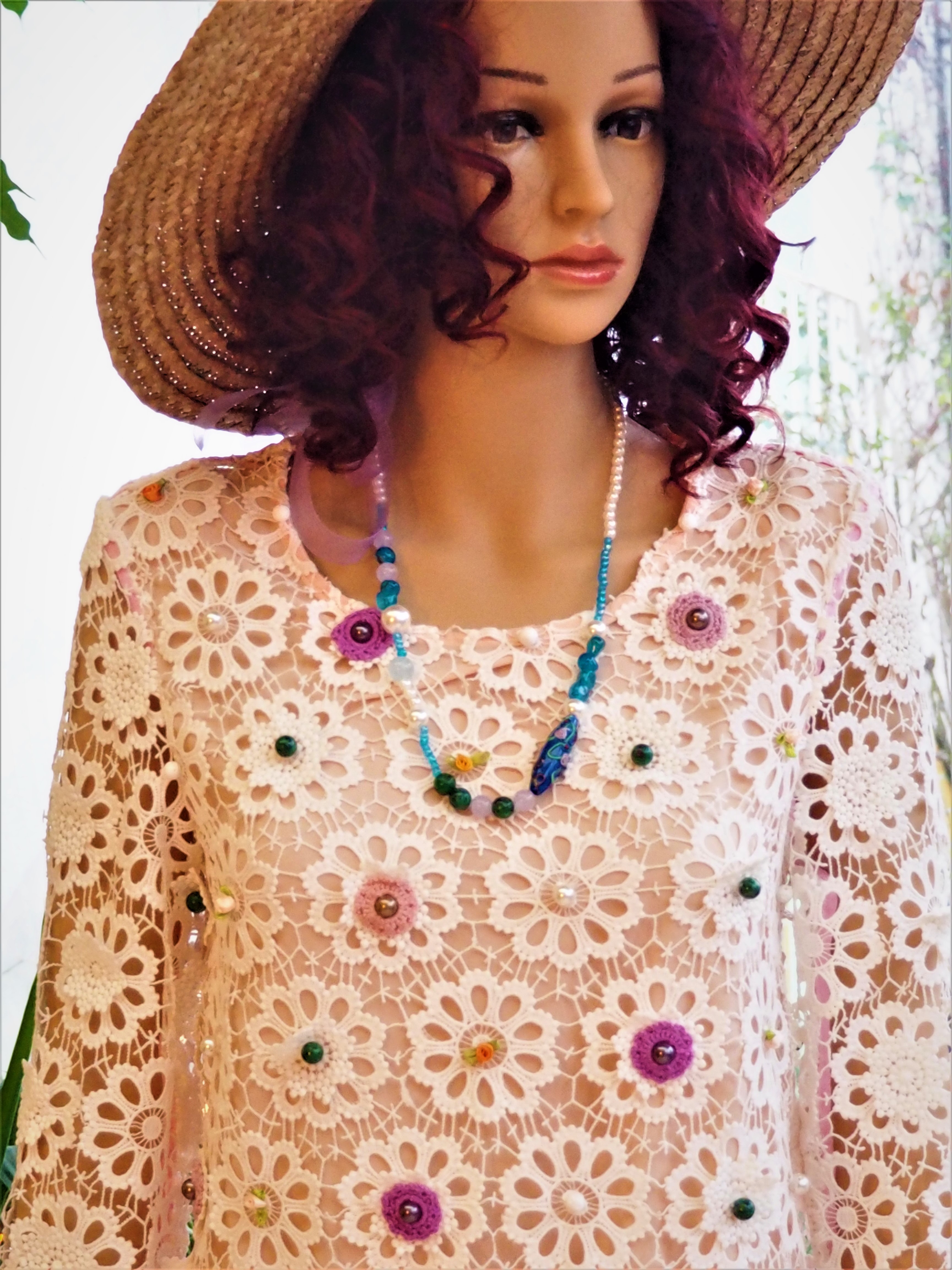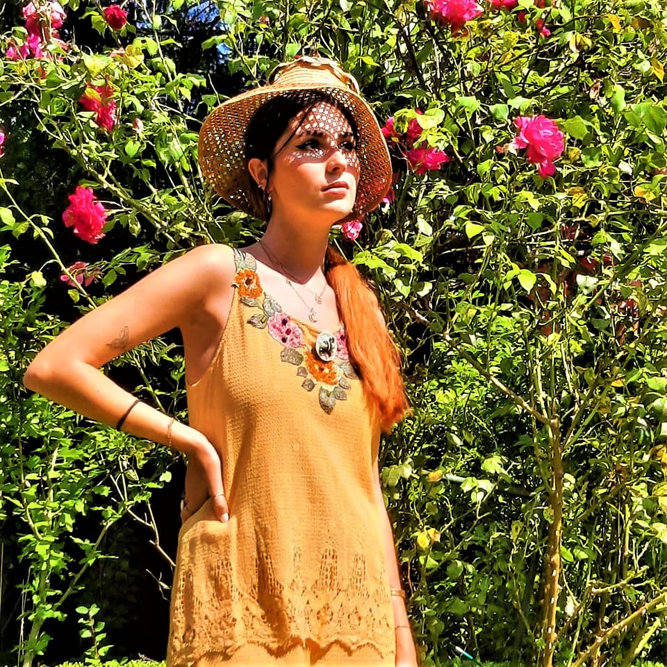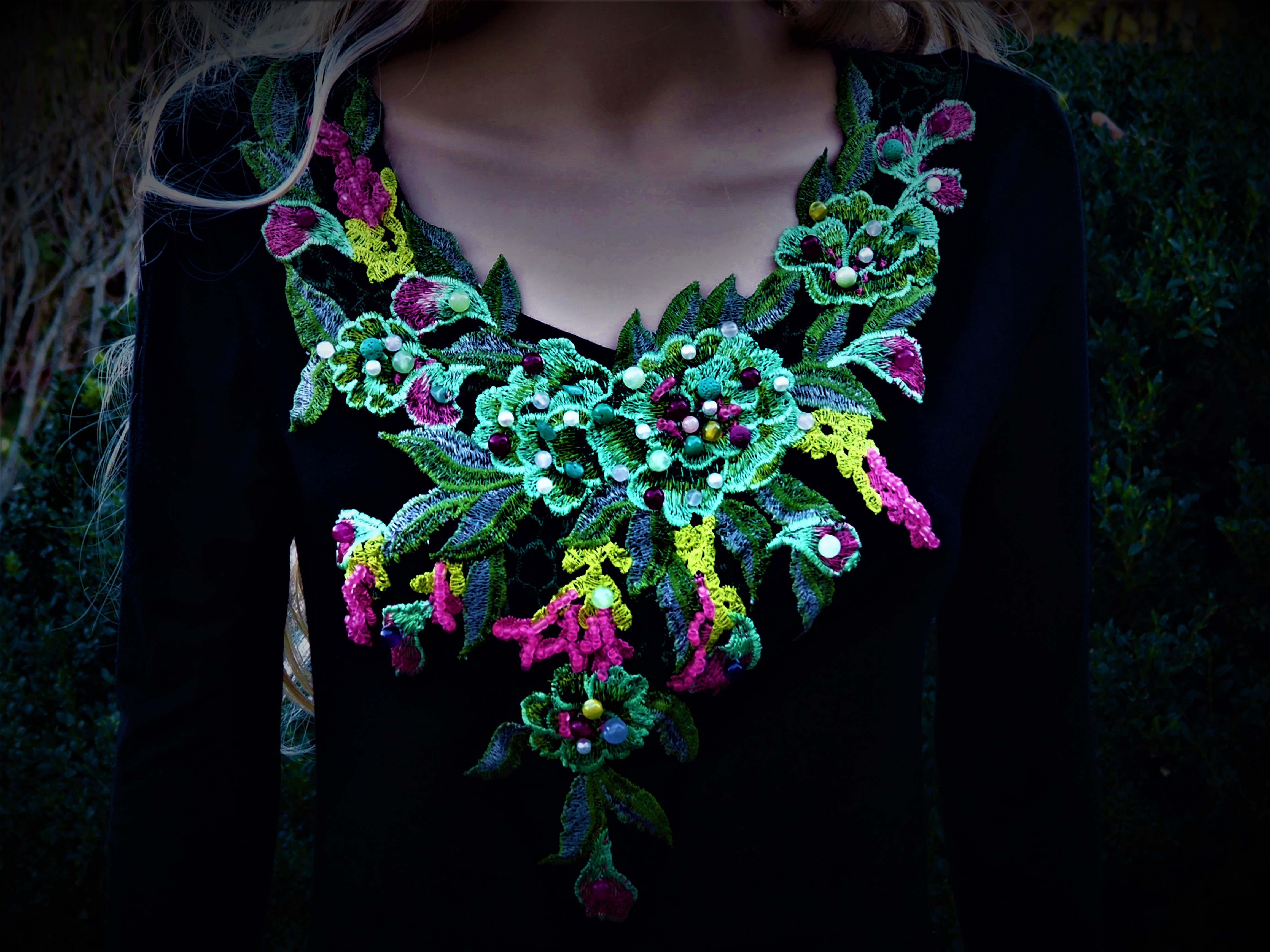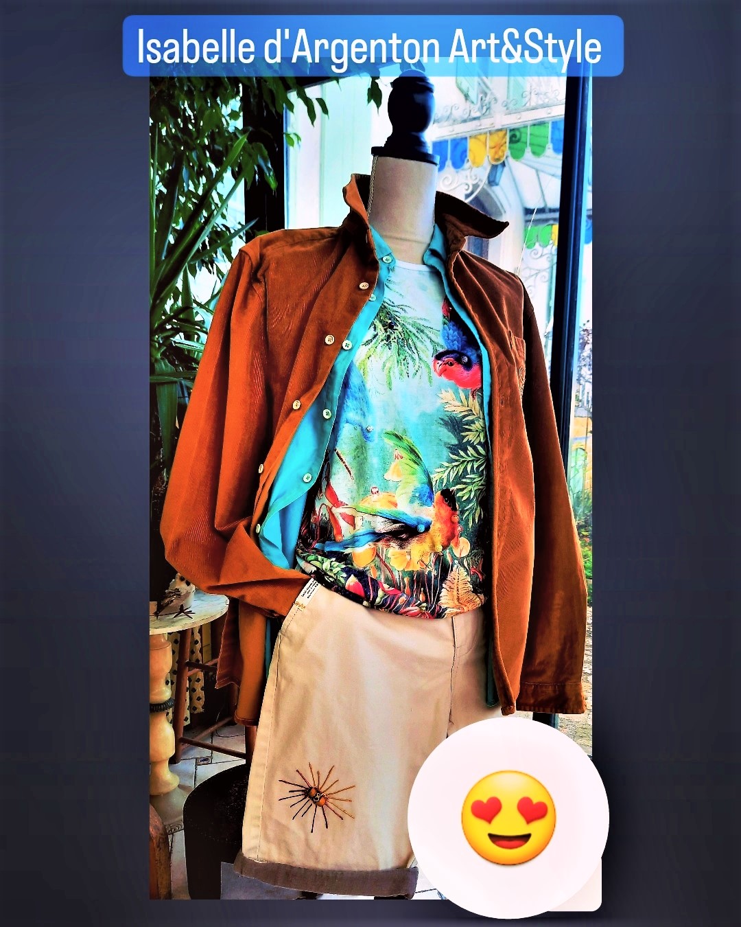 Comment ne pas aimer les jardins ! Les fleurs, les végétaux et leurs variétés. Je suis une artiste et je compose également des paysages dans la peinture mais je vis dans un jardin que j’ai composé avec amour et patience. La relation au vestimentaire est un lien important puisque les tissus naturels sont faits de fibres voire même de poils d’animaux. J’ai donc entrepris de faire des modèles avec cet esprit de jardinière pour composer des jardins poétiques différents sur le corps féminin. Vous porterez un peu de nature sur vous grâce aux créations stylisés d’Art&Style. Vous trouverez également de petits ensembles 2 ou 3 en 1 pour transformer votre silhouette à différents moments de la journée. Bijoux : pendentifs et bague « oiseau ». Lavage à la main à froid, 30° maxi. ou pressing à sec. Etendre à plat ou sur un cintre à épaules larges. (Mannequins : Léa M., Victoria L., Océane M. et Carine-Anne N.G).