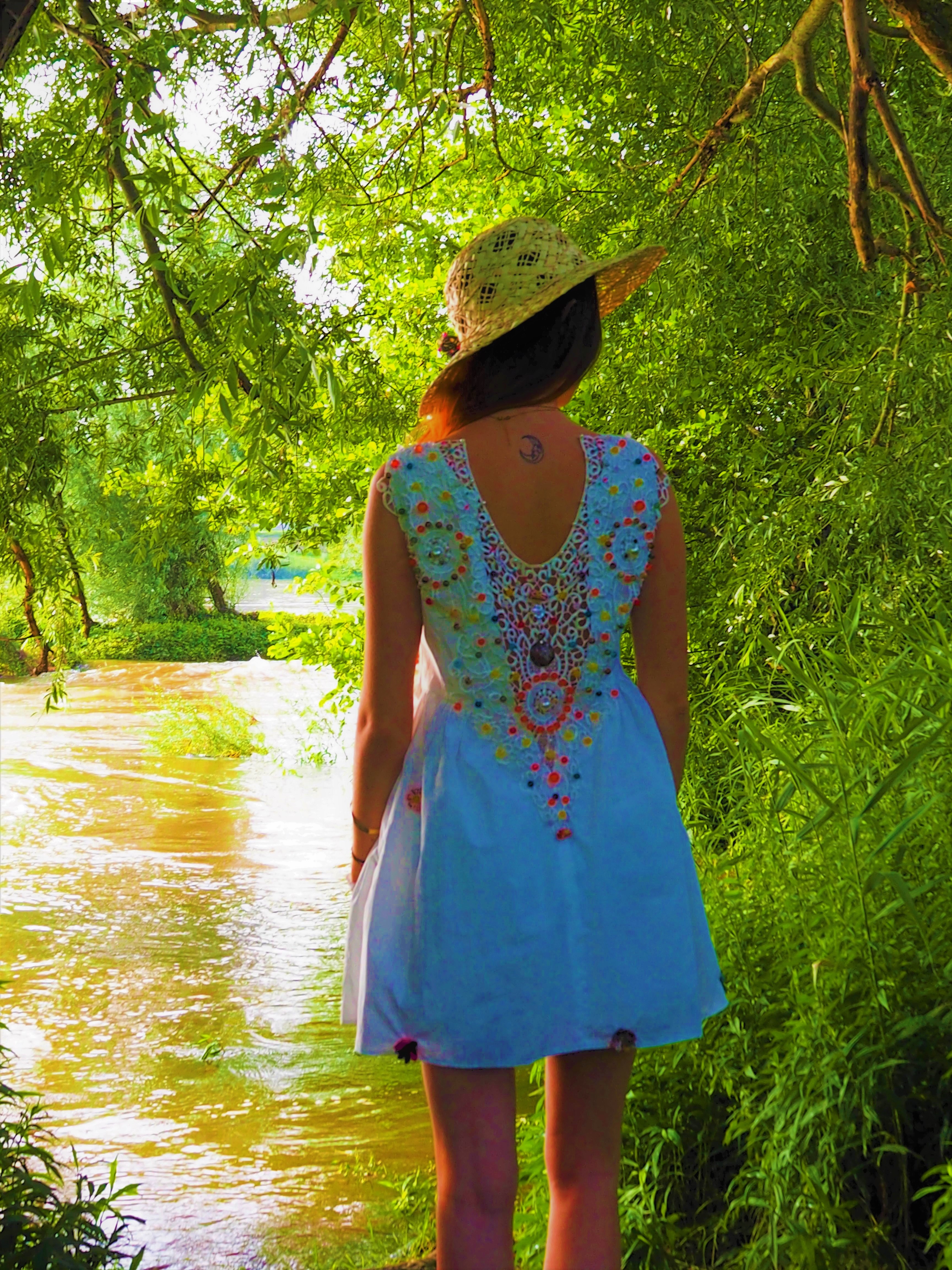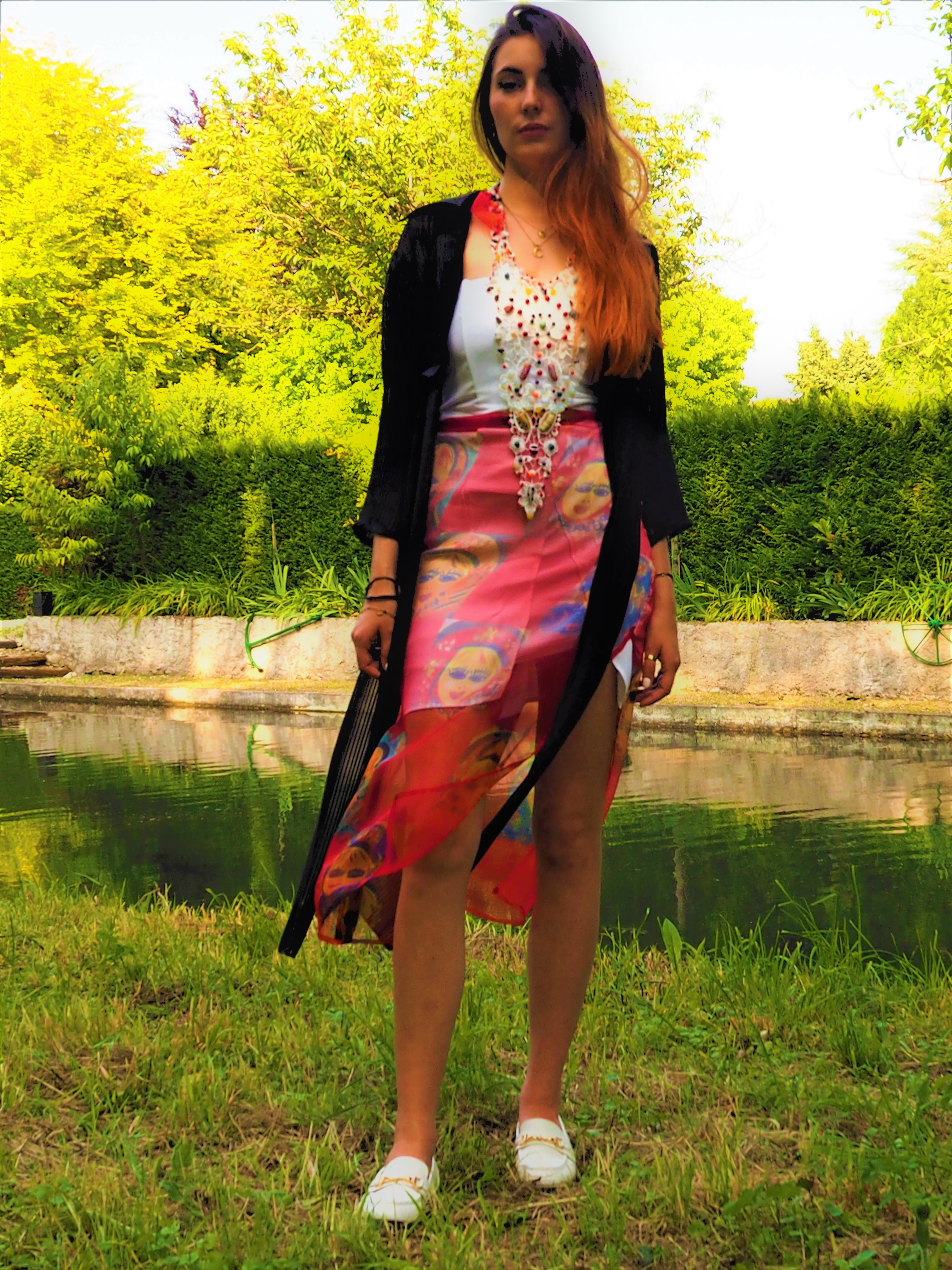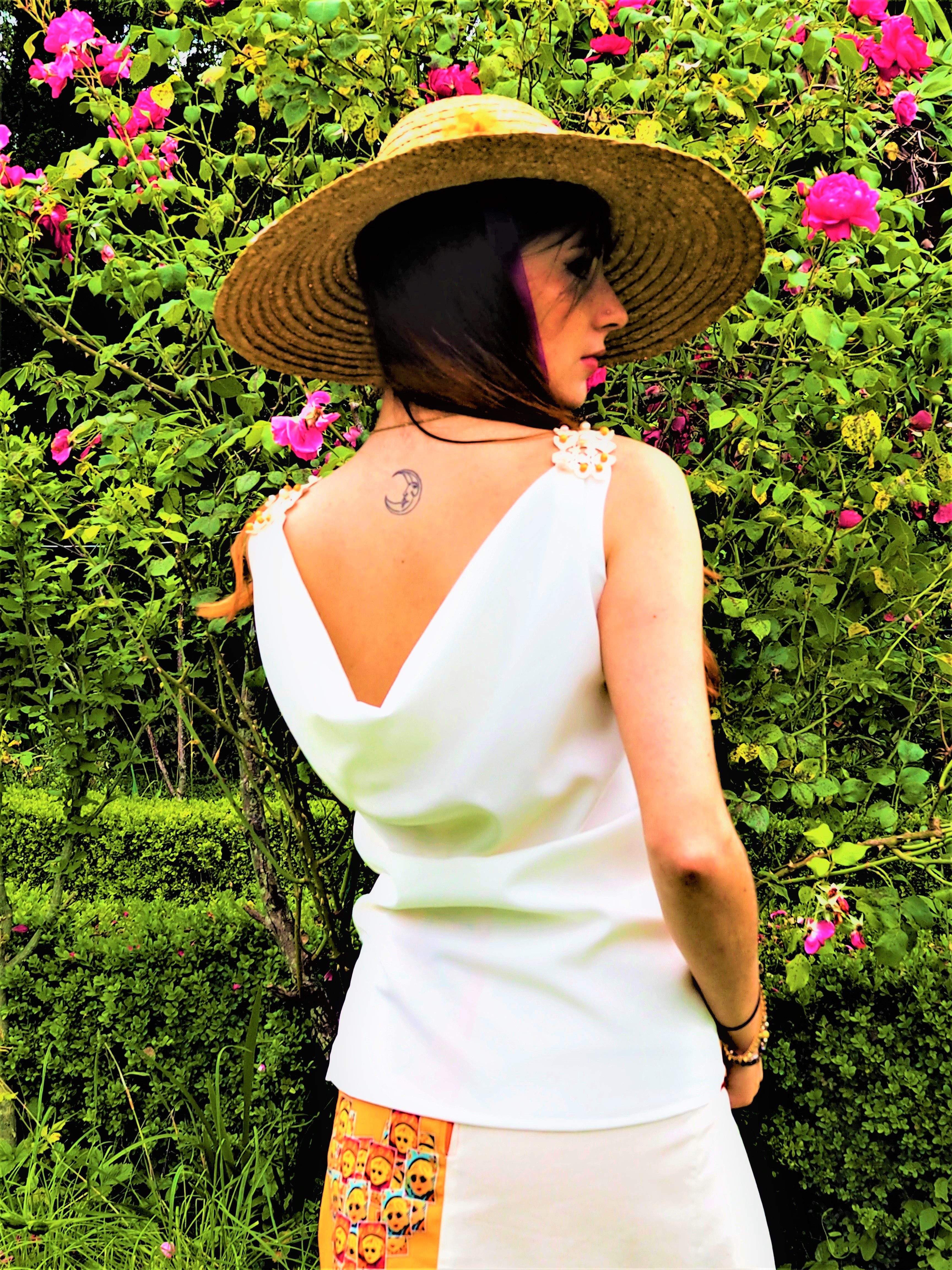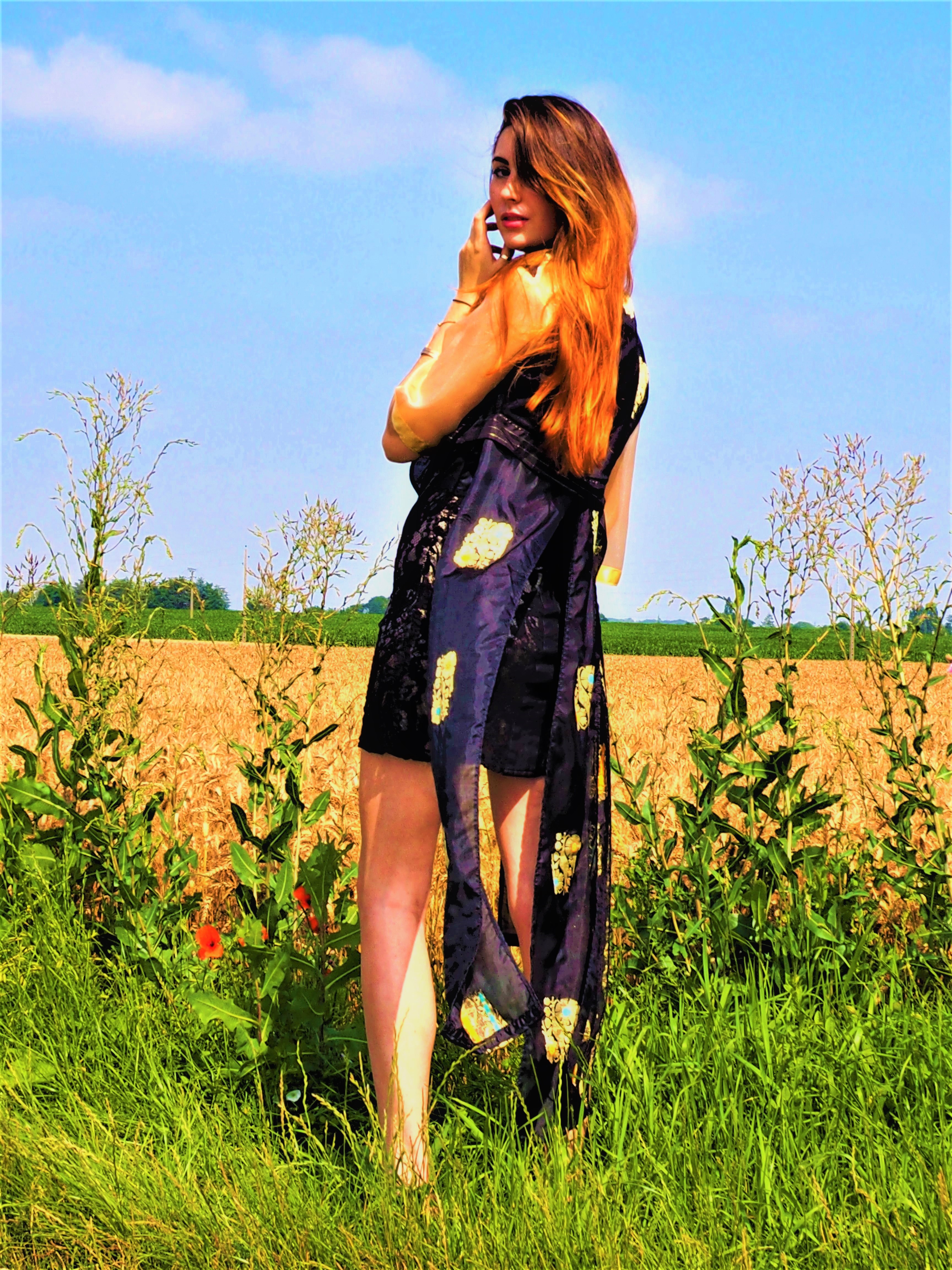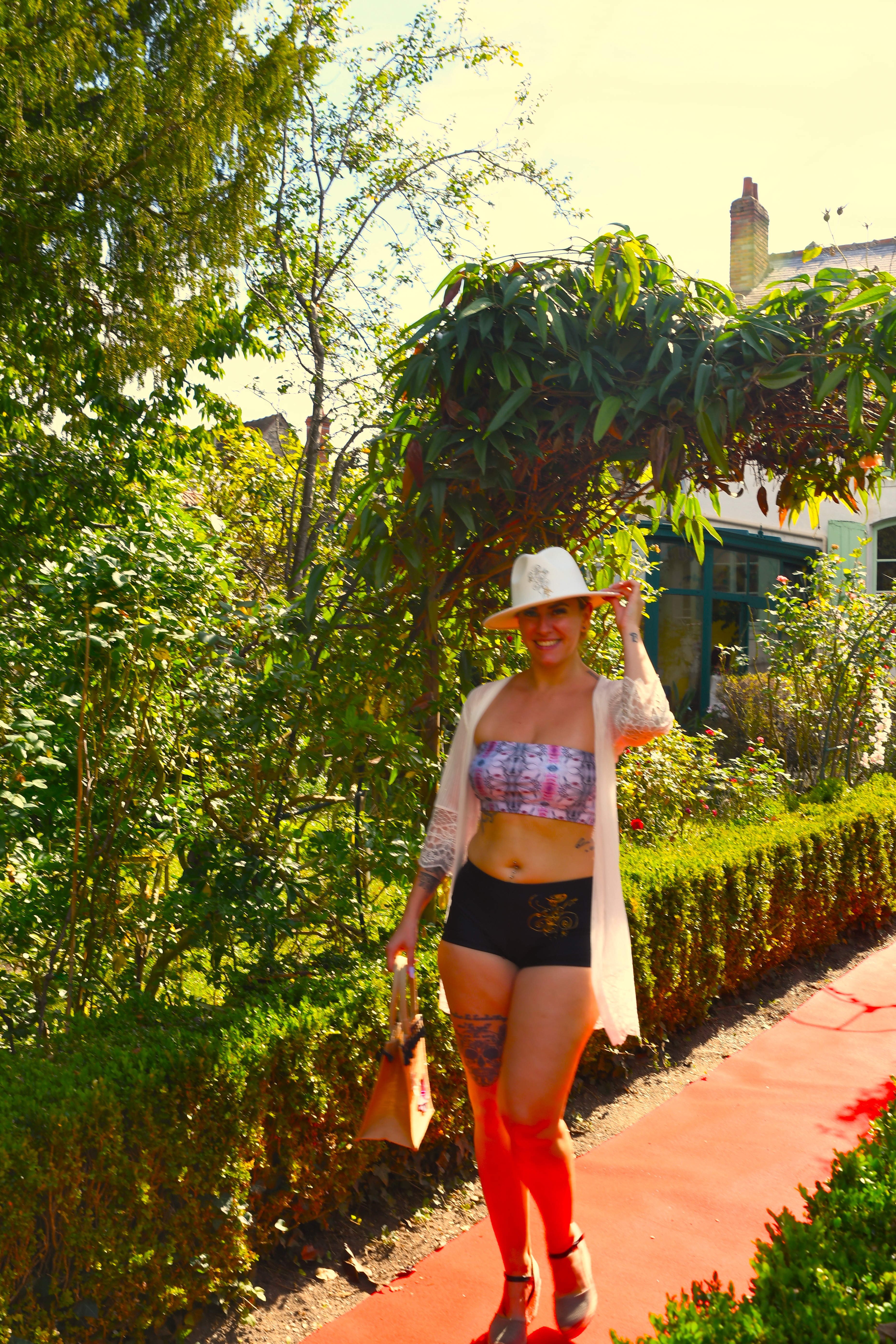 Comment ne pas aimer les jardins ! Les fleurs, les végétaux et leurs variétés. Je suis une artiste et je compose également des paysages dans la peinture mais je vis dans un jardin que j’ai composé avec amour et patience. La relation au vestimentaire est un lien important puisque les tissus naturels sont faits de fibres voire même de poils d’animaux. J’ai donc entrepris de faire des modèles avec cet esprit de jardinière pour composer des jardins poétiques différents sur le corps féminin. Vous porterez un peu de nature sur vous grâce aux créations stylisés d’Art&Style. Vous trouverez également de petits ensembles 2 ou 3 en 1 pour transformer votre silhouette à différents moments de la journée. Bijoux : pendentifs et bague « oiseau ». Lavage à la main à froid, 30° maxi. ou pressing à sec. Etendre à plat ou sur un cintre à épaules larges. (Mannequins : Léa M., Victoria L., Océane M. et Carine-Anne N.G).