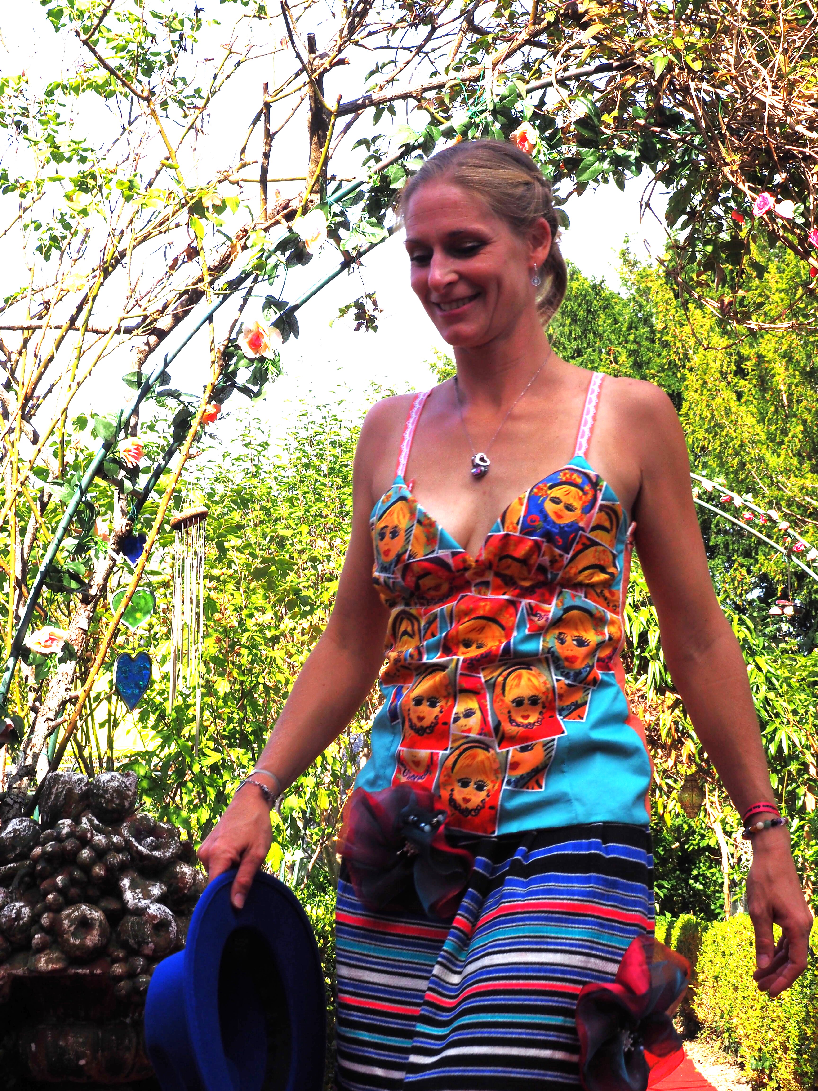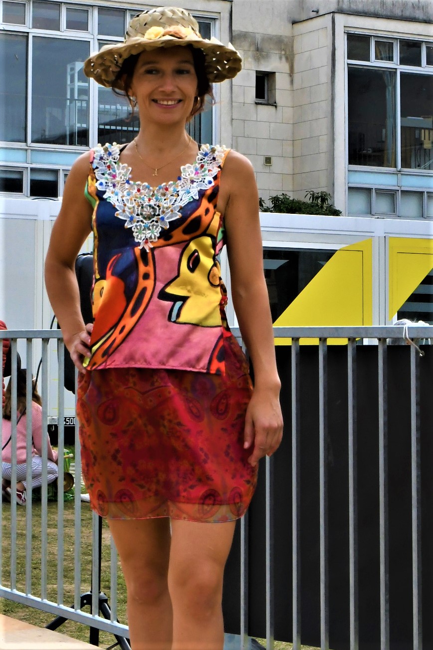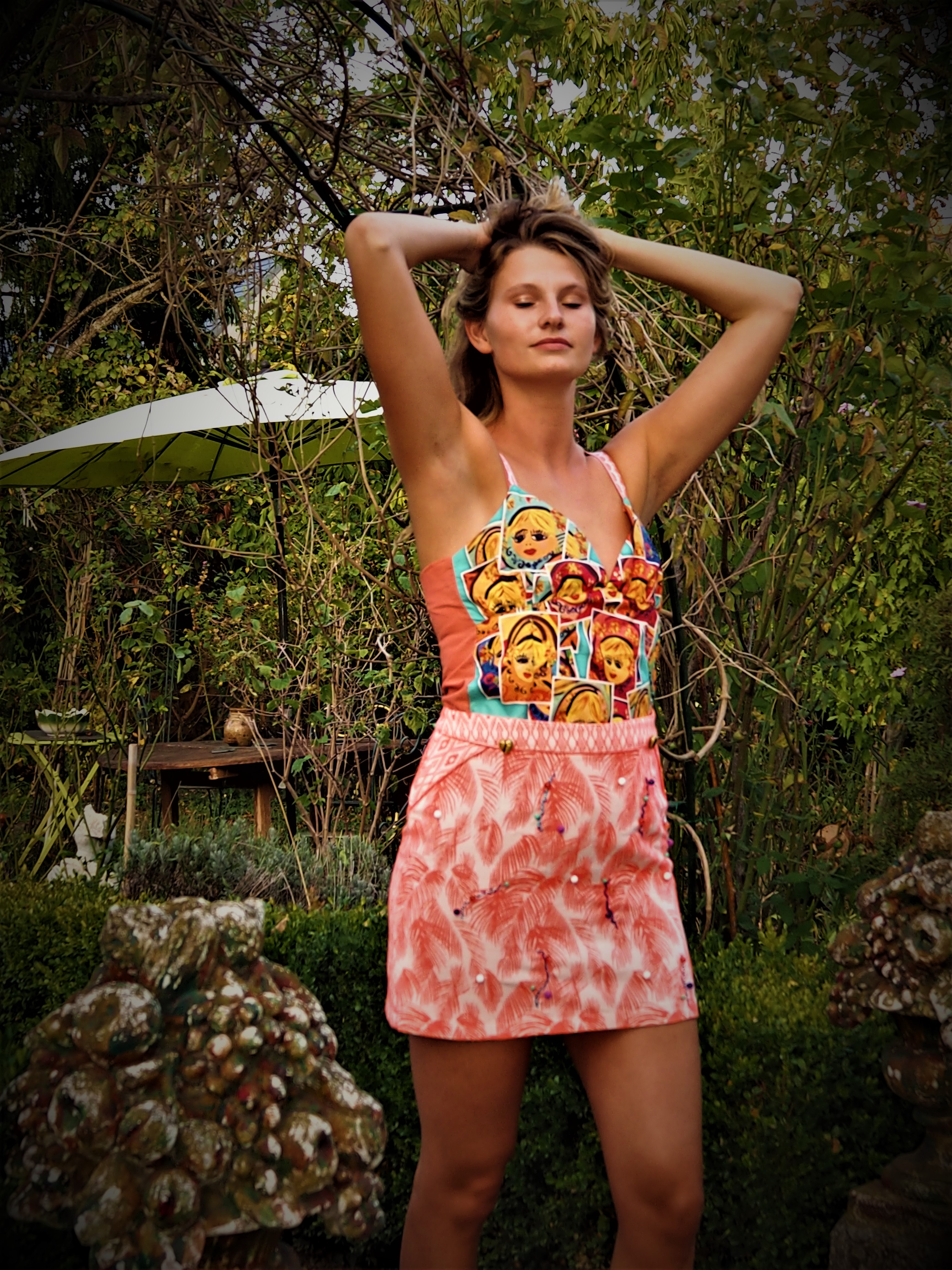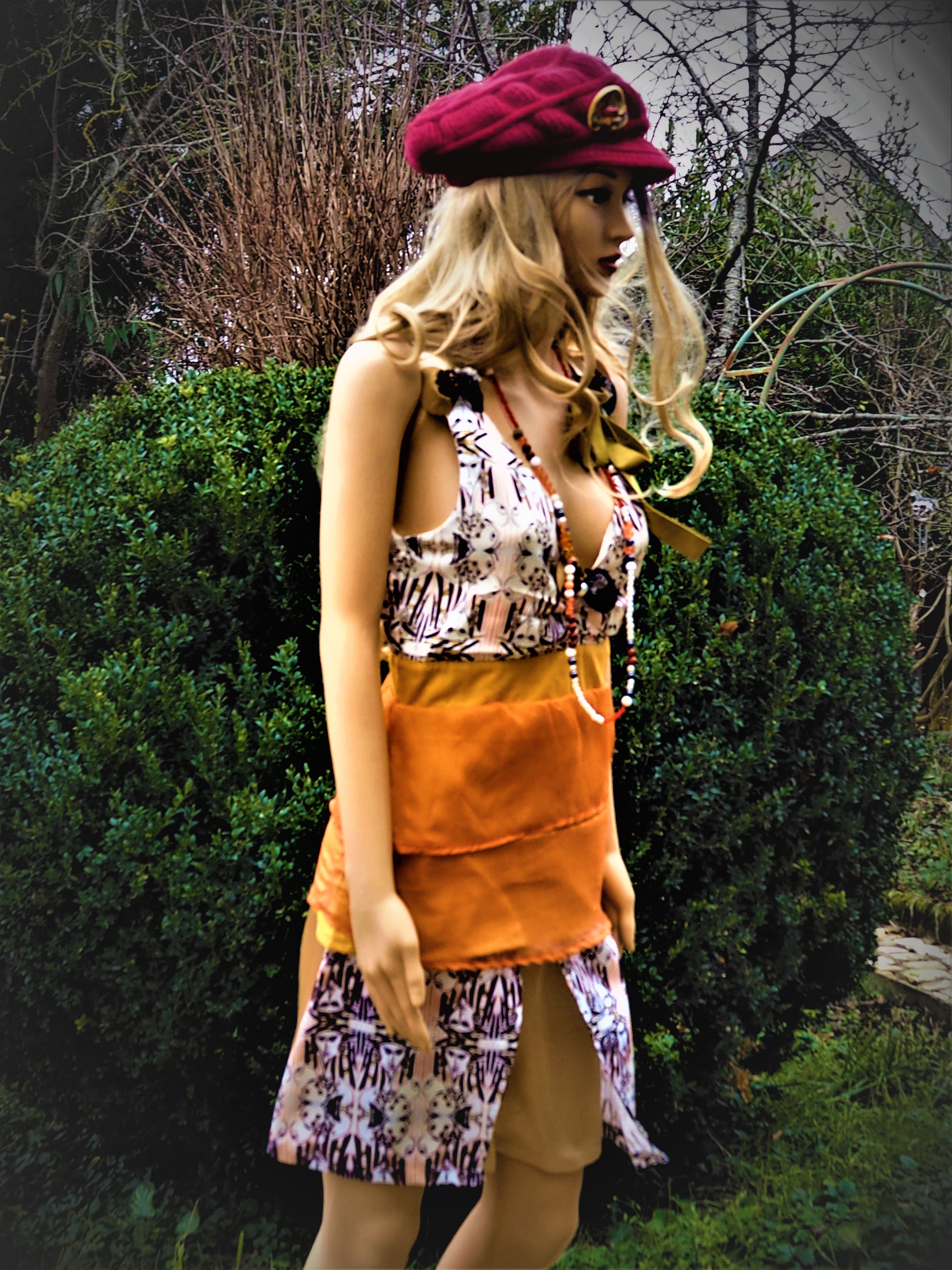 Style : « COSAQUE » fait rêver par son côté jeune et naïf. Le design des matriochkas colorées vont vous faire voyager vers la Russie. Les tissus utilisés sont en coton satiné, voile ou crêpe. De bonne qualité, ils sont imprimés et confectionnés pour donner le meilleur résultat. Lavable à la main 30° maximum, à froid ou à sec. Les bustiers sont décorés de dentelles anciennes ou nouvelles en coton et/ou synthétique, cousus de perles en pierres brutes ou polies précieuses ou semi-précieuses, perles de culture, perles de Murano, céramique ou raku, perles de verre d’Afrique, ambre, bois ou graines en fonction. Certains vêtements de qualité ou de marque peuvent aussi être recyclés pour une seconde naissance. Des accessoires peuvent accompagner la tenue. Chapeau, tatouage, gants, collants poétiques, bijoux. «Art&Style» est une marque française mais reste tournée vers le monde pour lui donner une valeur plus humaniste. (Photos : mannequins Léa M., Victoria L.R., Vanessa B., Océane M. et Carine-Anne N.G, Carine L.).