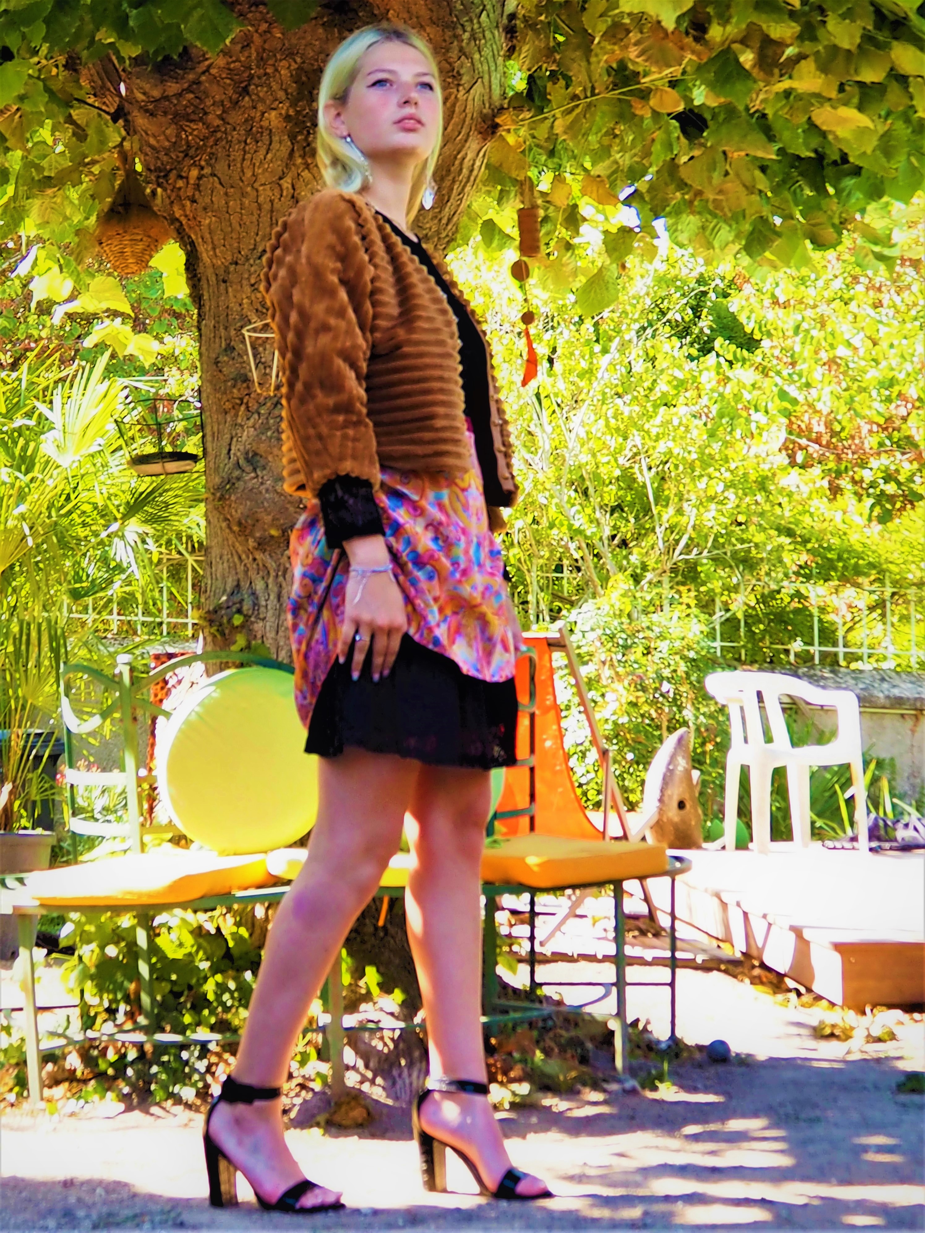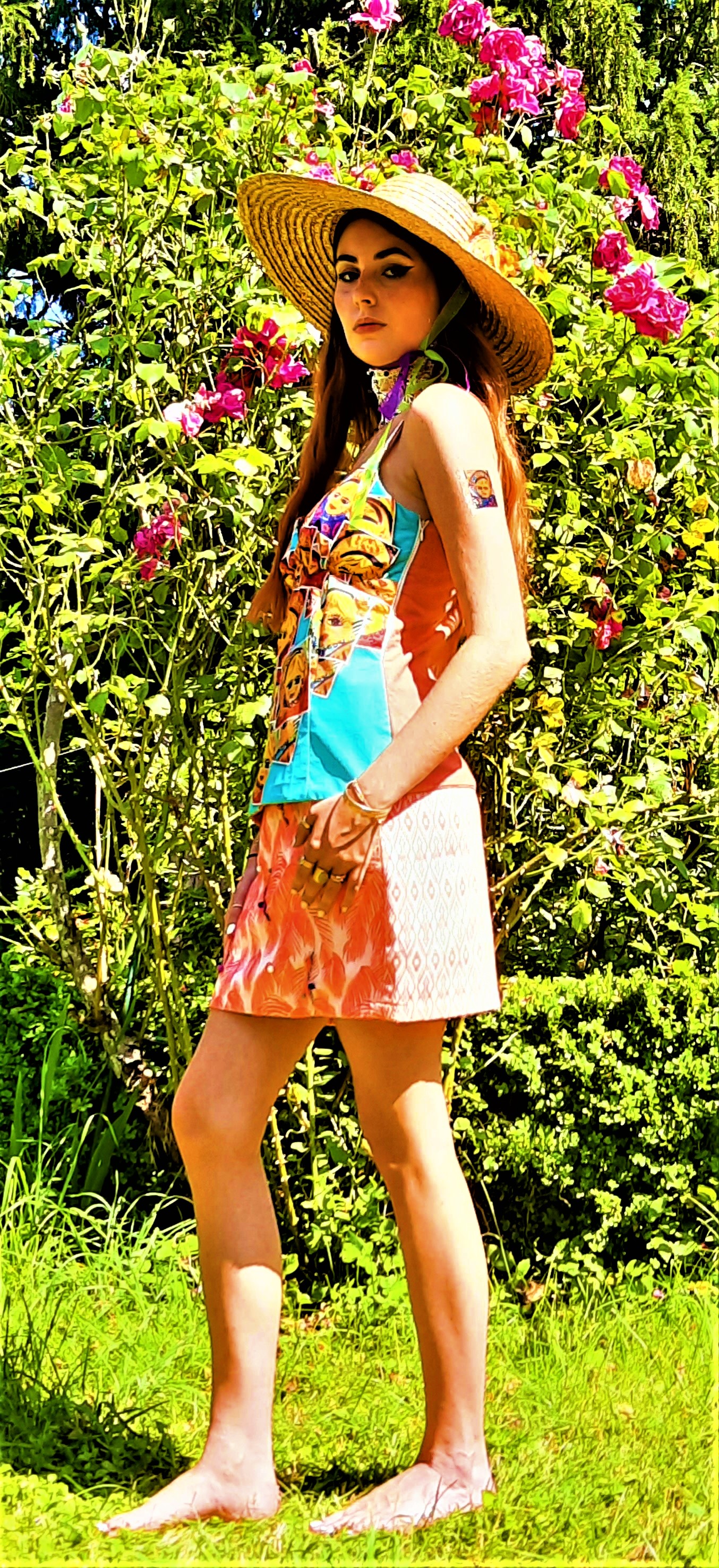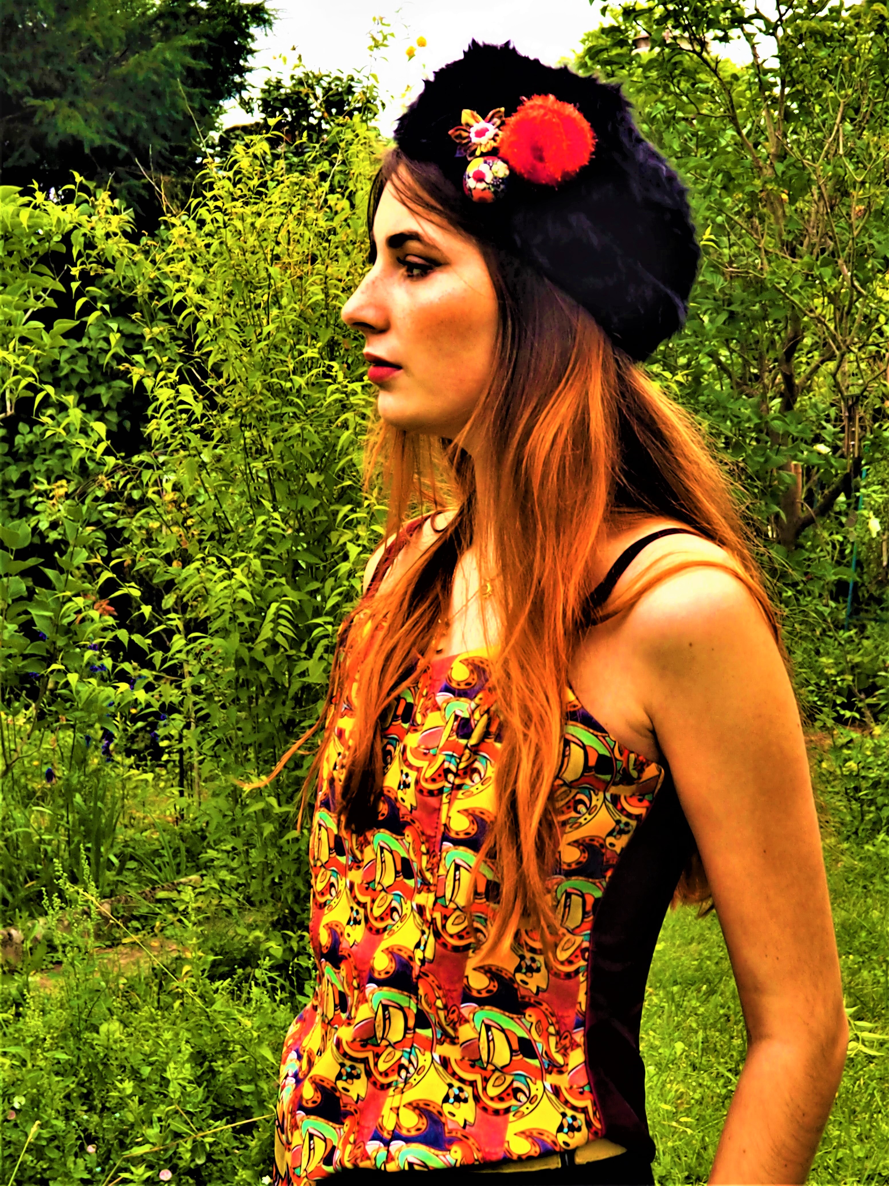 Style : « COSAQUE » fait rêver par son côté jeune et naïf. Le design des matriochkas colorées vont vous faire voyager vers la Russie. Les tissus utilisés sont en coton satiné, voile ou crêpe. De bonne qualité, ils sont imprimés et confectionnés pour donner le meilleur résultat. Lavable à la main 30° maximum, à froid ou à sec. Les bustiers sont décorés de dentelles anciennes ou nouvelles en coton et/ou synthétique, cousus de perles en pierres brutes ou polies précieuses ou semi-précieuses, perles de culture, perles de Murano, céramique ou raku, perles de verre d’Afrique, ambre, bois ou graines en fonction. Certains vêtements de qualité ou de marque peuvent aussi être recyclés pour une seconde naissance. Des accessoires peuvent accompagner la tenue. Chapeau, tatouage, gants, collants poétiques, bijoux. «Art&Style» est une marque française mais reste tournée vers le monde pour lui donner une valeur plus humaniste. (Photos : mannequins Léa M., Victoria L.R., Vanessa B., Océane M. et Carine-Anne N.G, Carine L.).