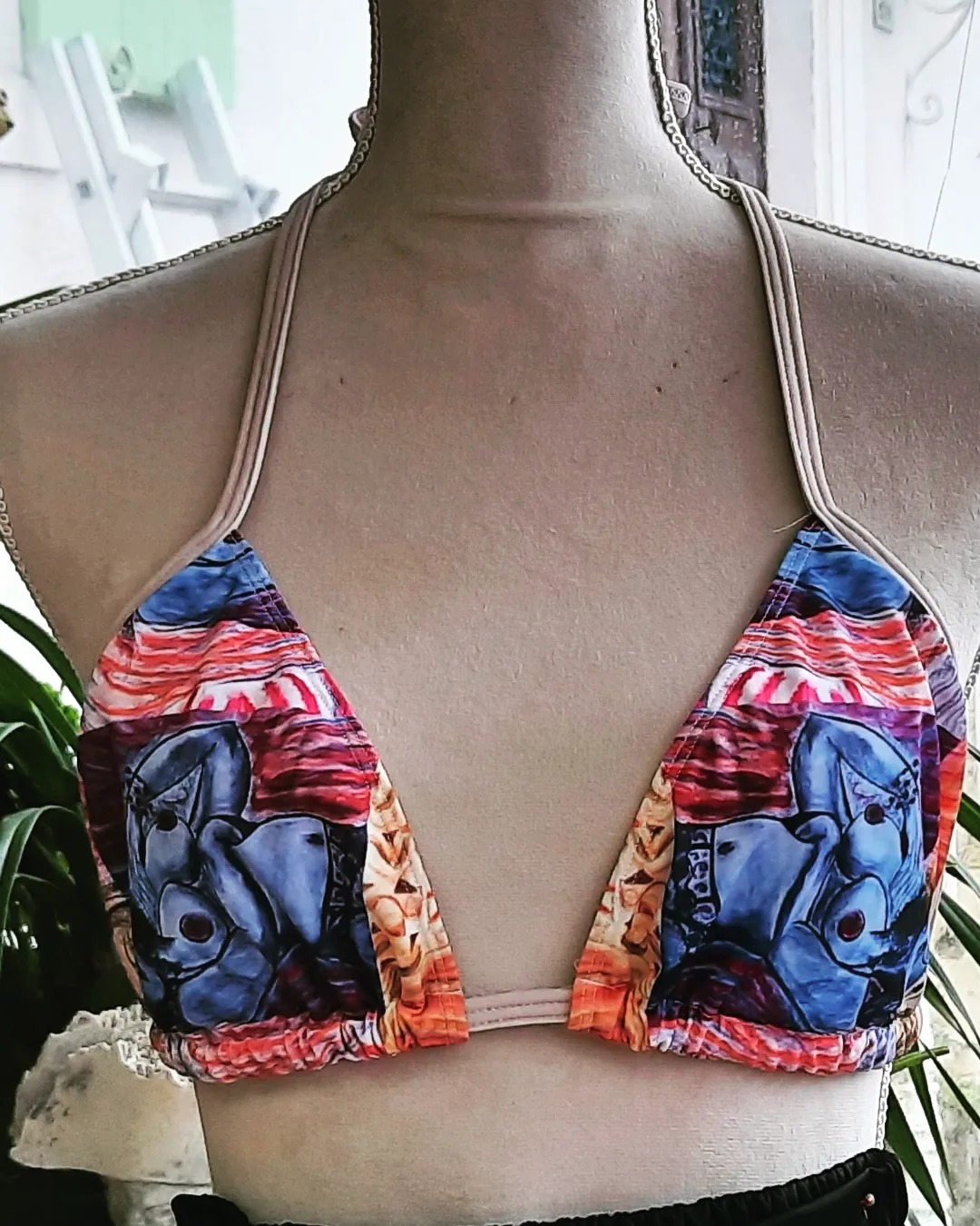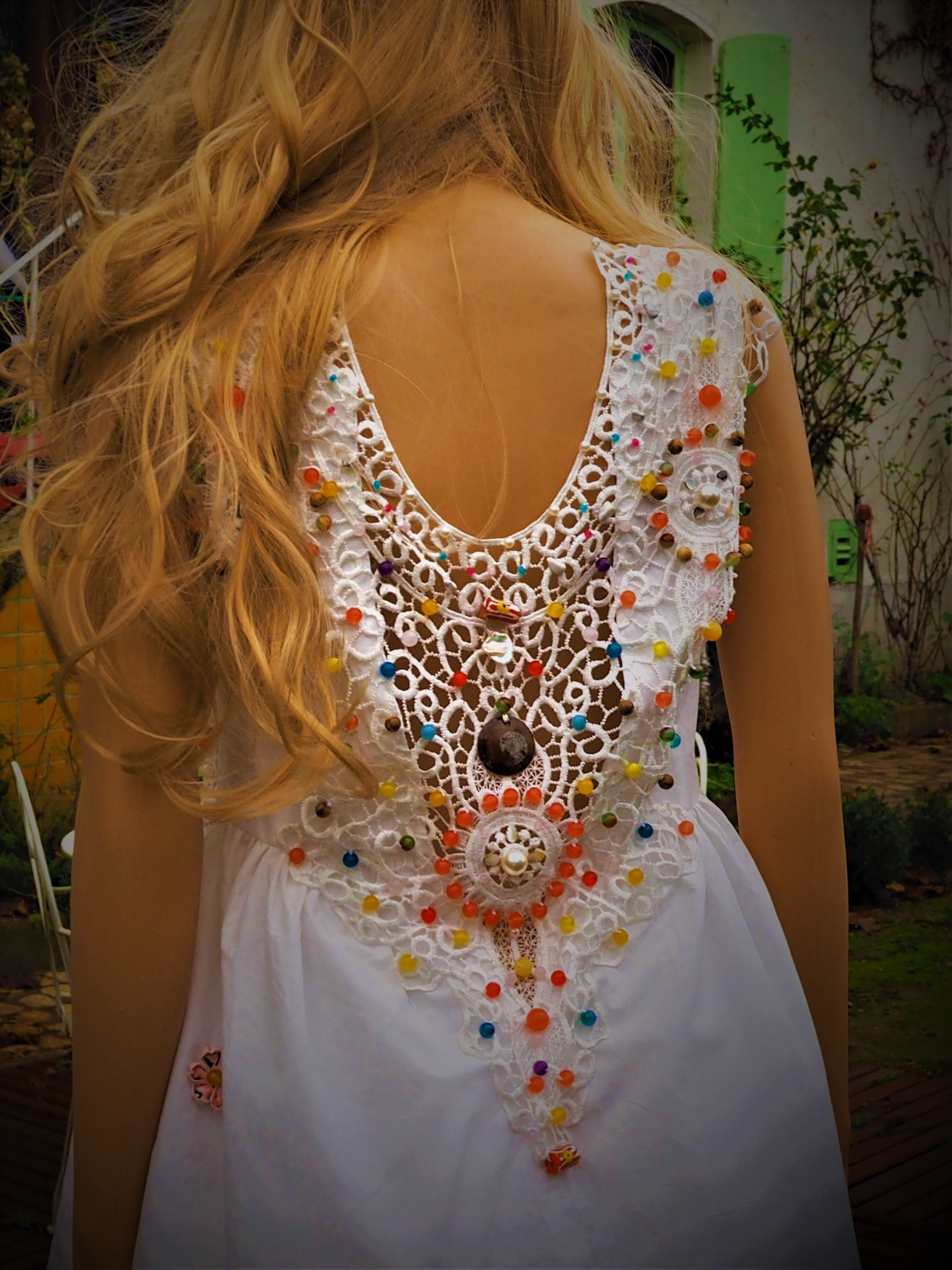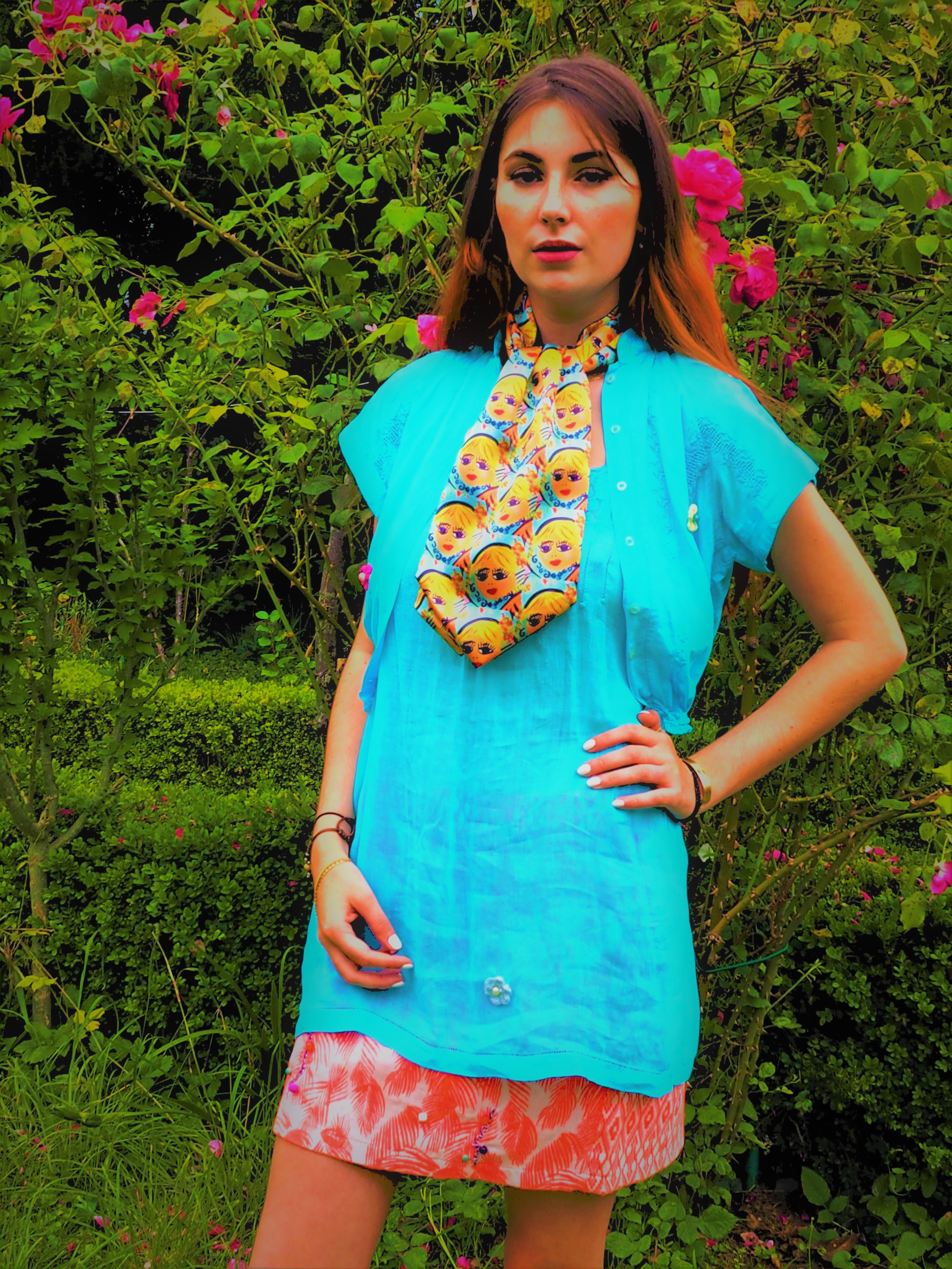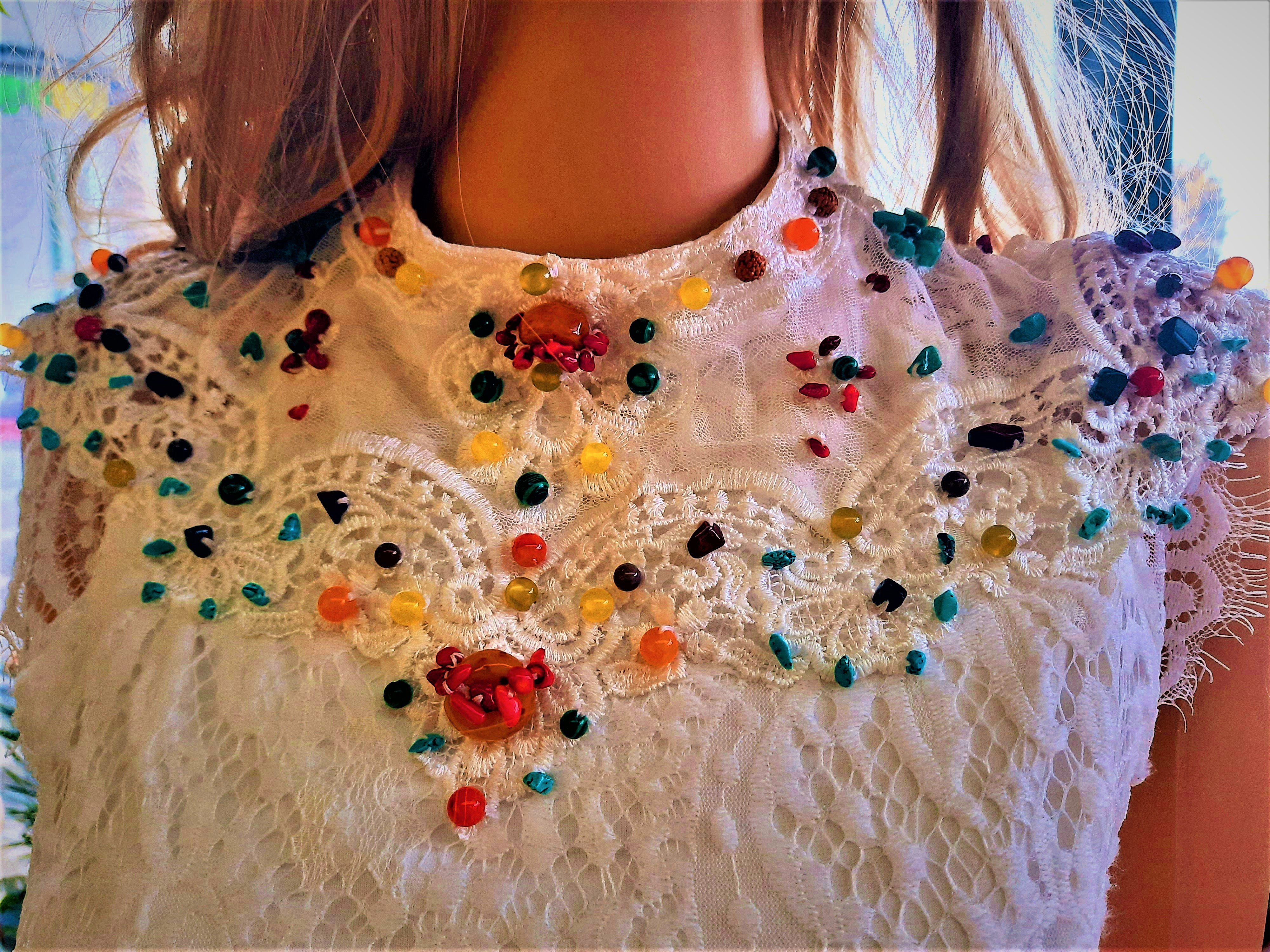 Style : « COSAQUE » fait rêver par son côté jeune et naïf. Le design des matriochkas colorées vont vous faire voyager vers la Russie. Les tissus utilisés sont en coton satiné, voile ou crêpe. De bonne qualité, ils sont imprimés et confectionnés pour donner le meilleur résultat. Lavable à la main 30° maximum, à froid ou à sec. Les bustiers sont décorés de dentelles anciennes ou nouvelles en coton et/ou synthétique, cousus de perles en pierres brutes ou polies précieuses ou semi-précieuses, perles de culture, perles de Murano, céramique ou raku, perles de verre d’Afrique, ambre, bois ou graines en fonction. Certains vêtements de qualité ou de marque peuvent aussi être recyclés pour une seconde naissance. Des accessoires peuvent accompagner la tenue. Chapeau, tatouage, gants, collants poétiques, bijoux. «Art&Style» est une marque française mais reste tournée vers le monde pour lui donner une valeur plus humaniste. (Photos : mannequins Léa M., Victoria L.R., Vanessa B., Océane M. et Carine-Anne N.G, Carine L.).