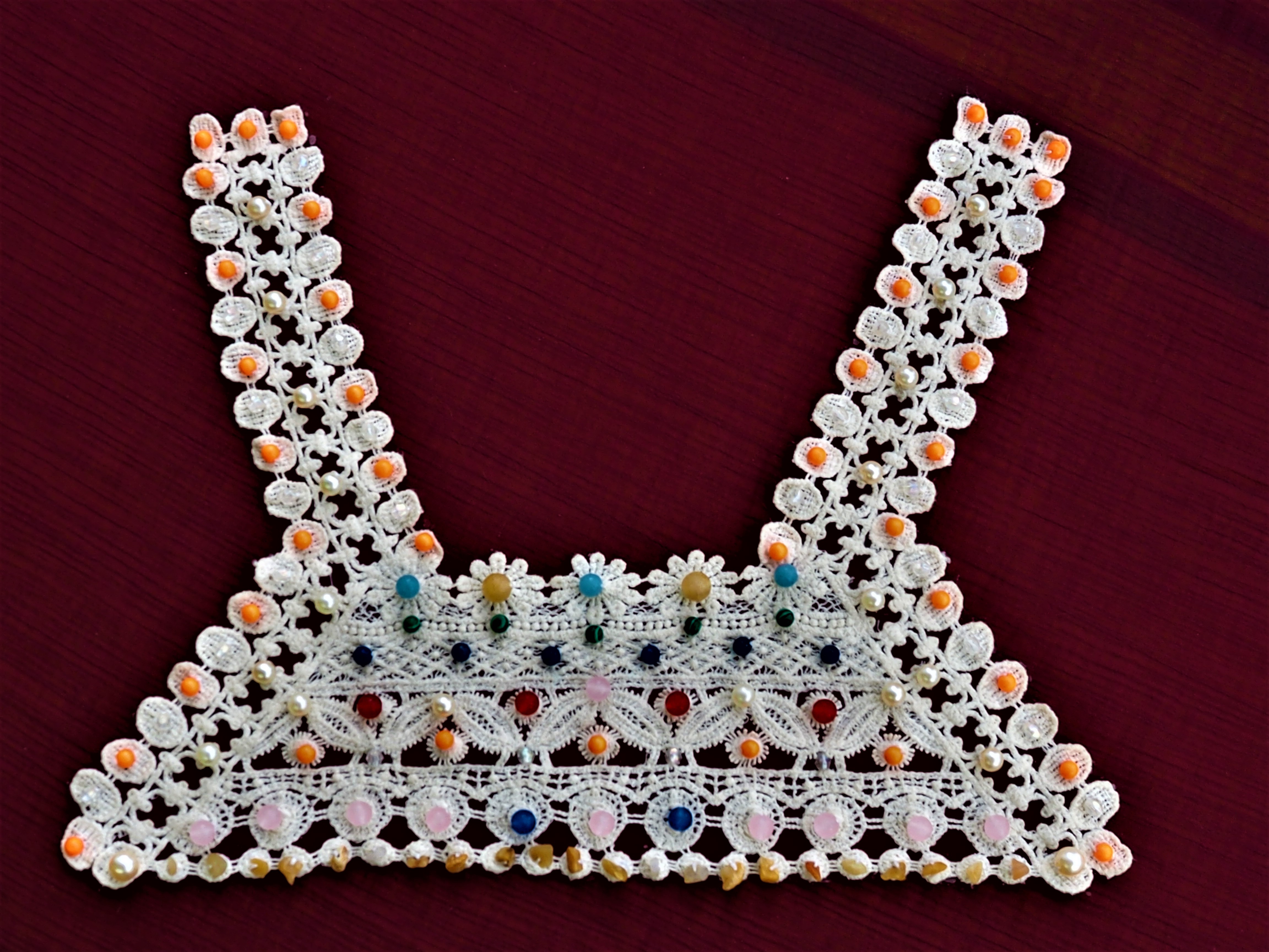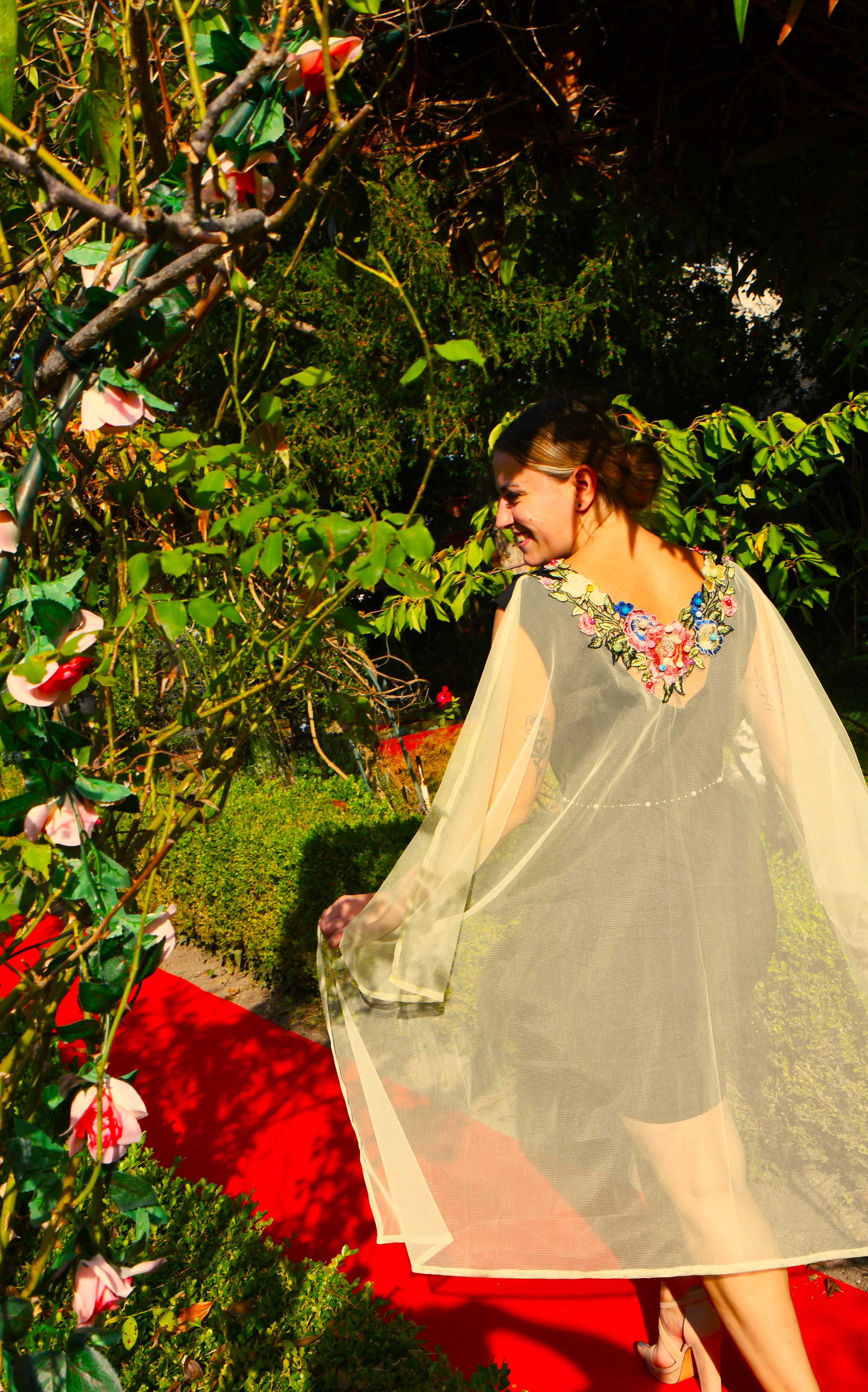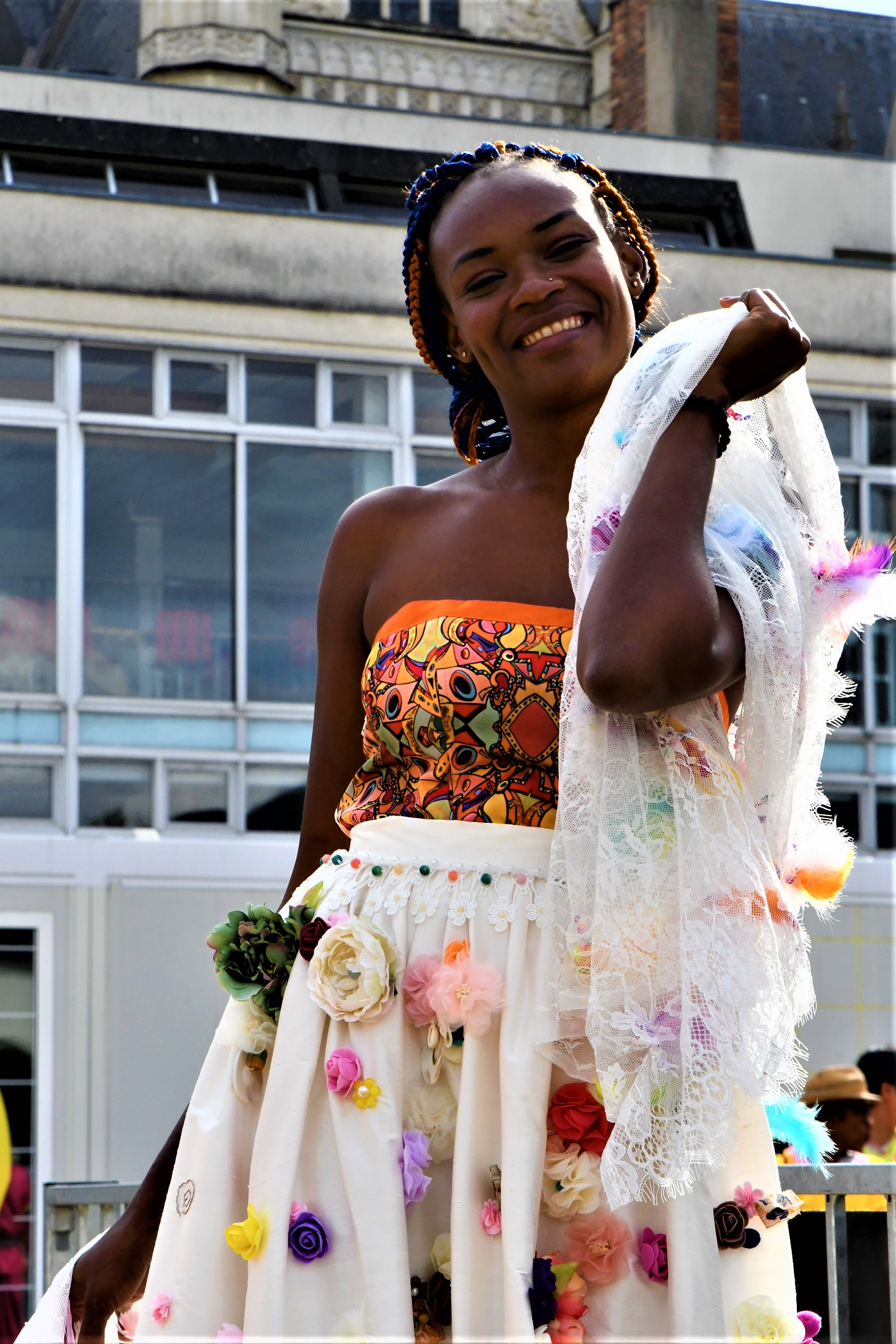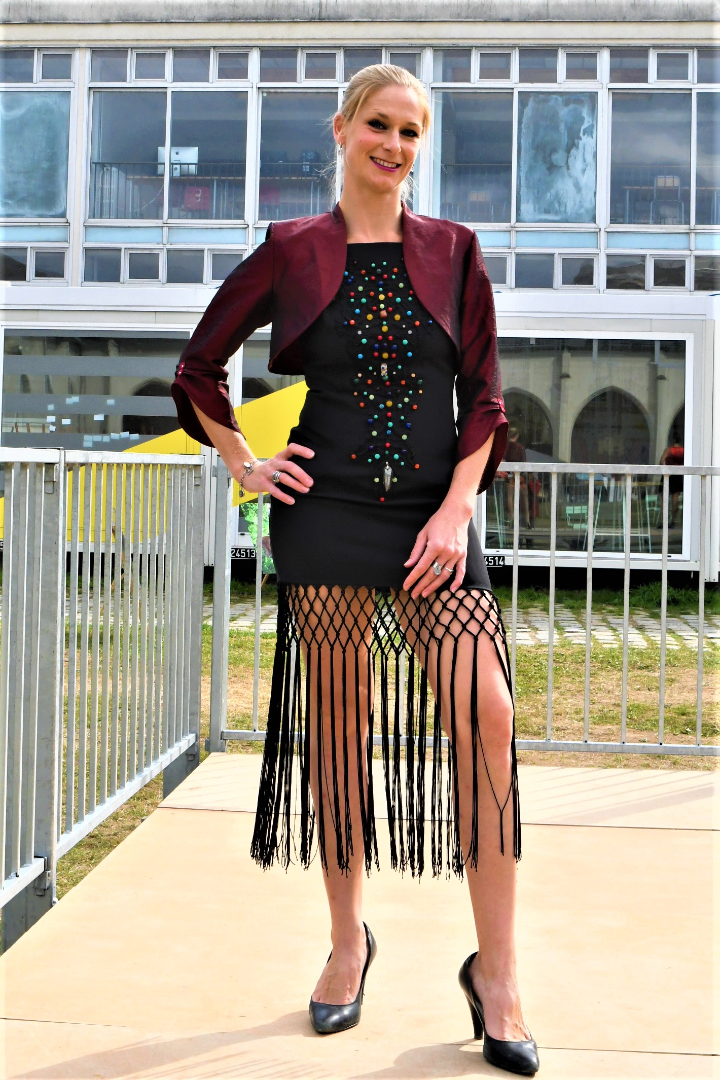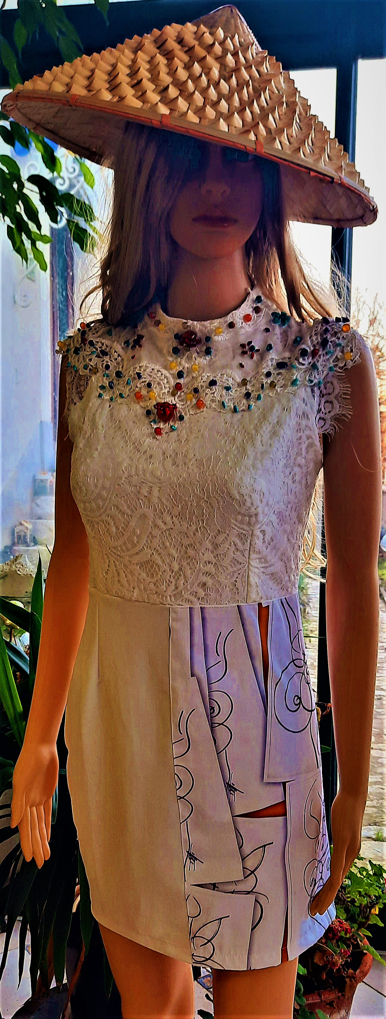 De ma vie à l’international, j’ai conservé la nostalgie des formes et des couleurs. Les matières jouent également un grand rôle dans la confection des modèles. Recyclage ou création, les deux sont en phase pour donner à la nature féminine une beauté élégante, fine et d’une grâce particulière. Les céramiques et les fleurs en tissu s’adaptent parfaitement sur les modèles. Bijoux : pendentif, bague, boucles d’oreilles. Petite idée pour les échancrures de certains modèles, vous pouvez porter dessous un tee-shirt en soie transparent ou un soutien-gorge en dentelles pour mettre en valeur vos formes sans provoquer le regard . (Mannequins : Léa M., Victoria L., Aurélie W., Vanessa B., Océane M., Carine-Anne N.G).