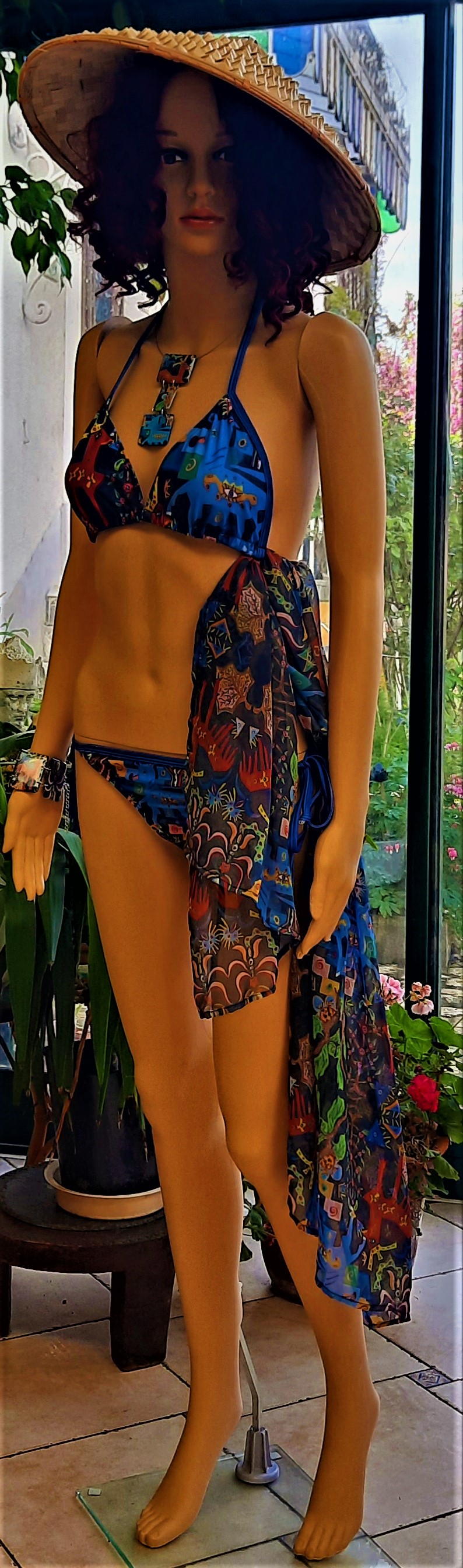 Couleurs, chaleur, lumière, reflets sur la mer, baigneuses nues, alanguies sous le soleil, bateaux de pêche,. Du détail pictural au design peint, au tissu teinté, tissé ou imprimé. Le choix commence par une robe noire simple et reconvertie en baigneuse méditerranéenne sur le devant comme une empreinte passée mais toujours présente à la mémoire. Vous retrouverez tout au long du portfolio ce style chaleureux et pratique. (Mannequin : Léa M., Victoria R., Aurélie W., Isabelle S., et Carine-Anne N.G).