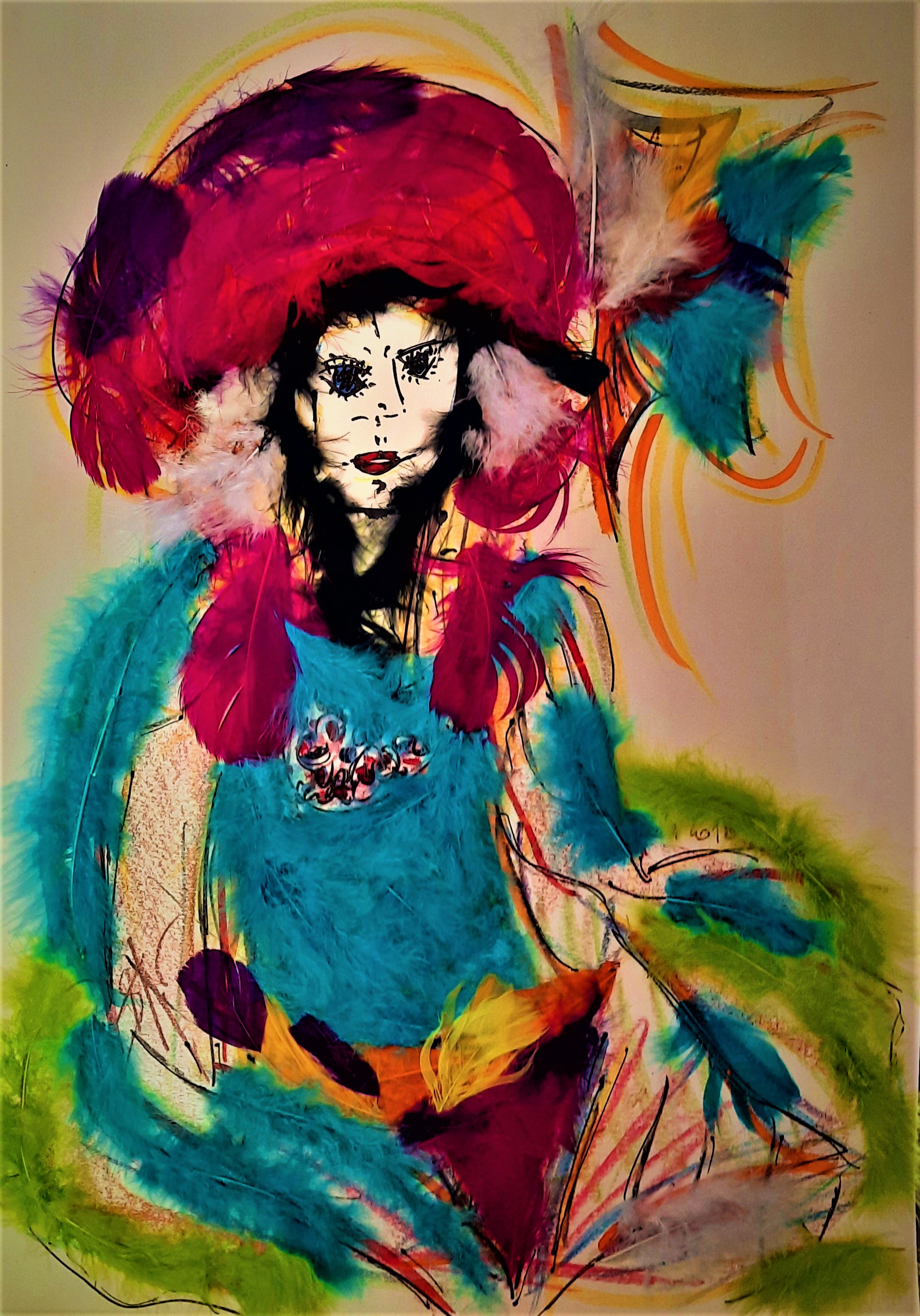 Vous aimez les Œuvres d’Art uniques ? Je vous présente dans ce blog « Ma Vitrine de modèles et de plumes » : Technique : Dessin, pastel, collage. Format A2 (42 cm x 59,4 cm). Prix : 450 € transport compris. Sans encadrement. Livré avec facture et certificat d’authenticité de l’artiste.